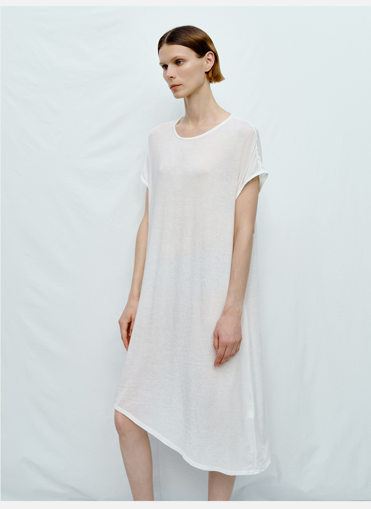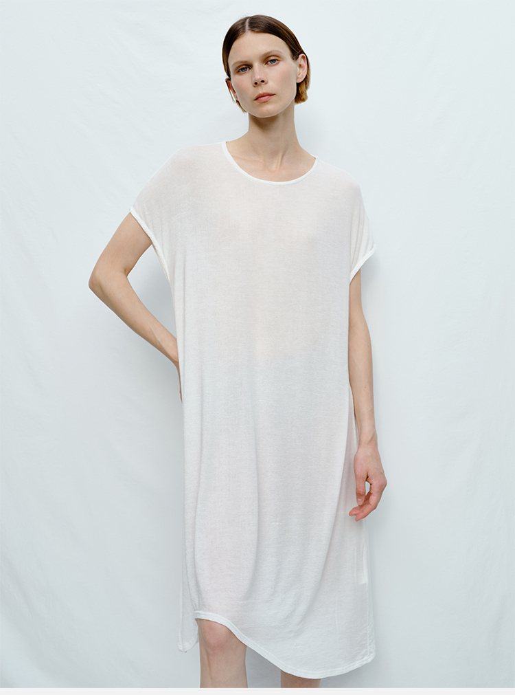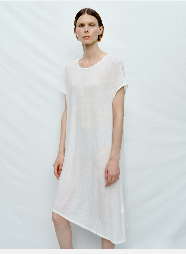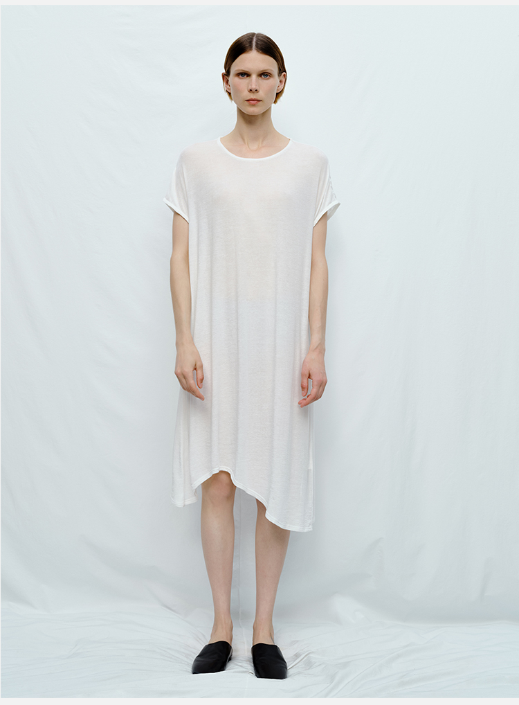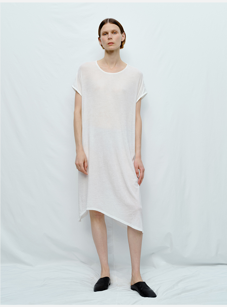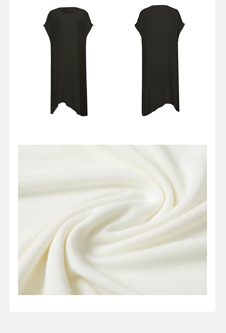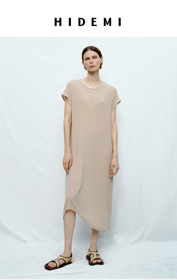 HIDEMI 度假系列极简圆领廓形云朵薄针织T恤连衣裙
