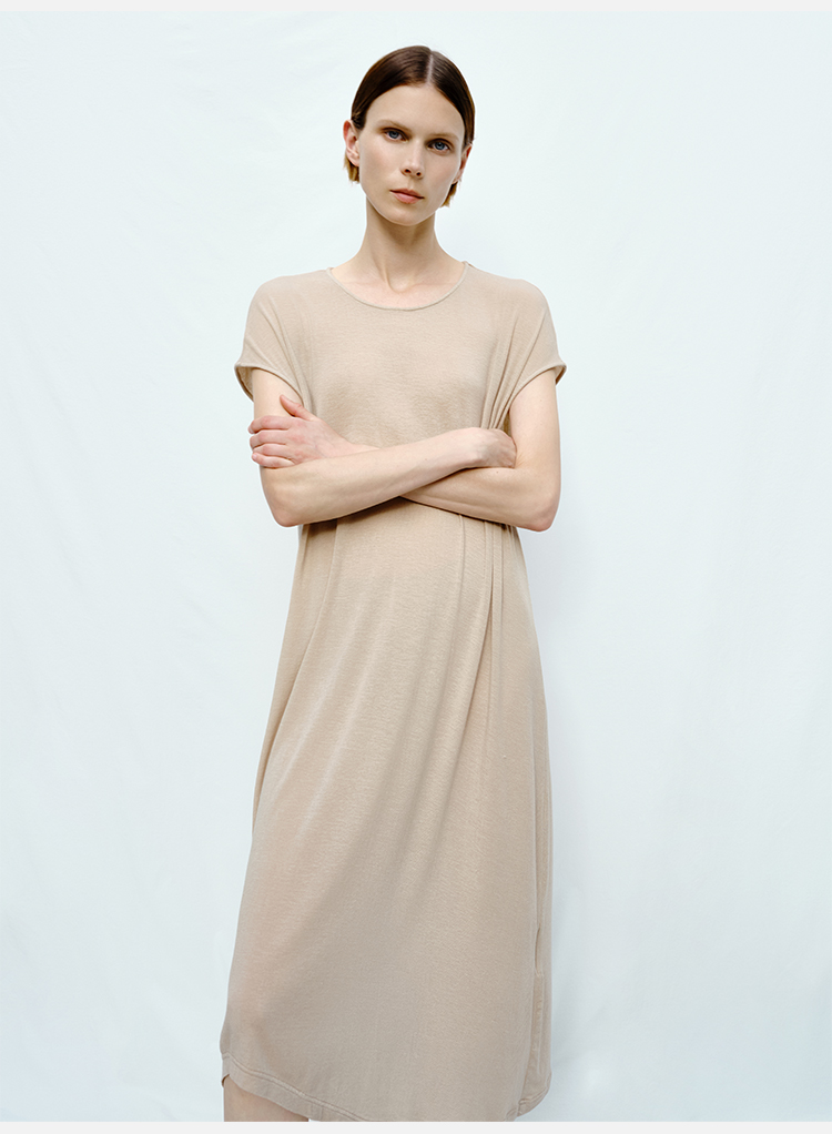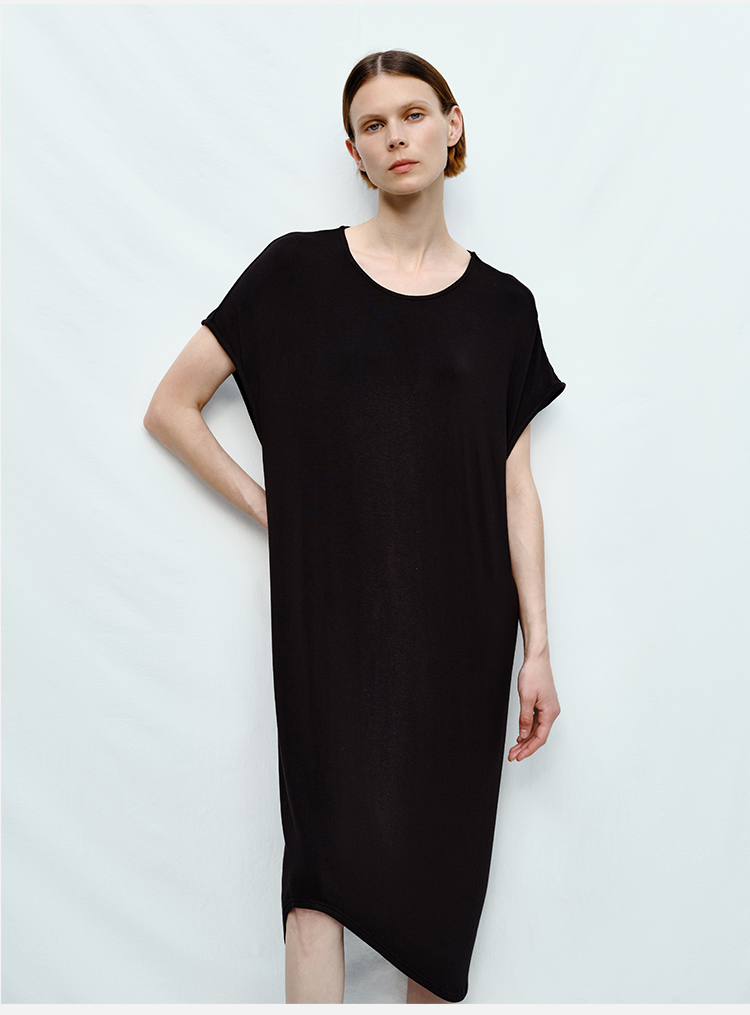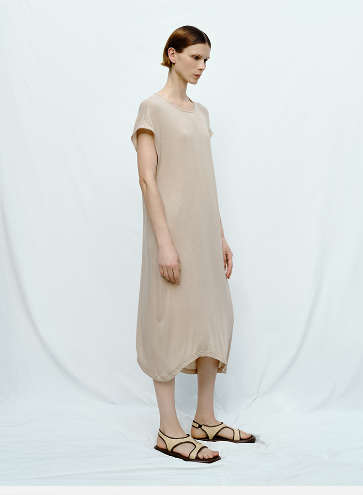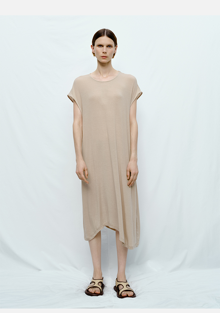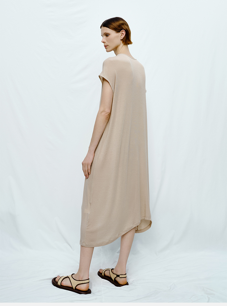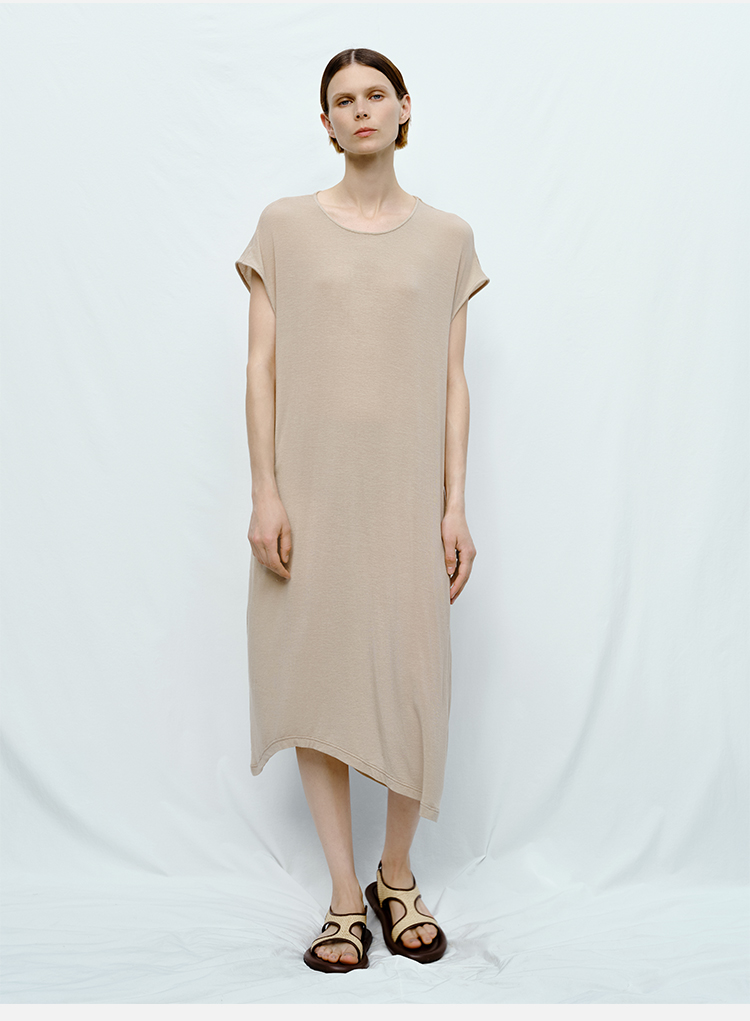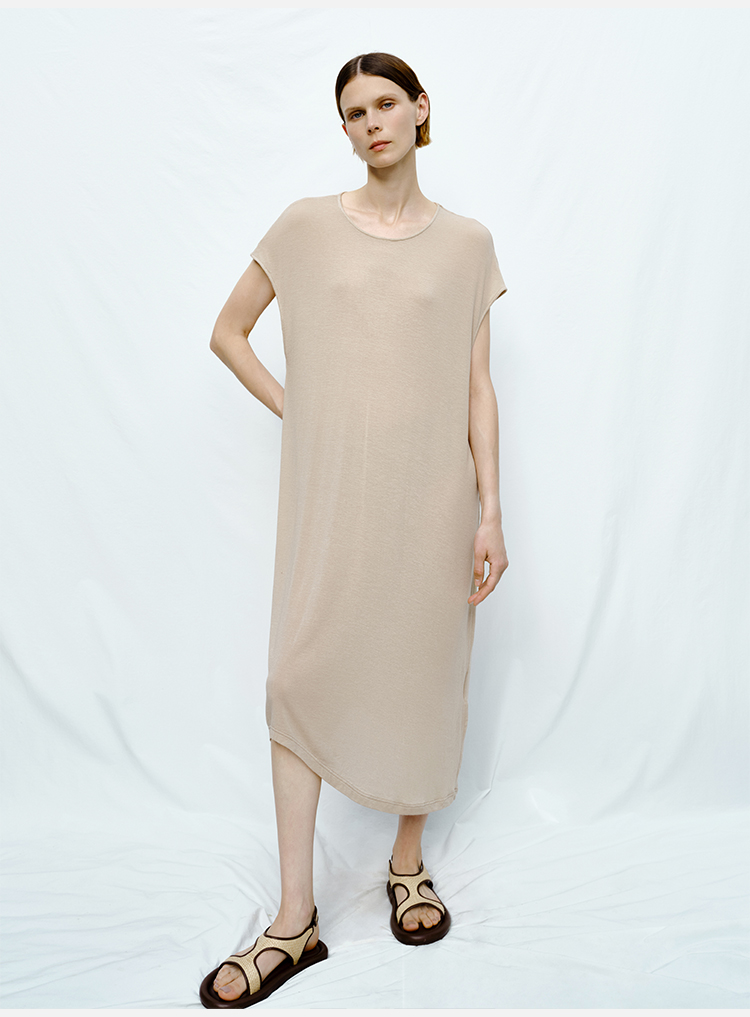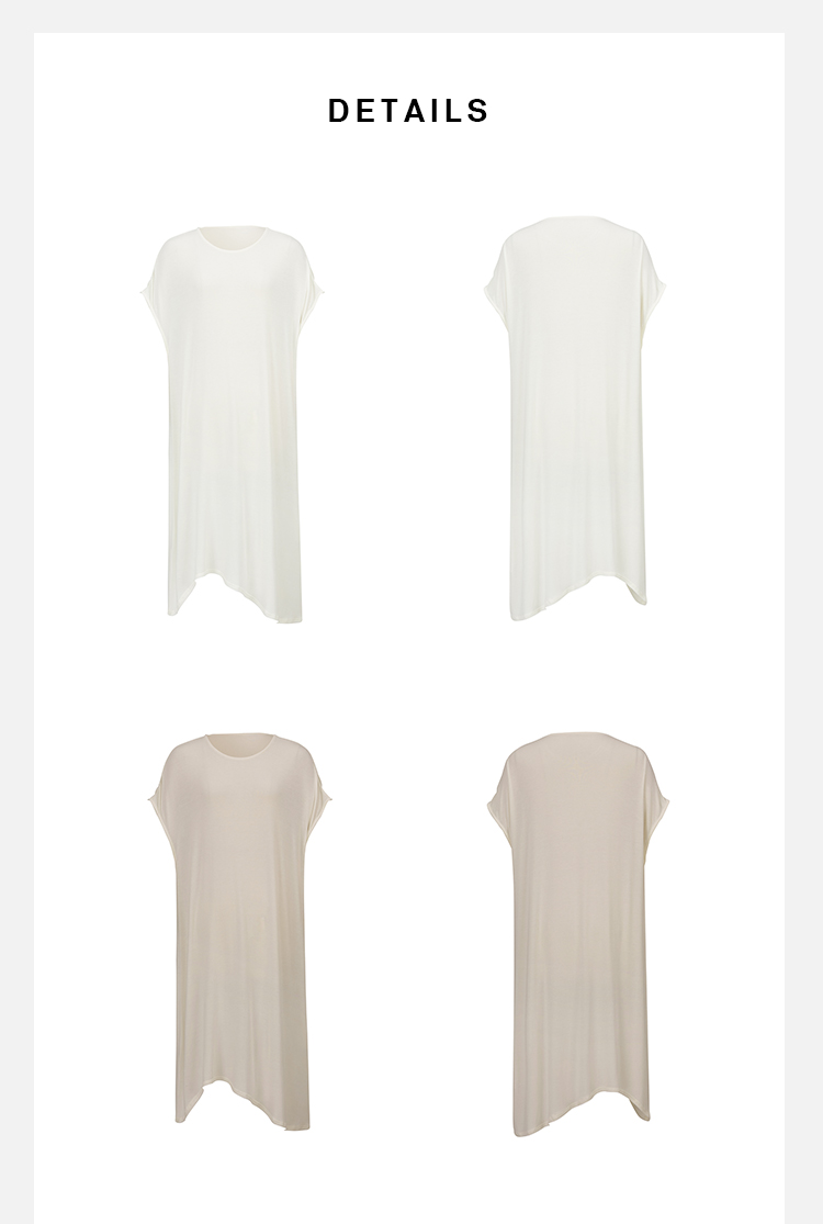 HIDEMI 度假系列极简圆领廓形云朵薄针织T恤连衣裙