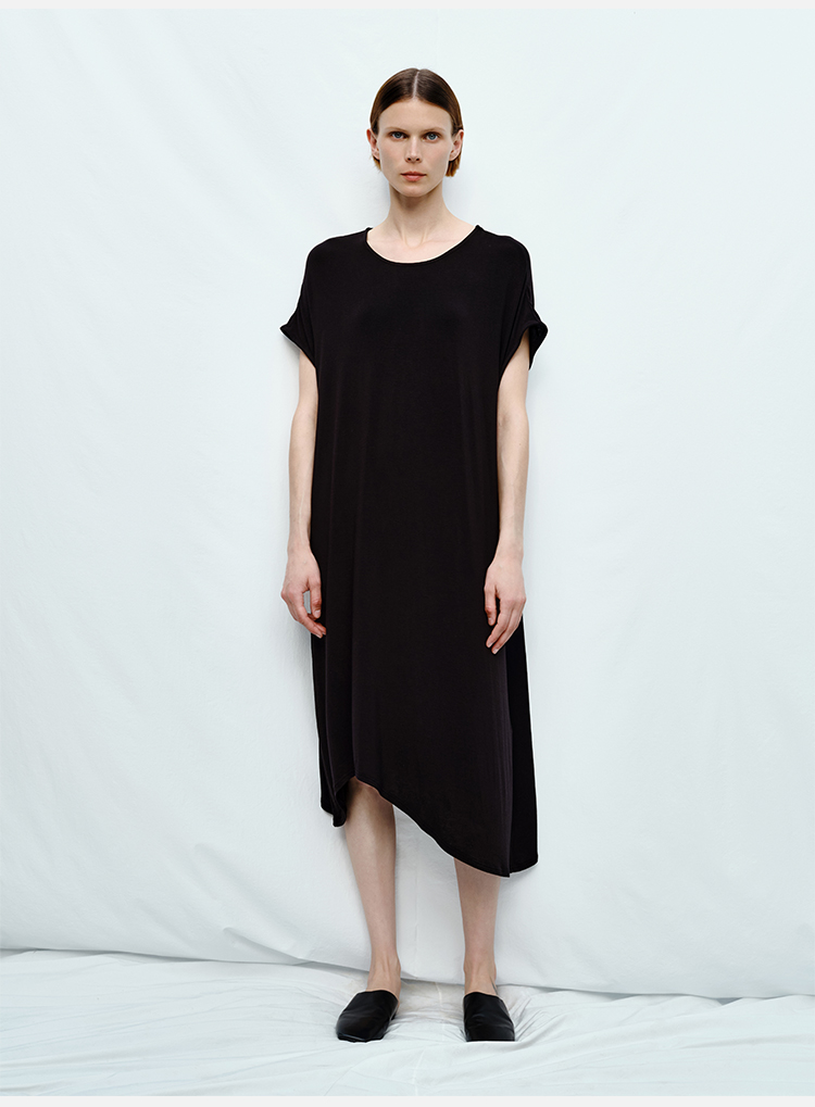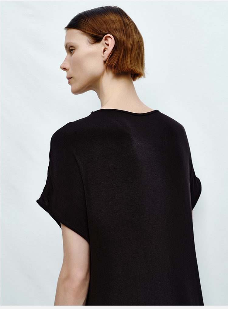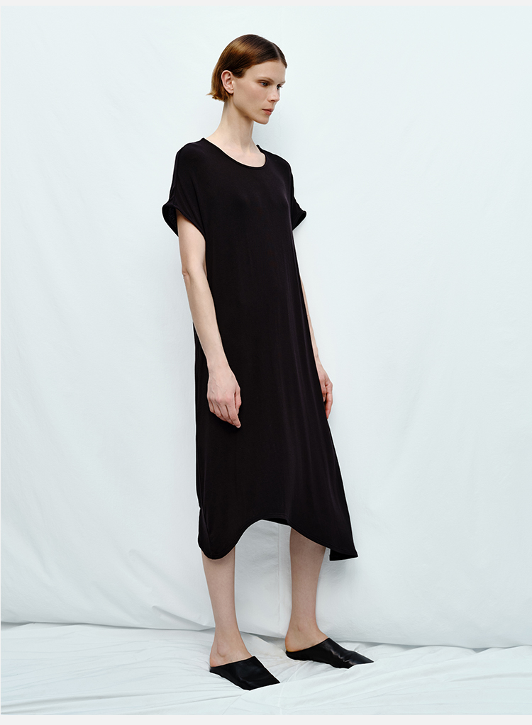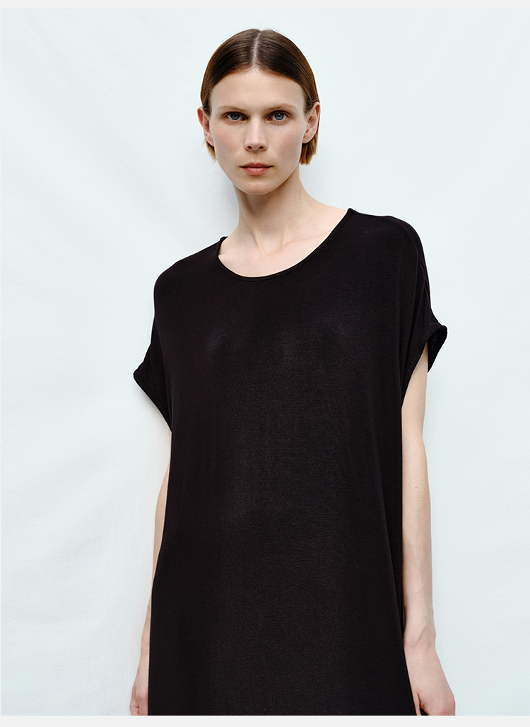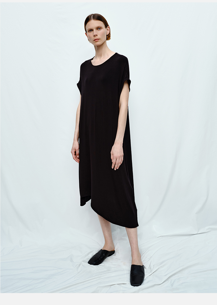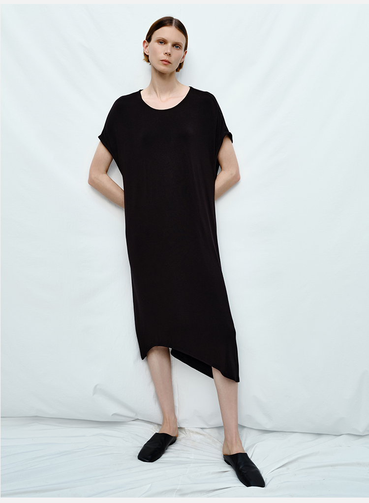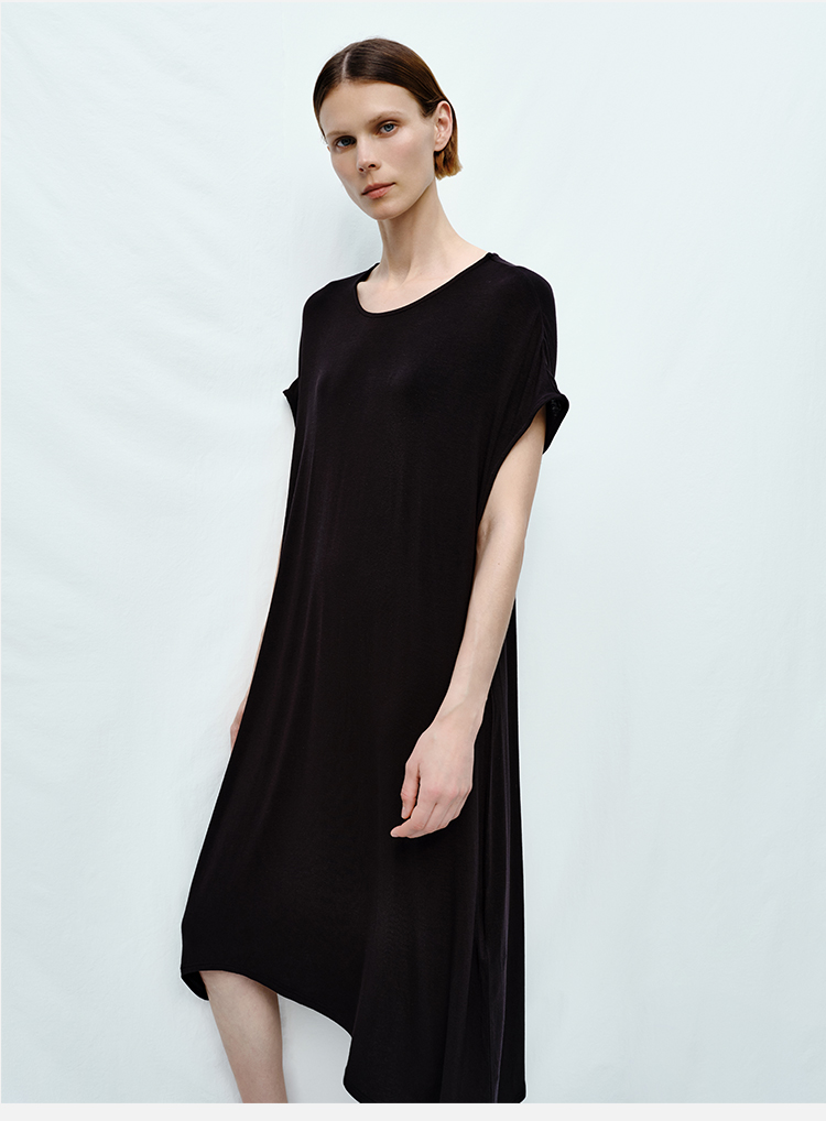 HIDEMI 度假系列极简圆领廓形云朵薄针织T恤连衣裙