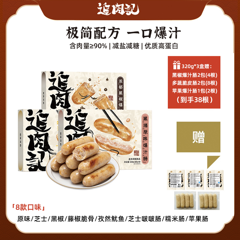 【花姐心选】追肉记无添加爆汁肉肠纯肉烤肠儿童早餐肠台式烤肠 320g*3盒