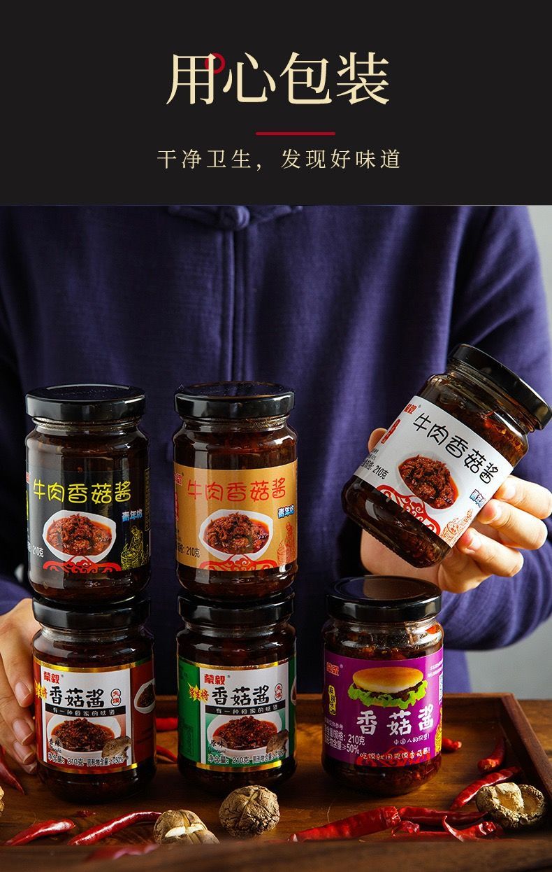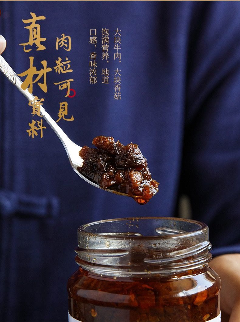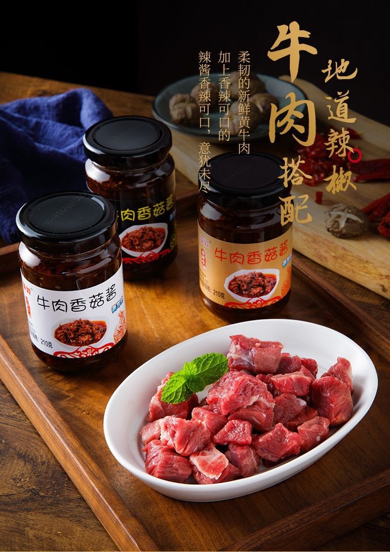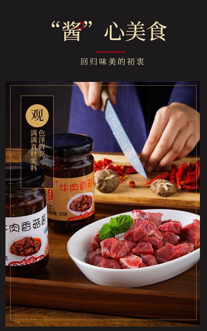【3瓶装!超满足牛肉香菇酱210g】大块牛肉香菇粒,匠心品质真材实料!牛肉酱香菇酱210g*3瓶装,辣椒麻辣酱调味酱火锅蘸料酱香辣下饭拌面酱烧烤酱-健康