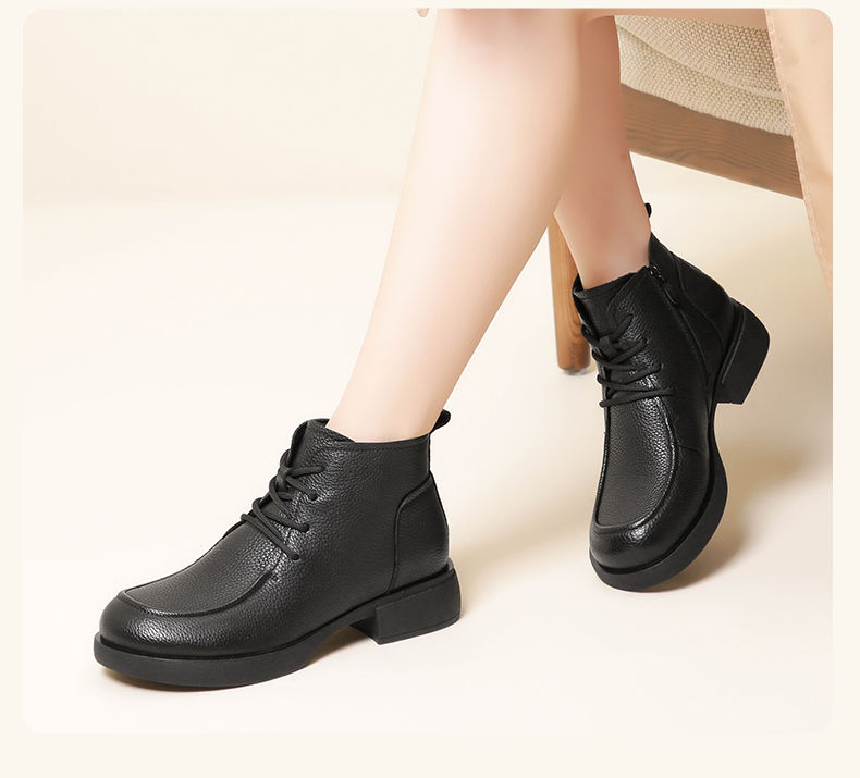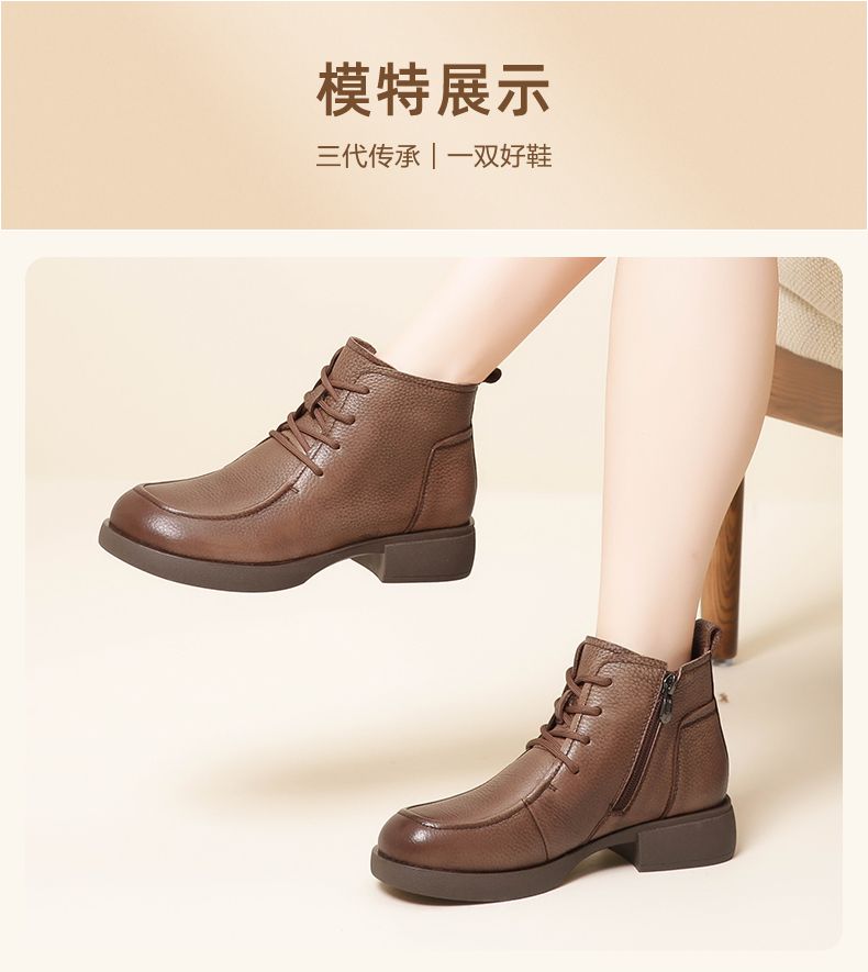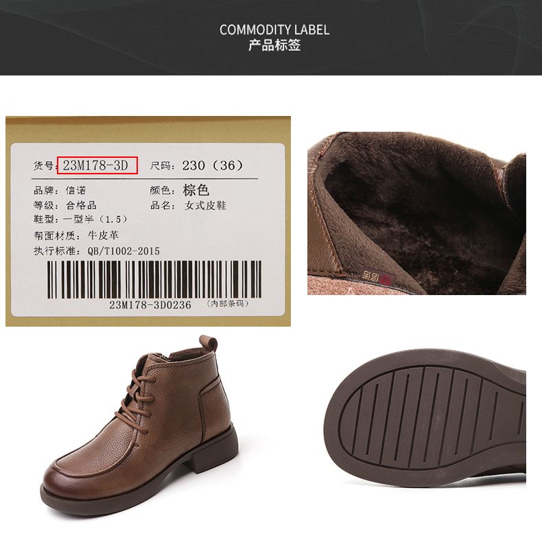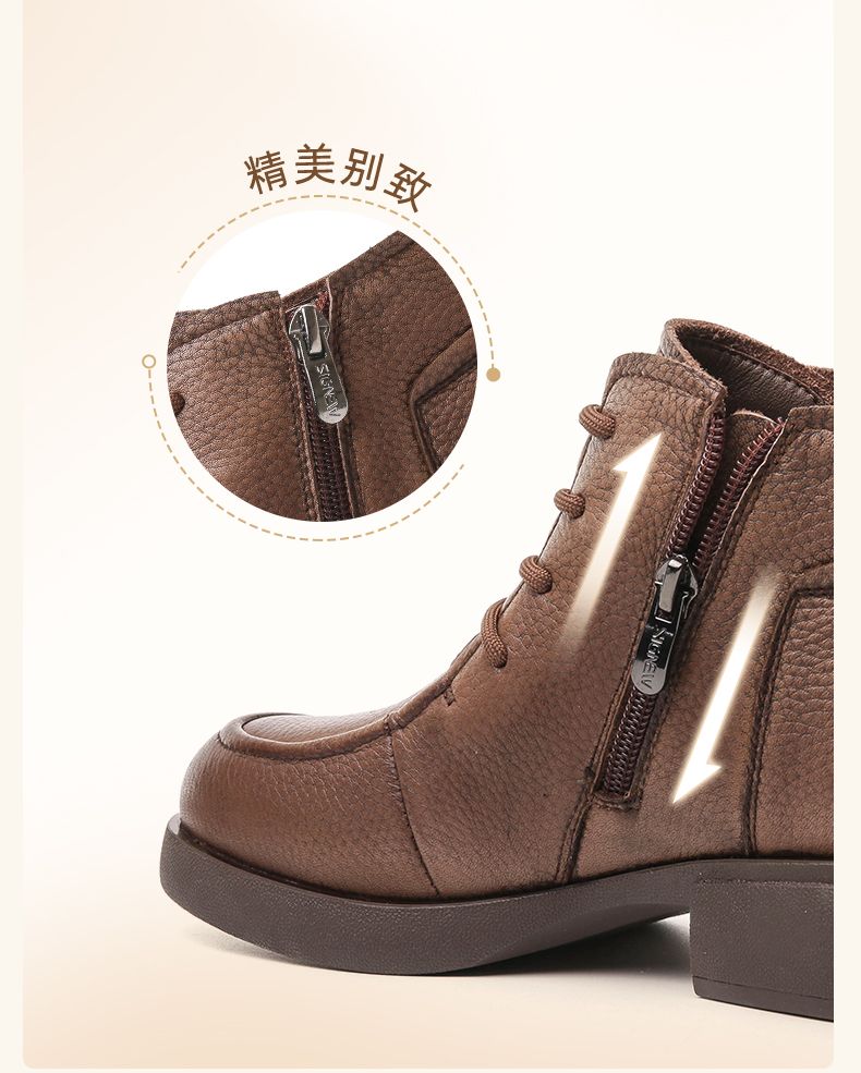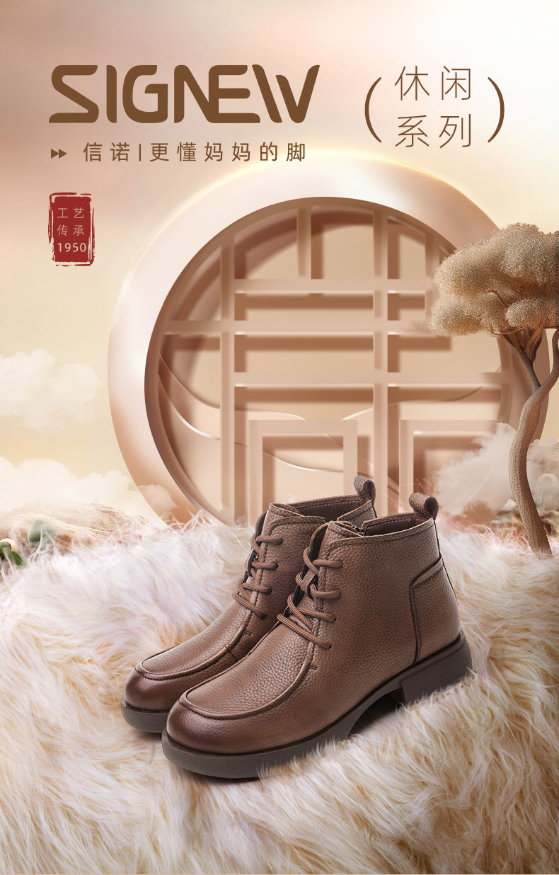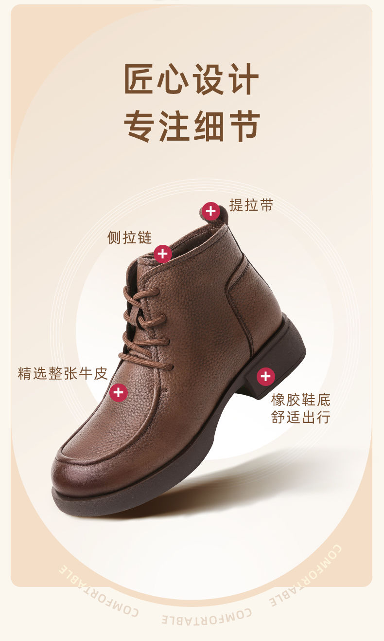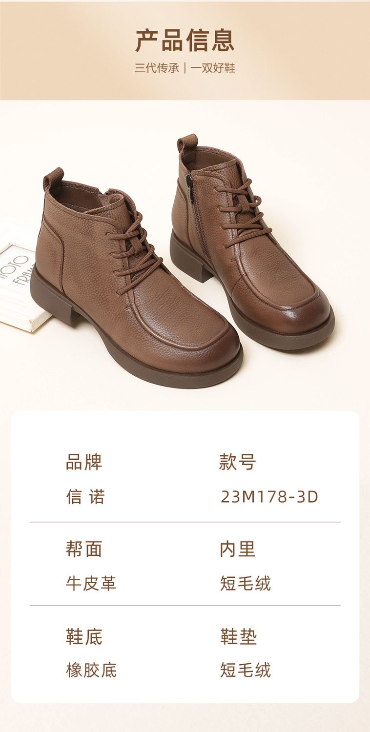 信诺真皮软底短靴2023新款秋冬季加绒软皮软面中年妈妈鞋马丁靴女23M178-3D