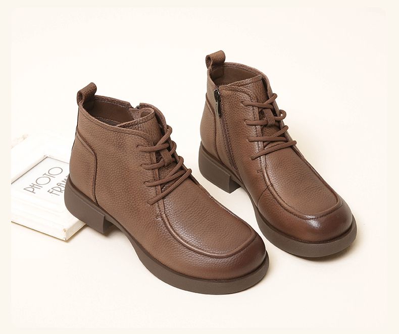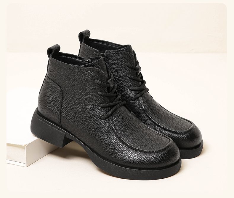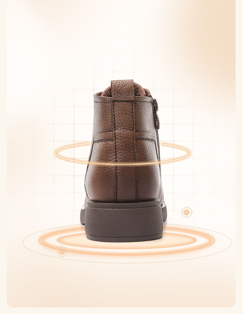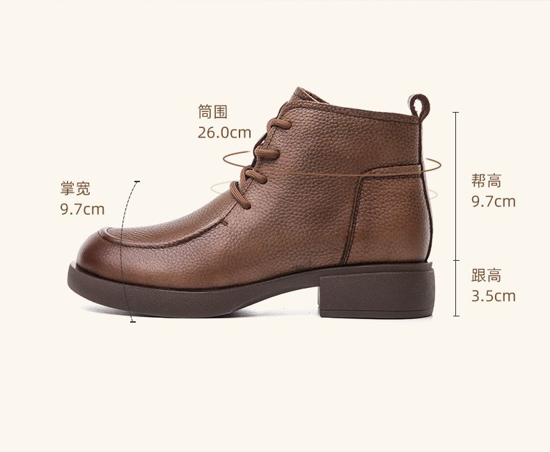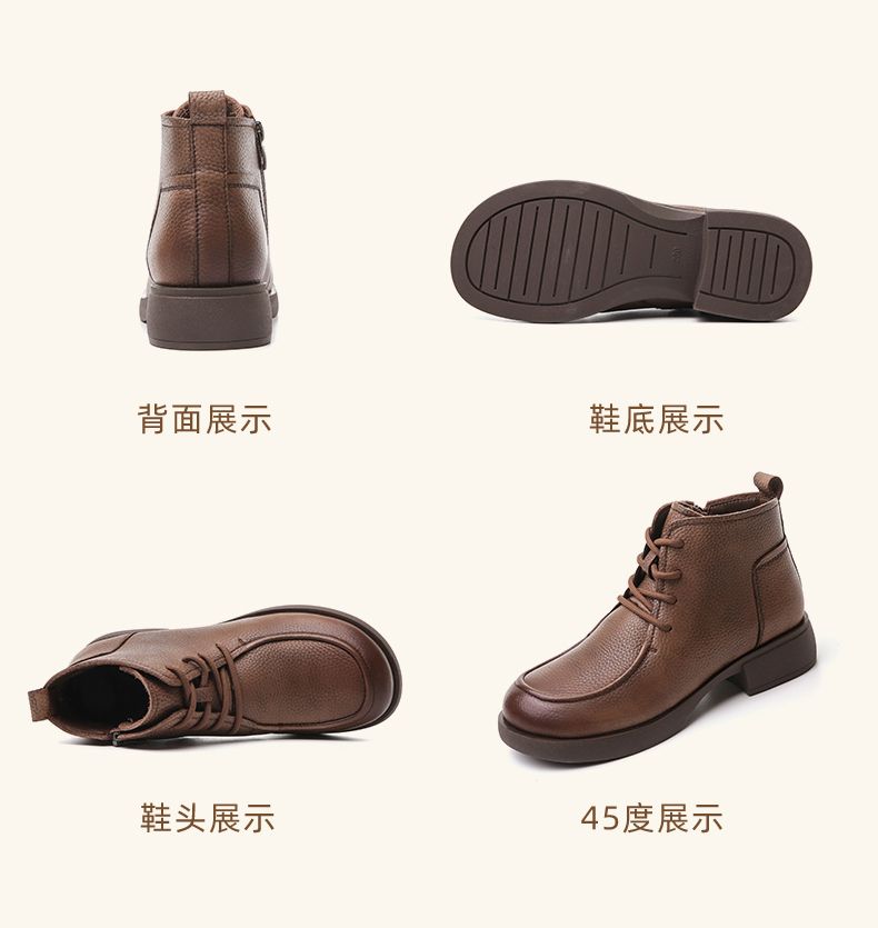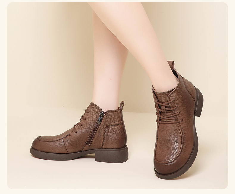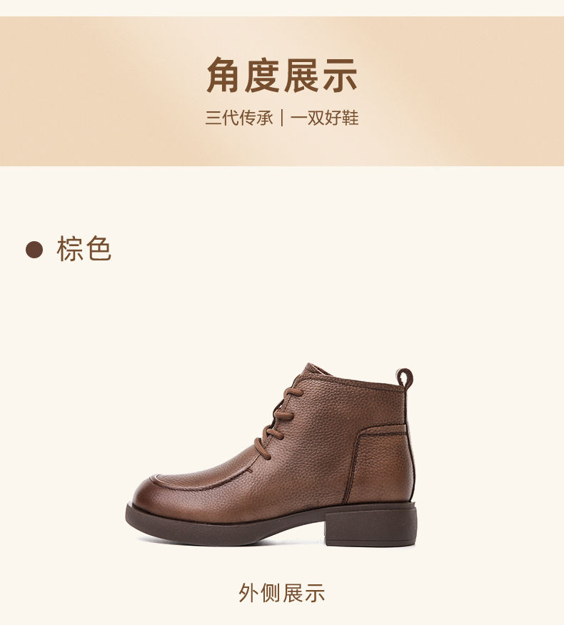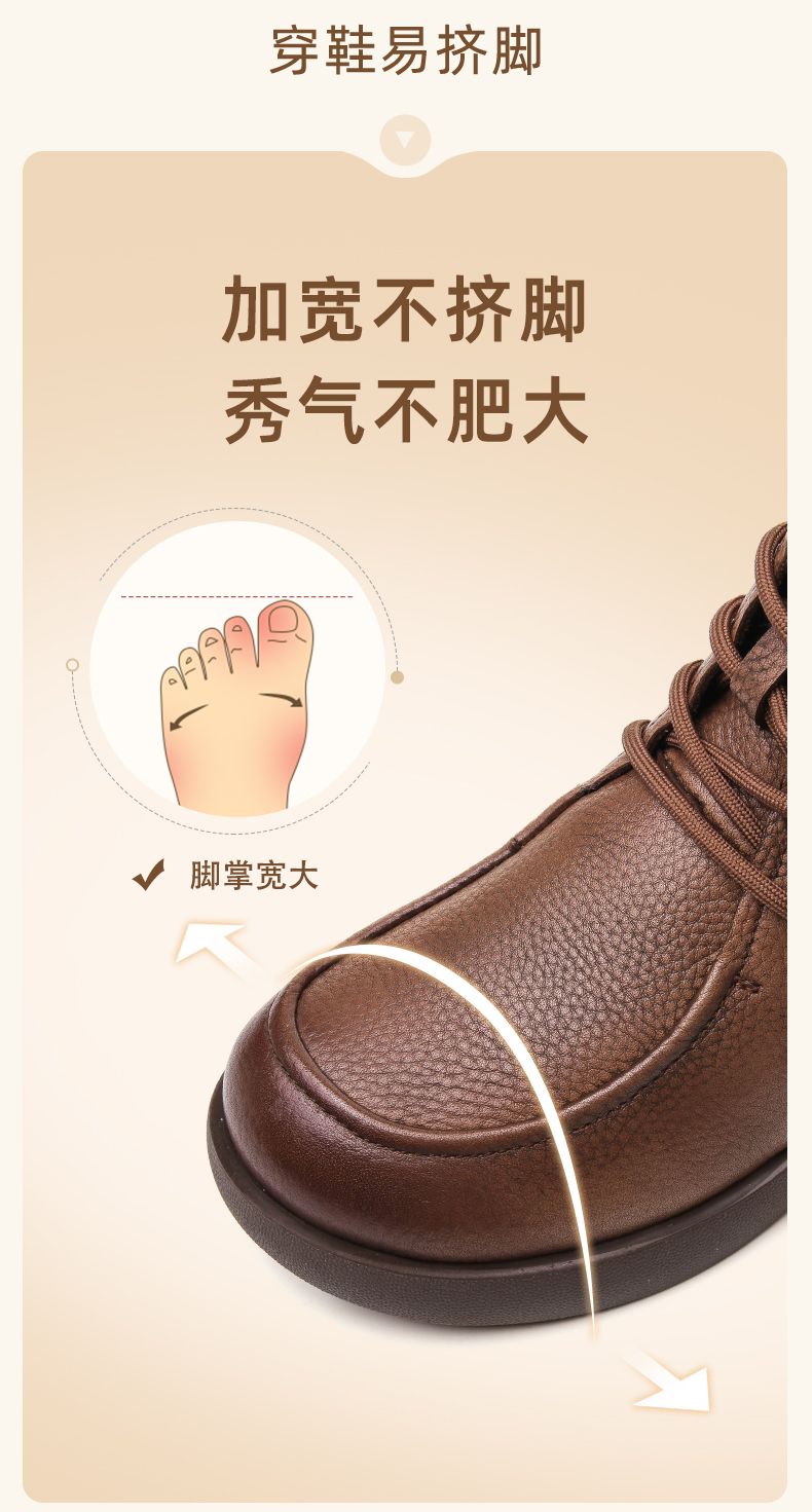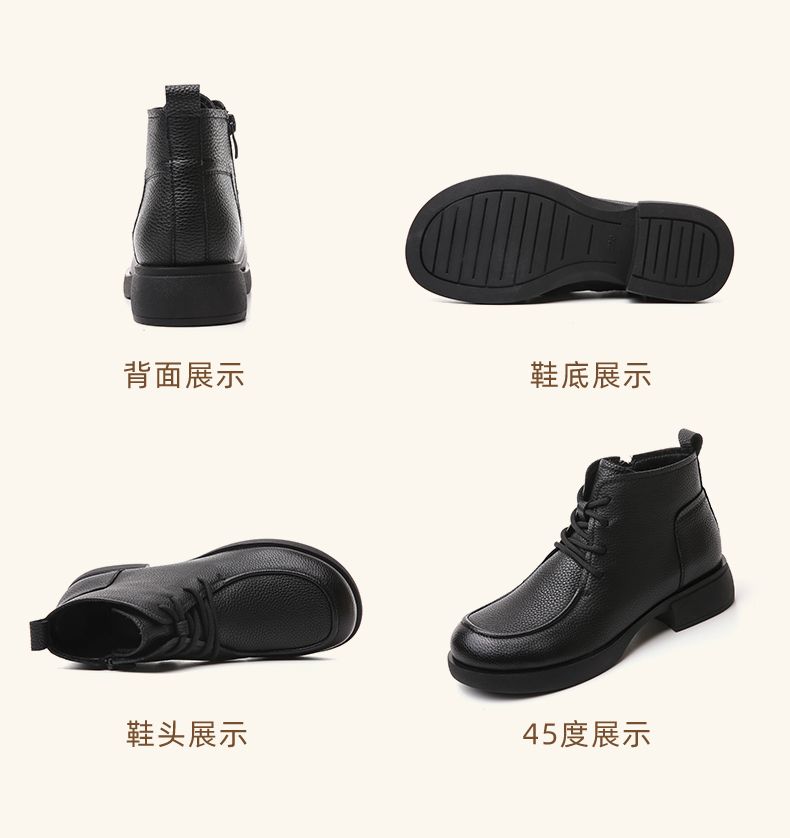 信诺真皮软底短靴2023新款秋冬季加绒软皮软面中年妈妈鞋马丁靴女23M178-3D