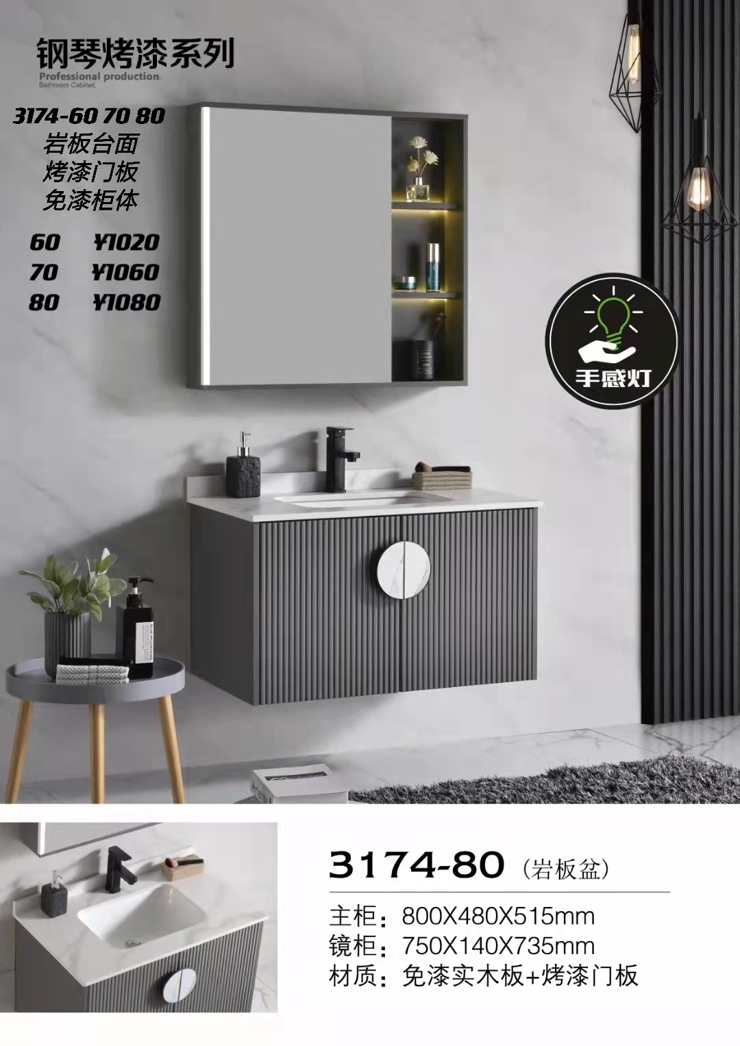 智能轻奢卫浴室柜组合套装洗手池(3174型)【LY】