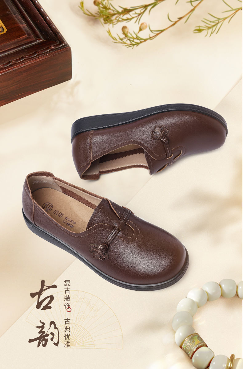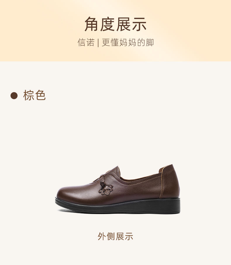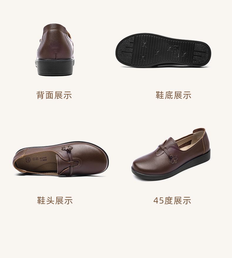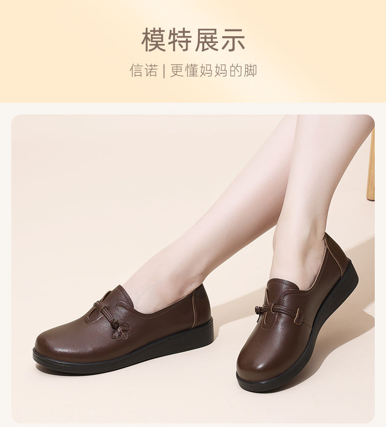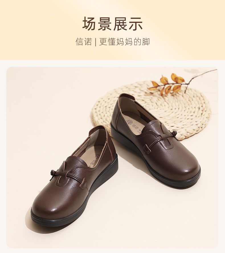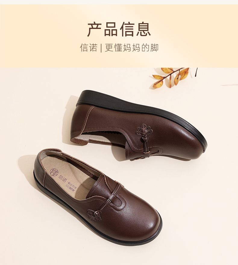 信诺真皮舒适妈妈鞋2024新款秋季软底女鞋中老年皮鞋平底奶奶单鞋Q6801-22