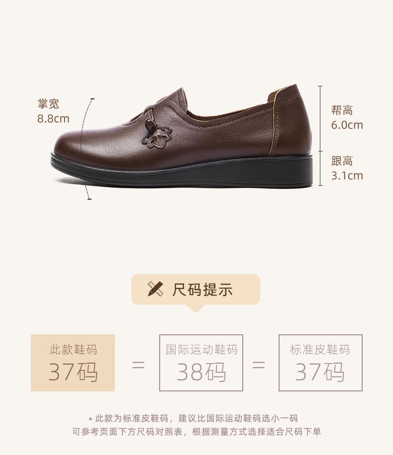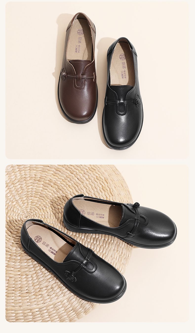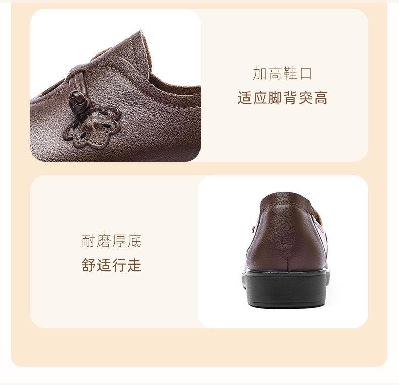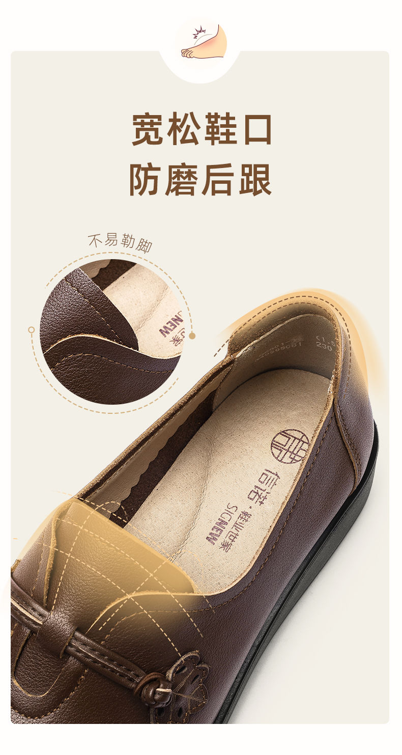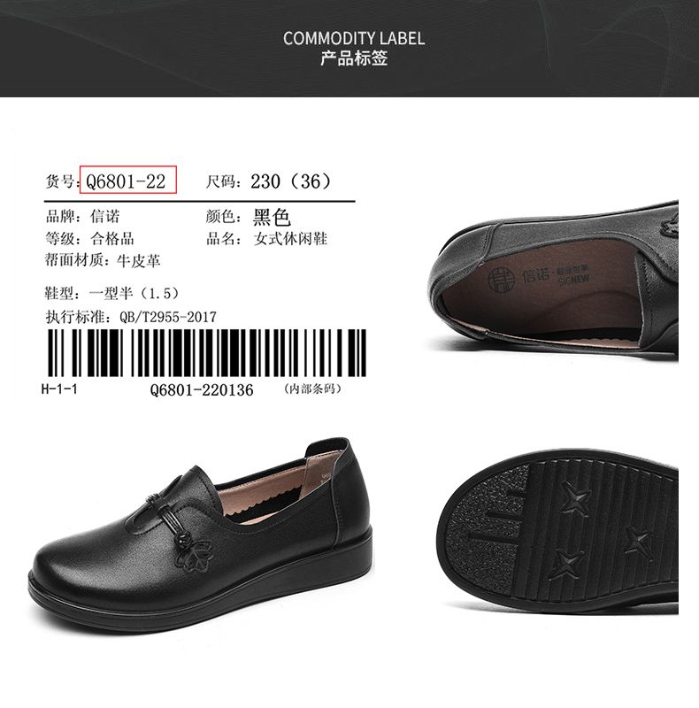 信诺真皮舒适妈妈鞋2024新款秋季软底女鞋中老年皮鞋平底奶奶单鞋Q6801-22