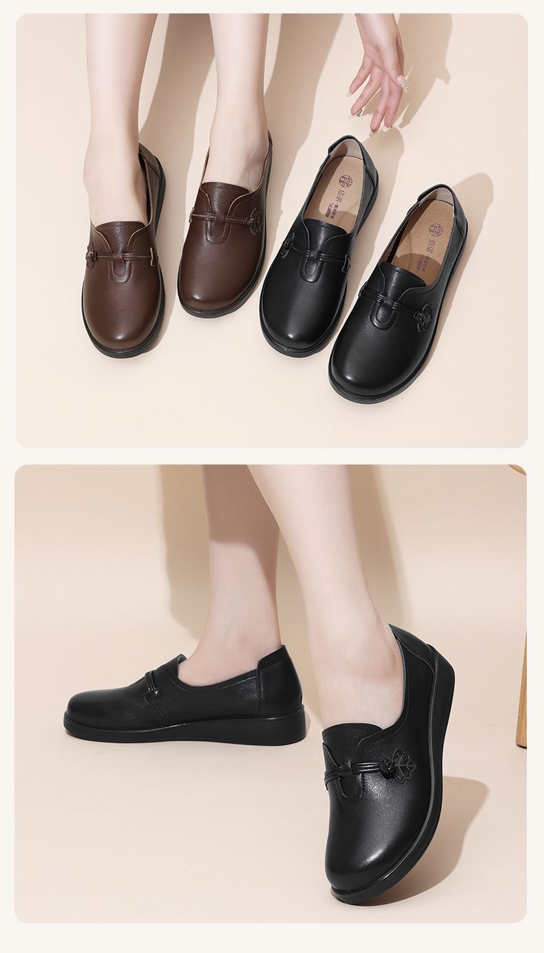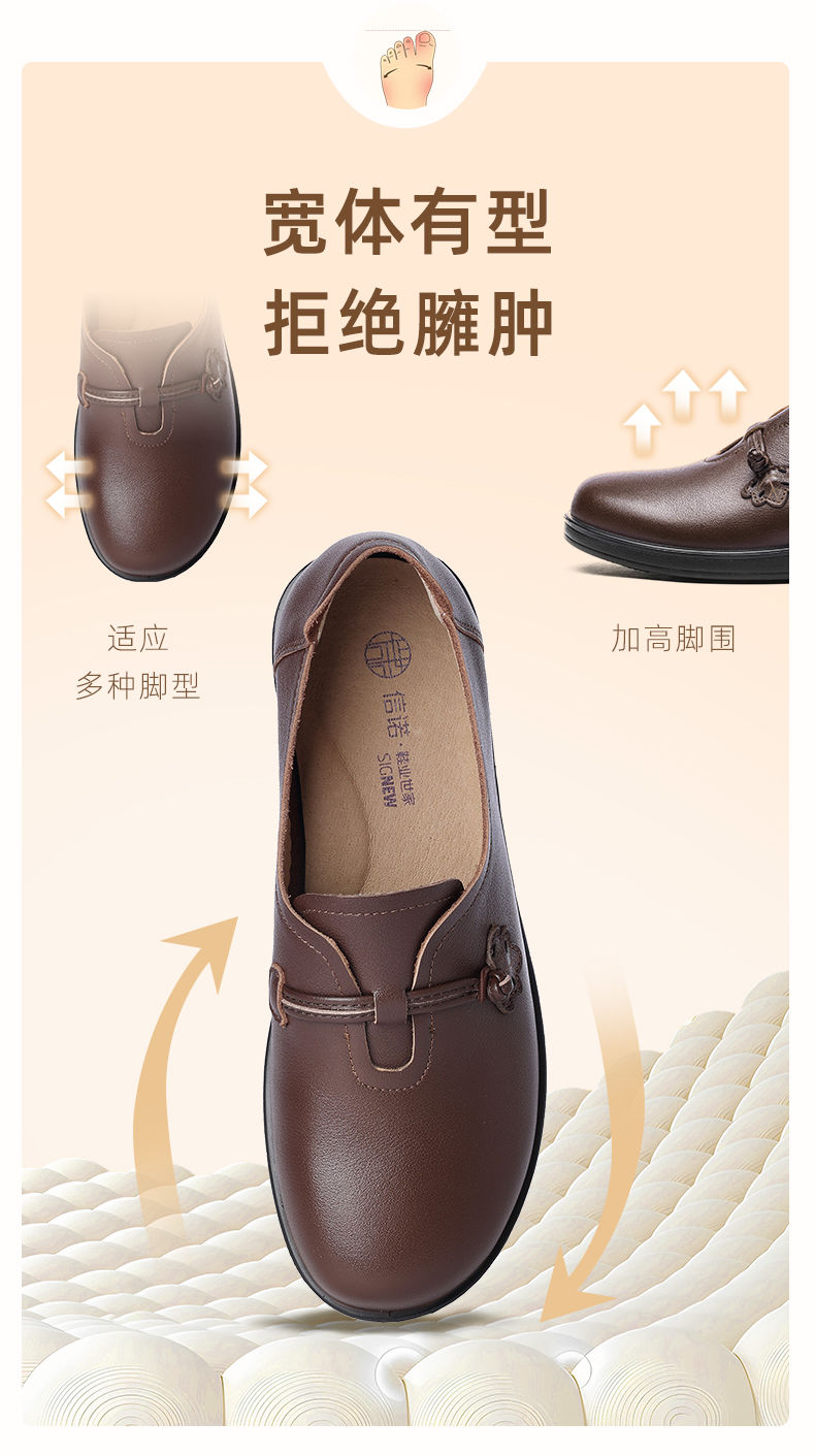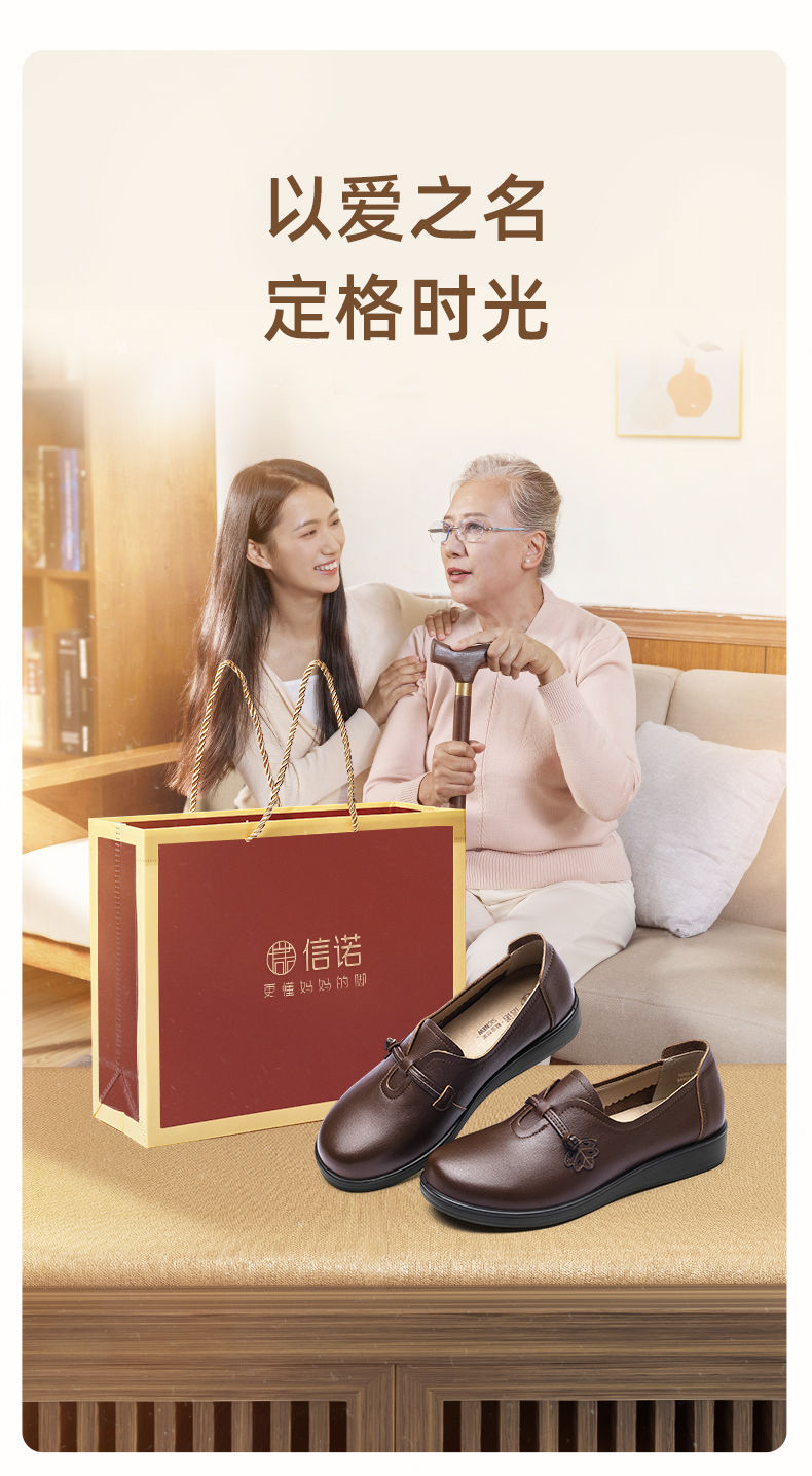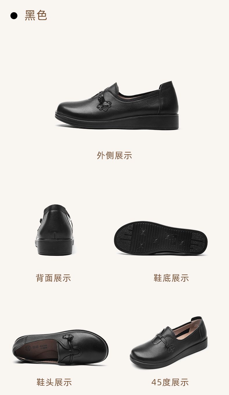 信诺真皮舒适妈妈鞋2024新款秋季软底女鞋中老年皮鞋平底奶奶单鞋Q6801-22