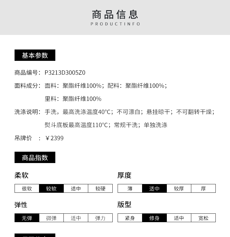 成熟、稳重、高贵典雅、大方得体 融合东方文化的含蓄和法国的浪漫 将创意的艺术性与消费需求相结合 为自信女性塑造高品质场合服装