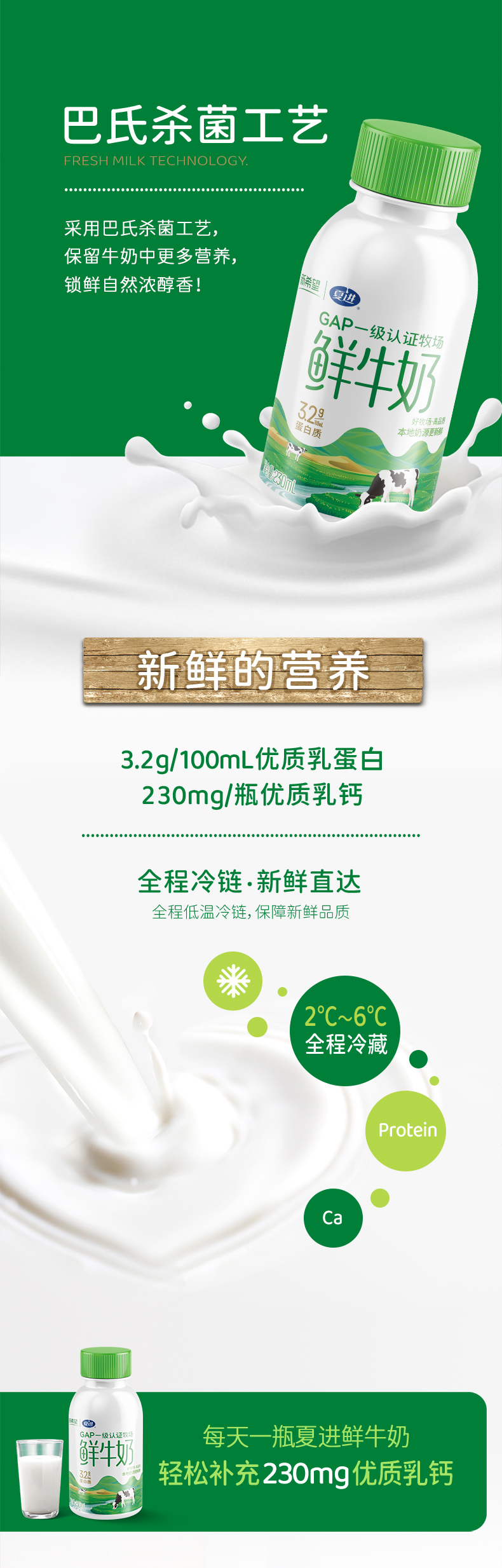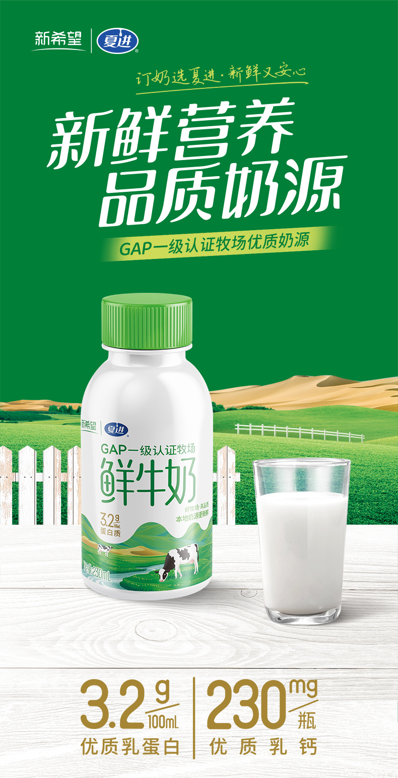 「银川本地日配服务」夏进瓶装巴氏奶 230ml/瓶 其他地区下单请联系客服