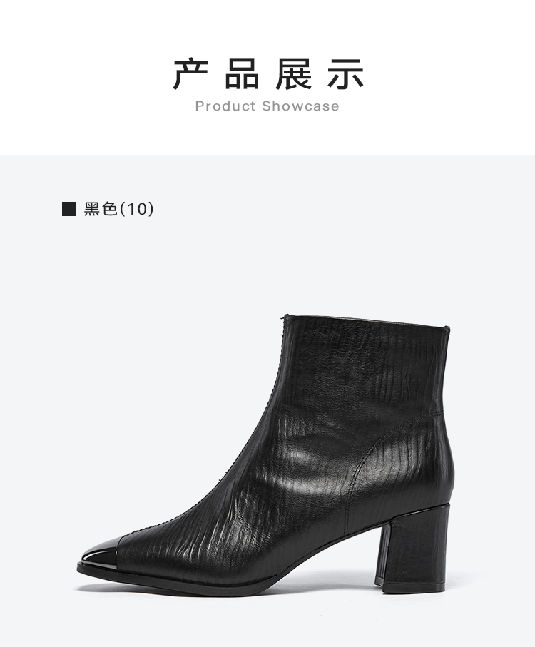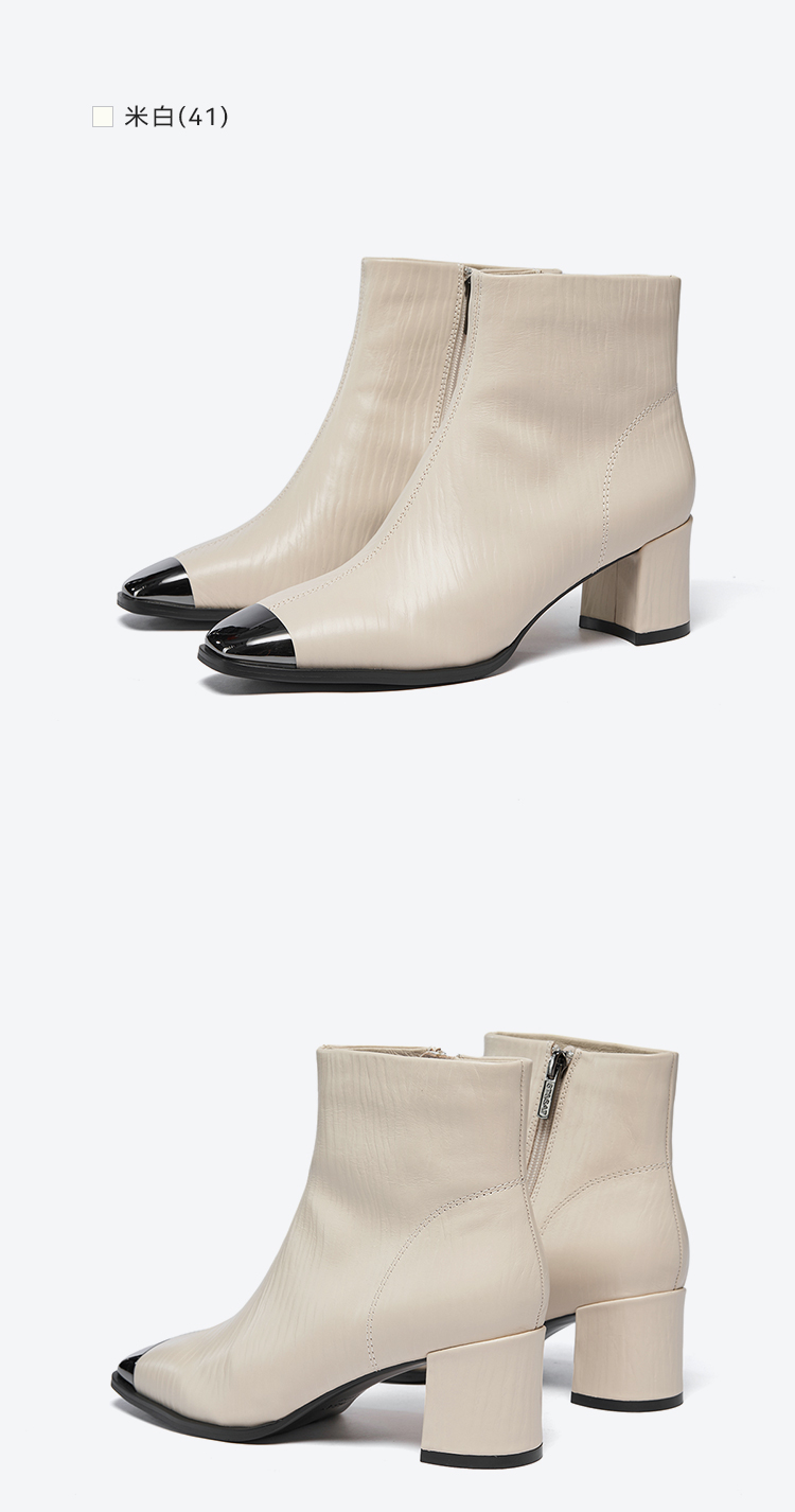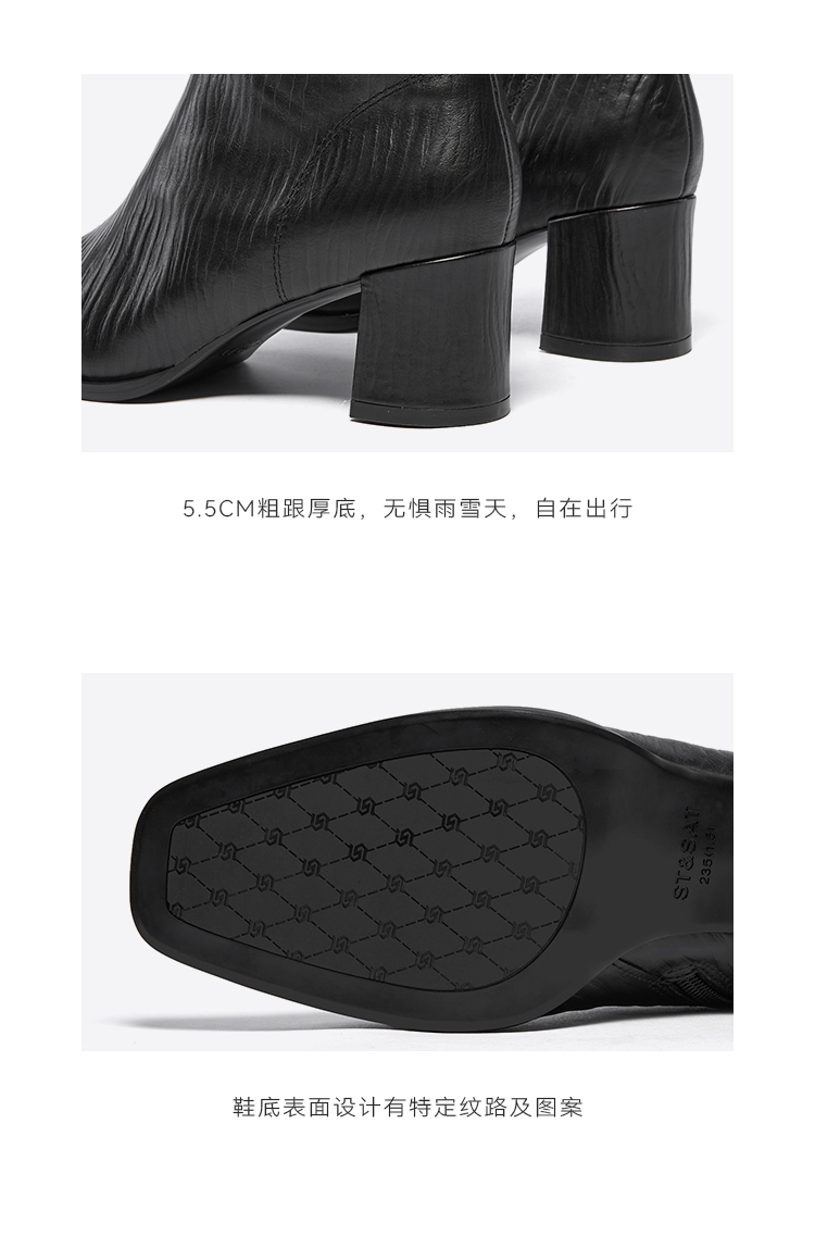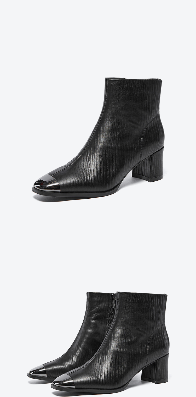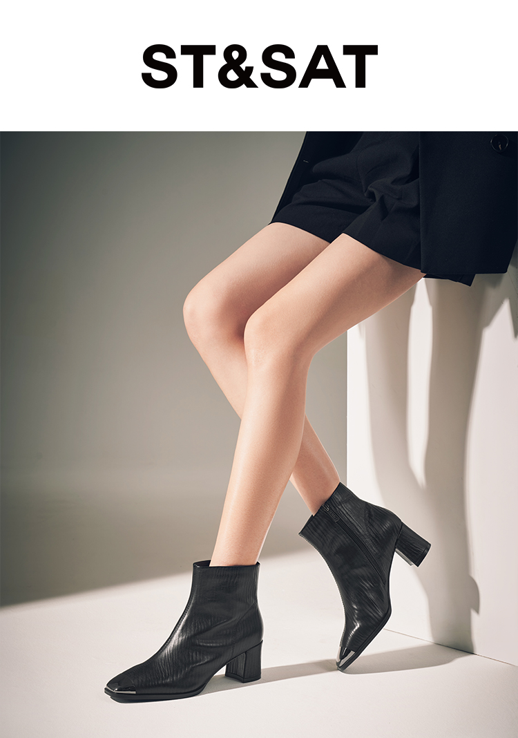 星期六金属方头压纹粗跟时装短靴SSC4116533