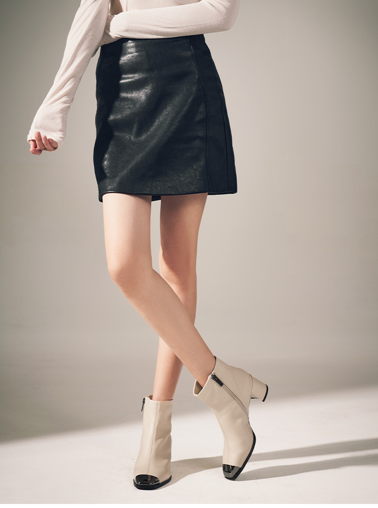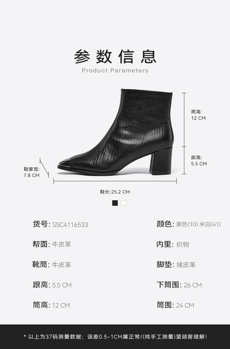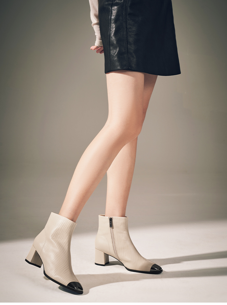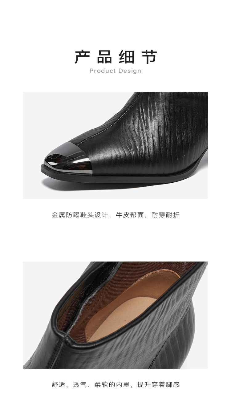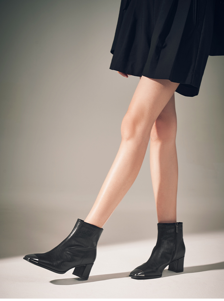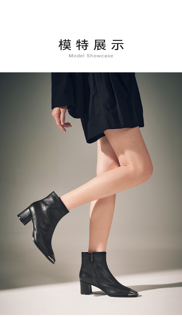 星期六金属方头压纹粗跟时装短靴SSC4116533