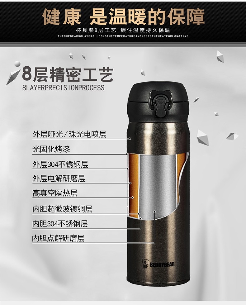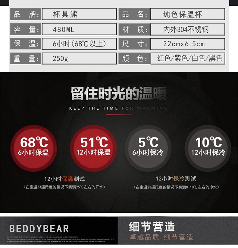 【品牌直发】【杯具熊保温杯纯色成人杯】短款纯色成人杯380ml/纯色成人杯470ml/运动水杯600ml/加仑壶1100ml 便携简约运动杯成人