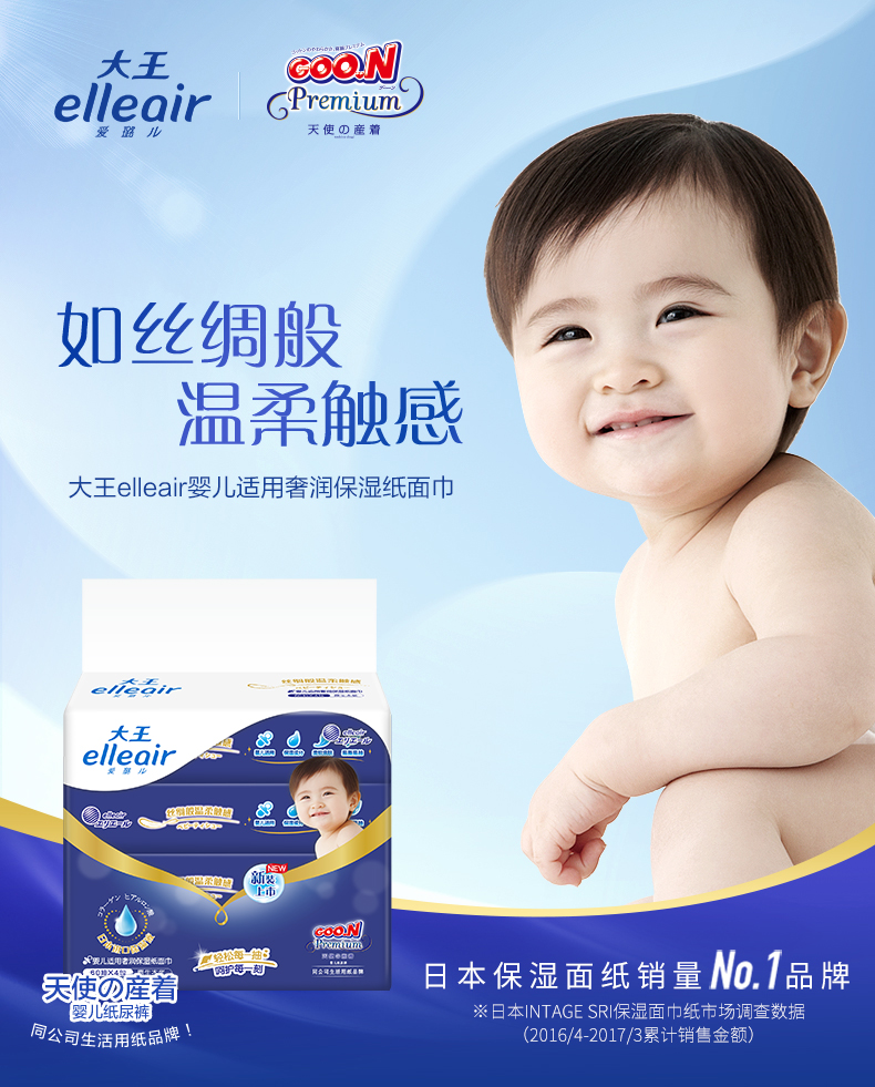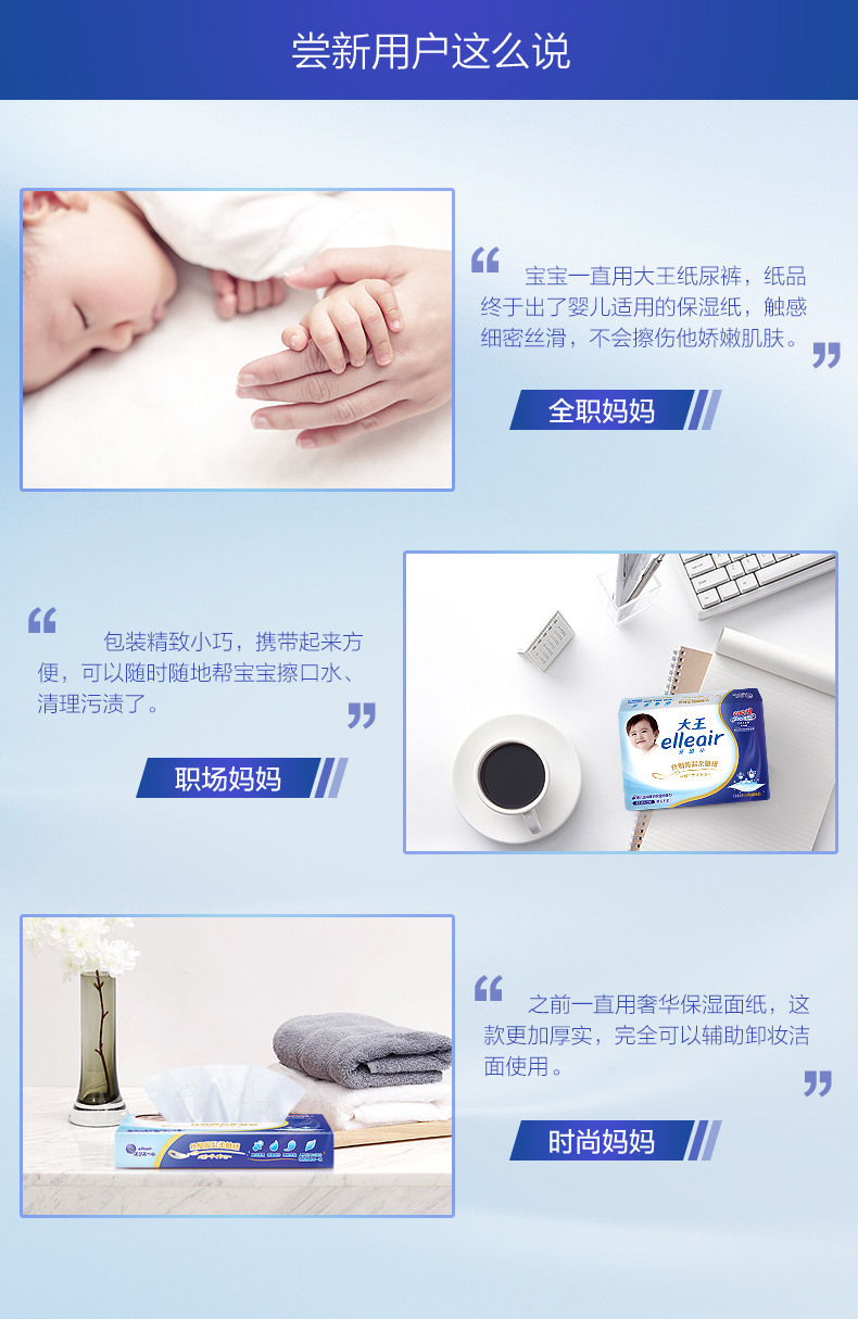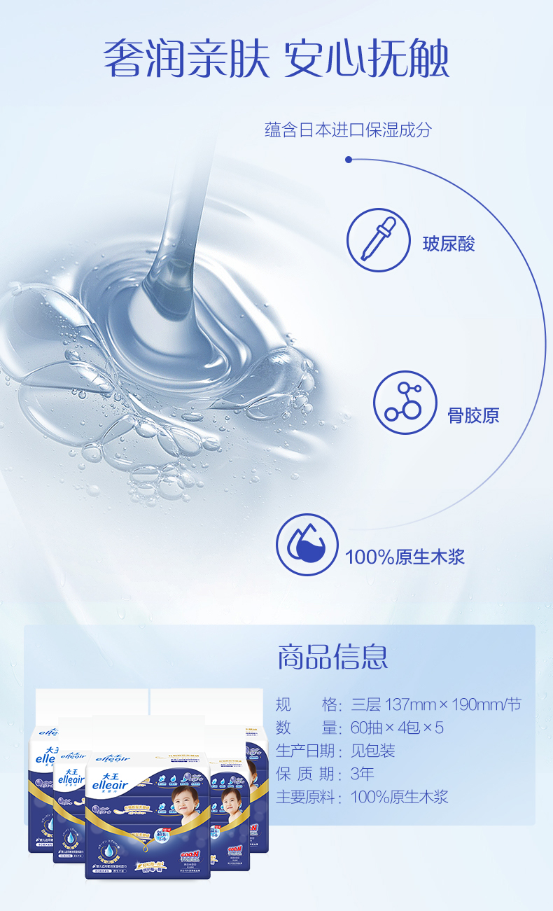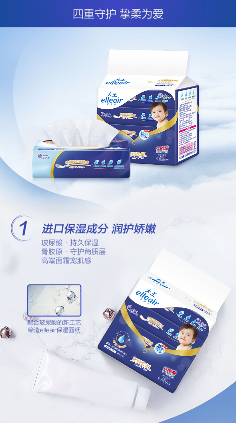 【限时团购】大王爱璐儿 奢润 保湿 新生婴儿面巾抽纸 60抽