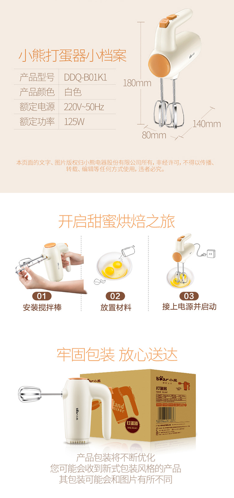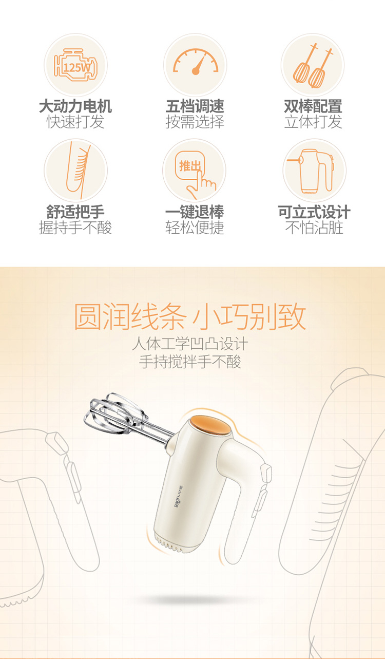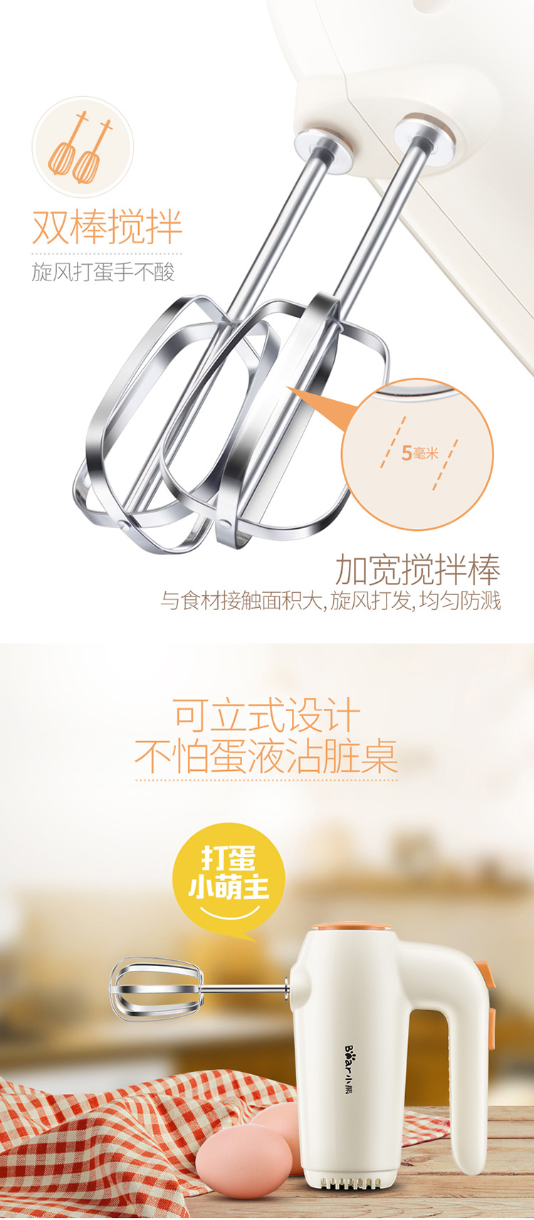 小熊(Bear)打蛋器 电动家用迷你奶油打发器搅拌器烘焙手持DDQ-B01K1