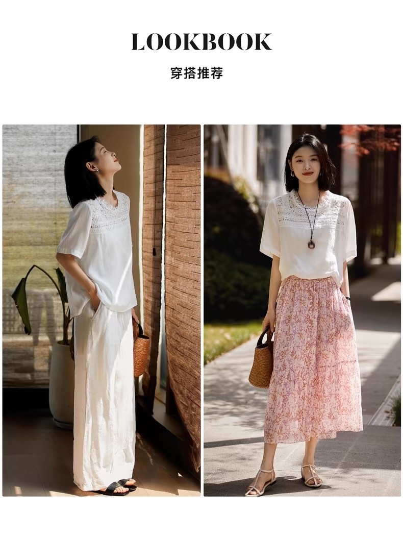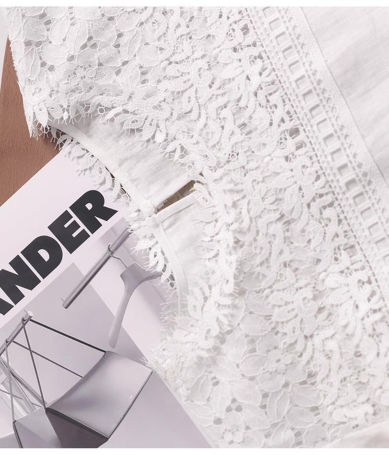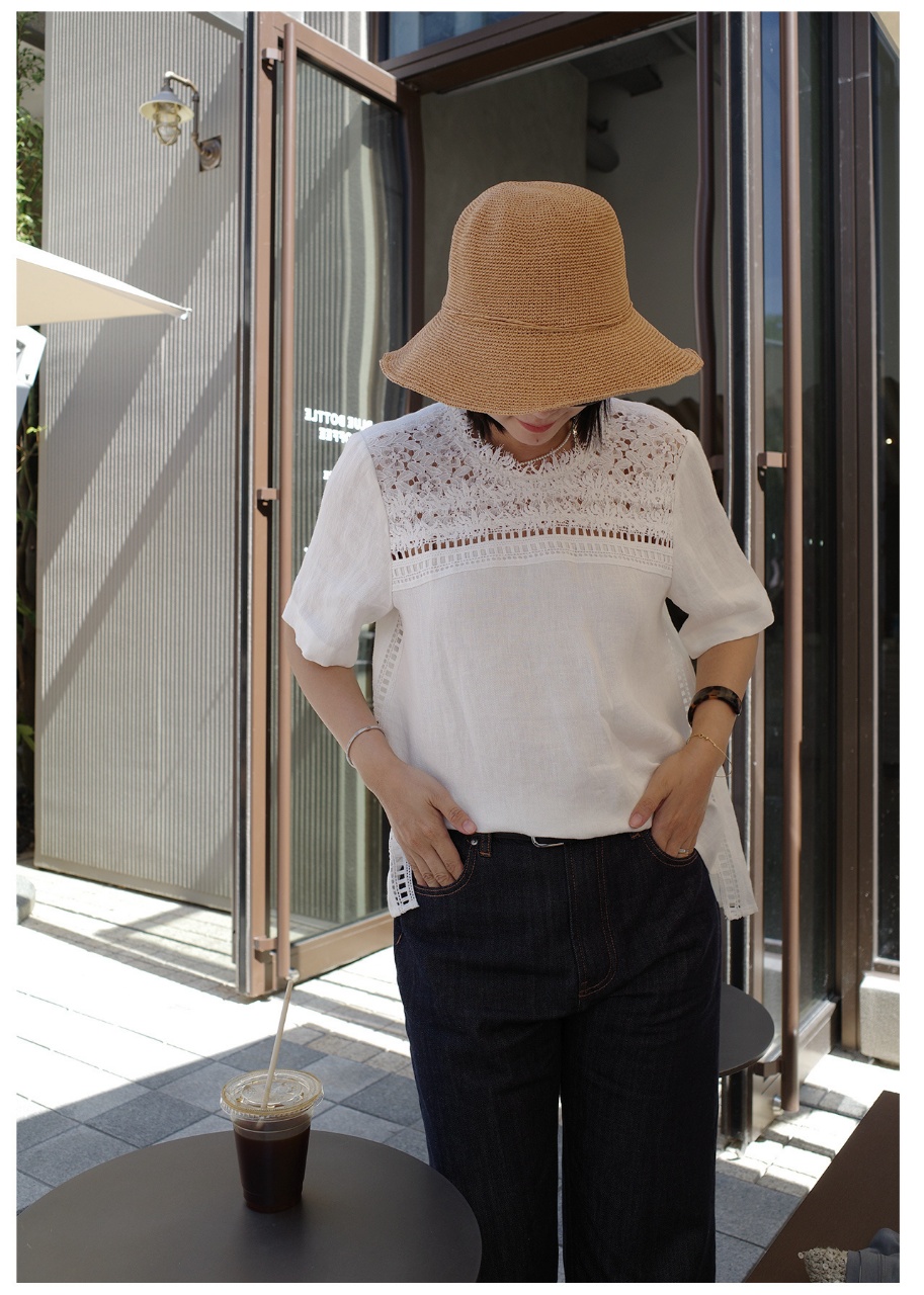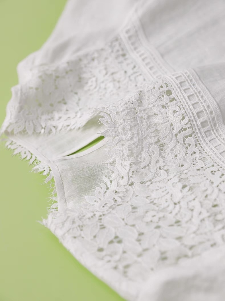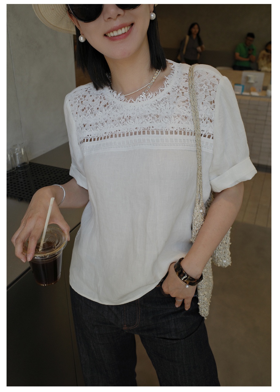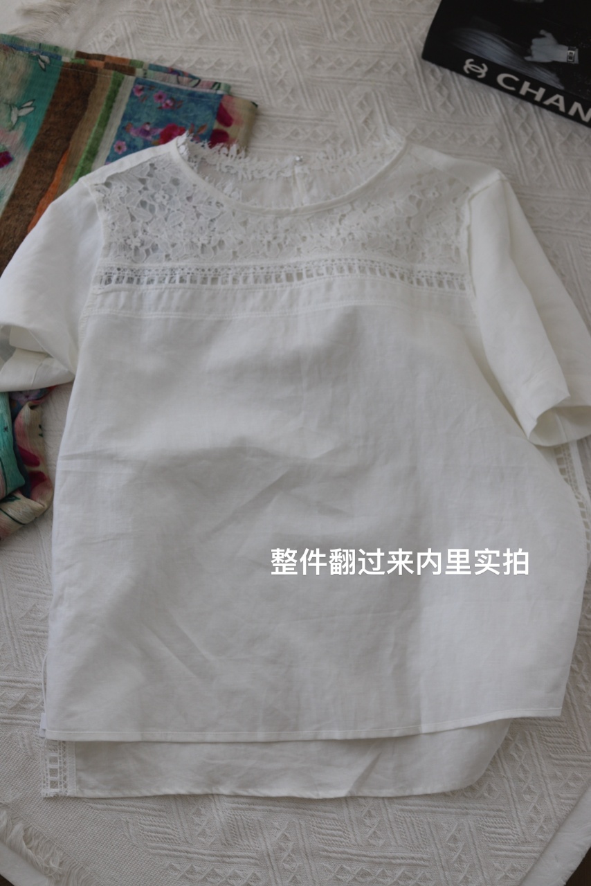 ✨【cosAcosB蕾丝亚麻半袖衬衫】老钱风天hua板!55%亚麻 45%棉,手感舒适柔软,坚韧耐用,天然抑菌,防紫外线