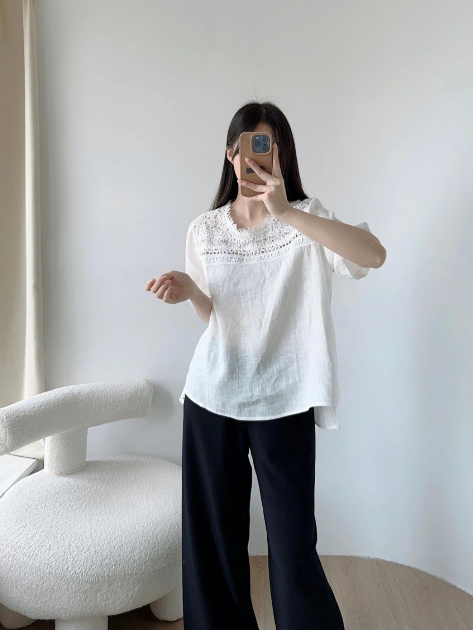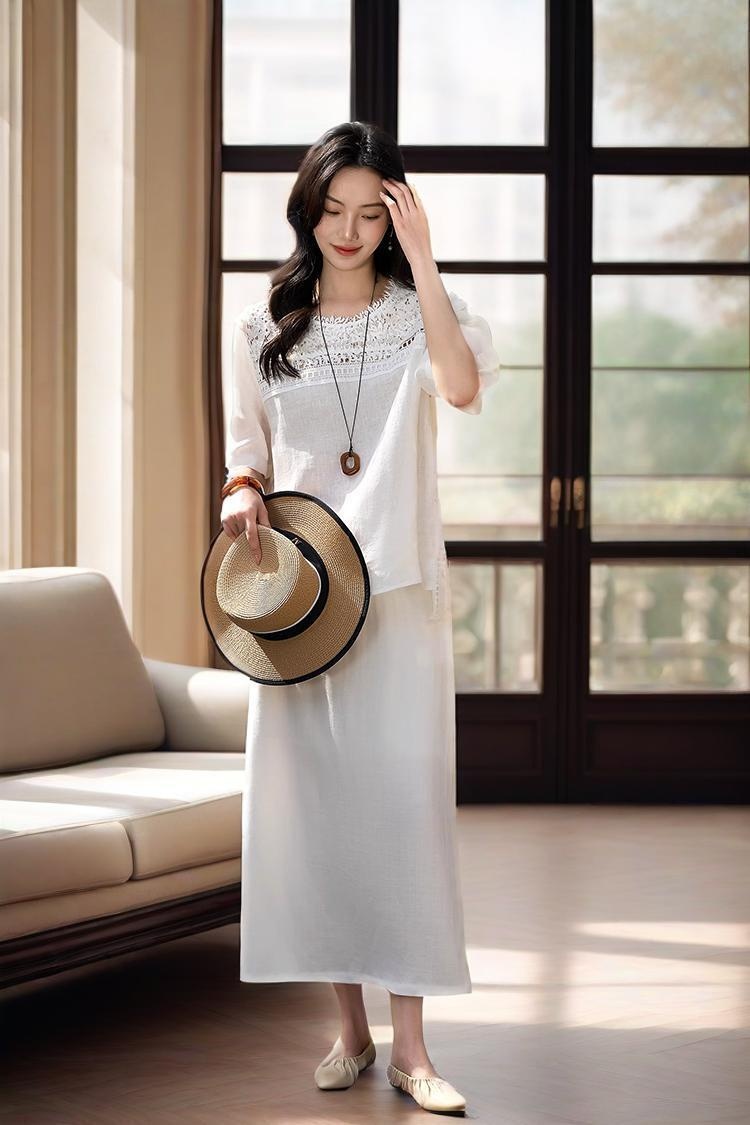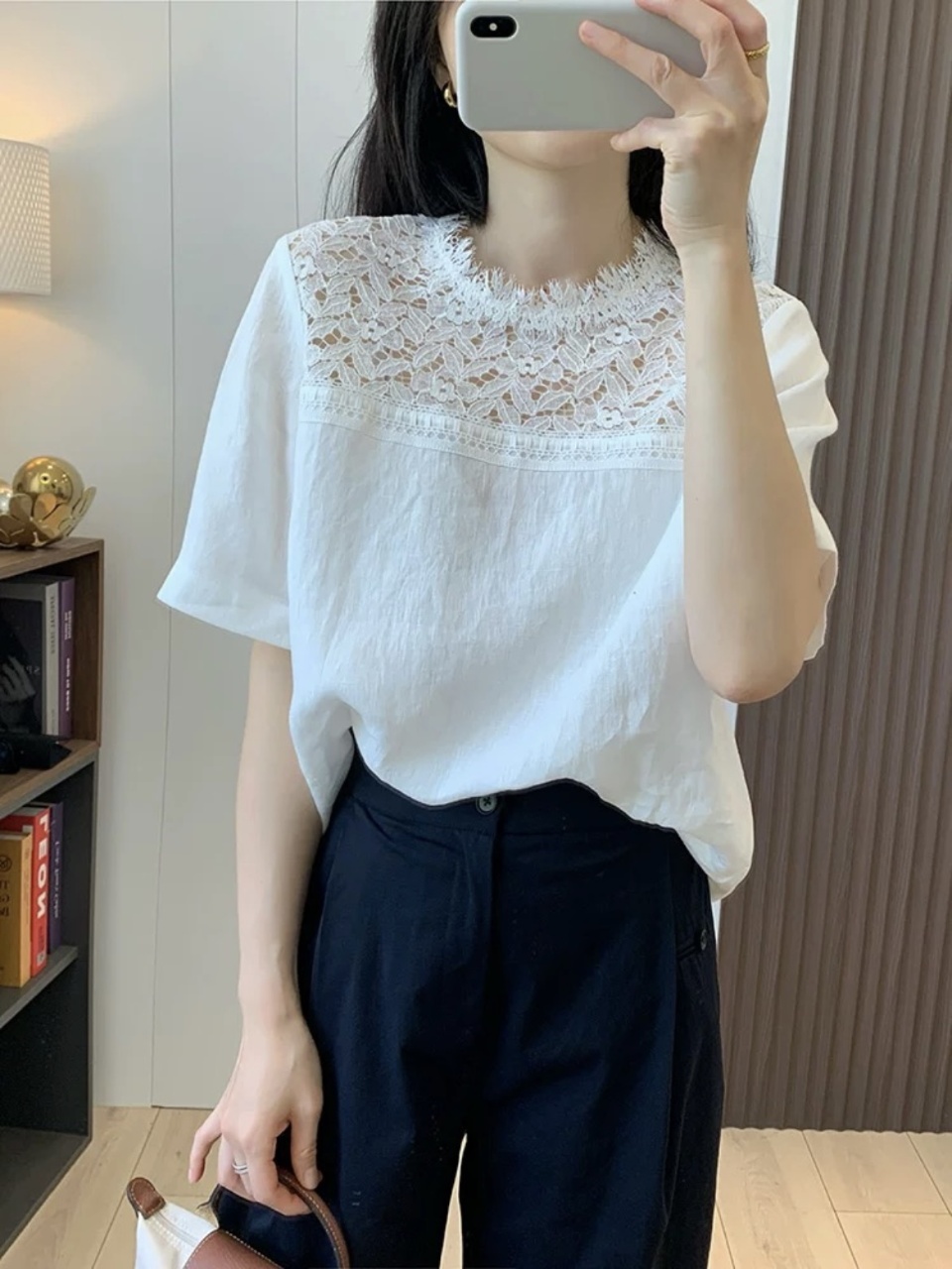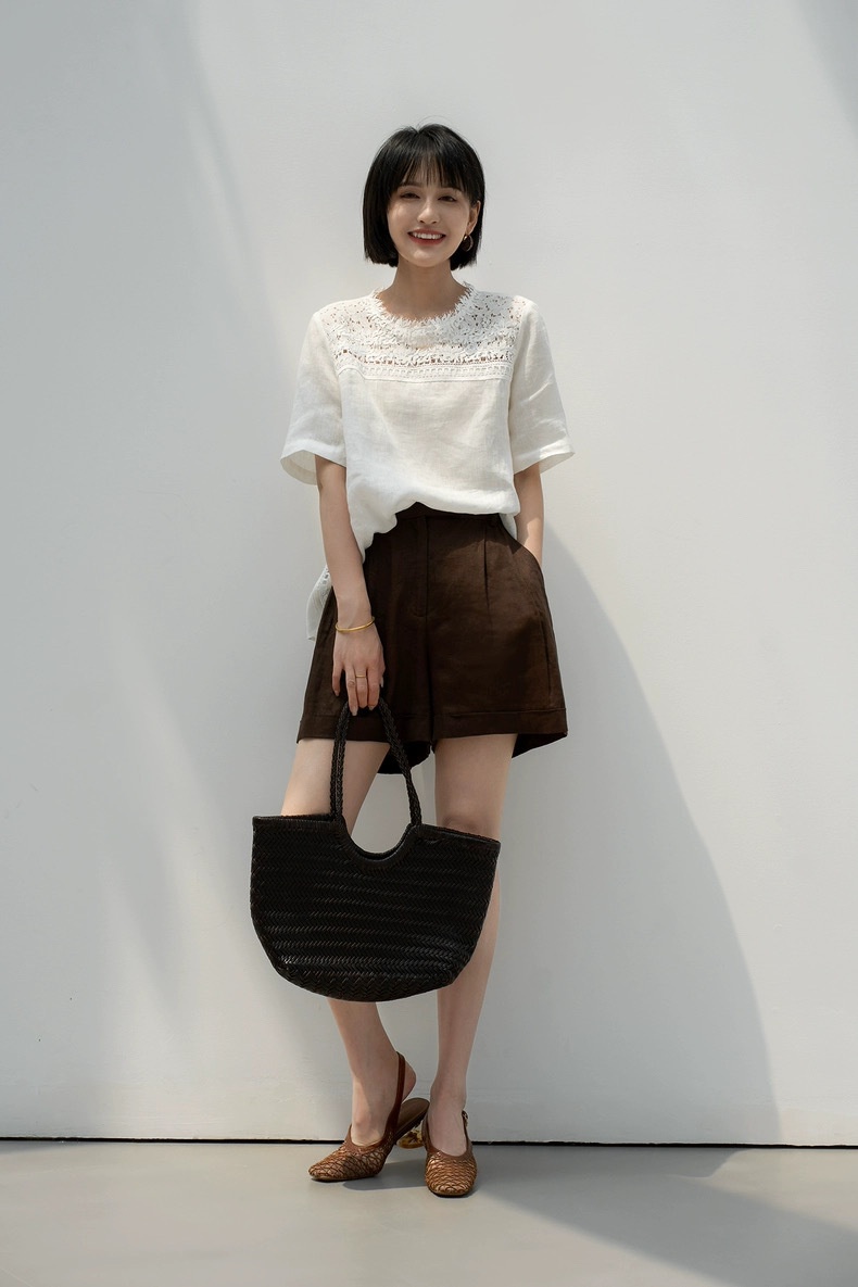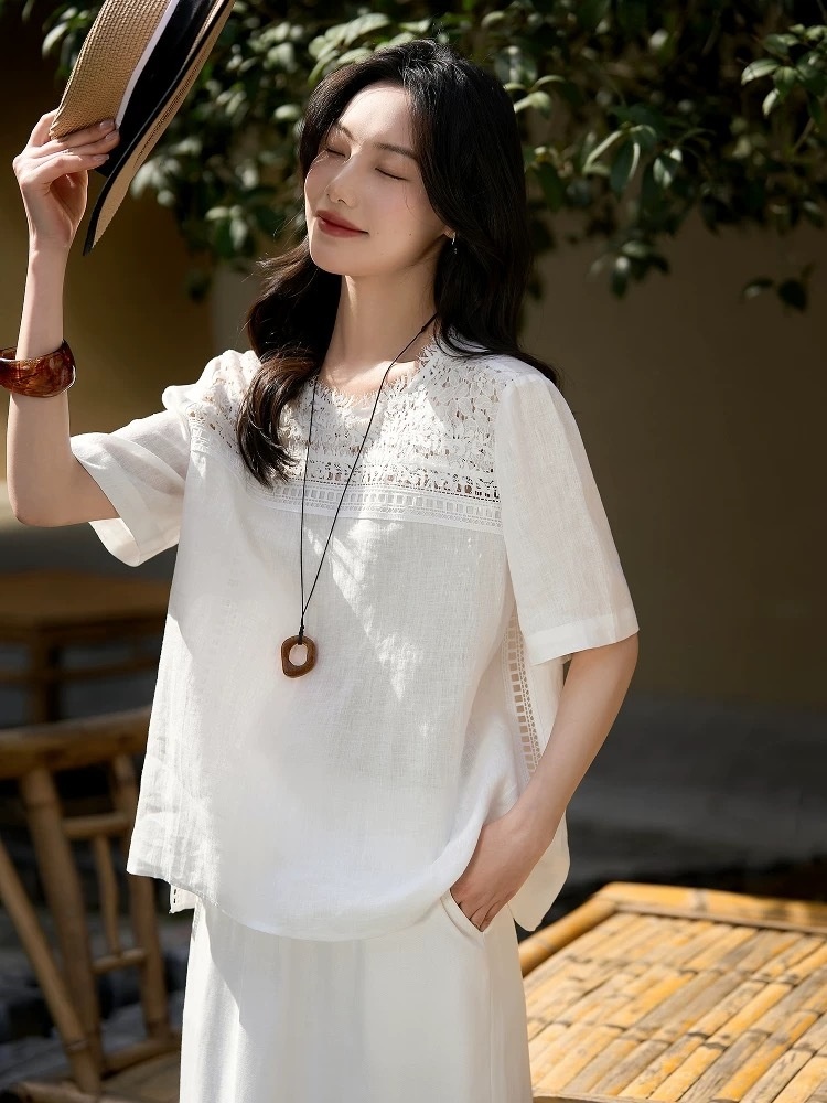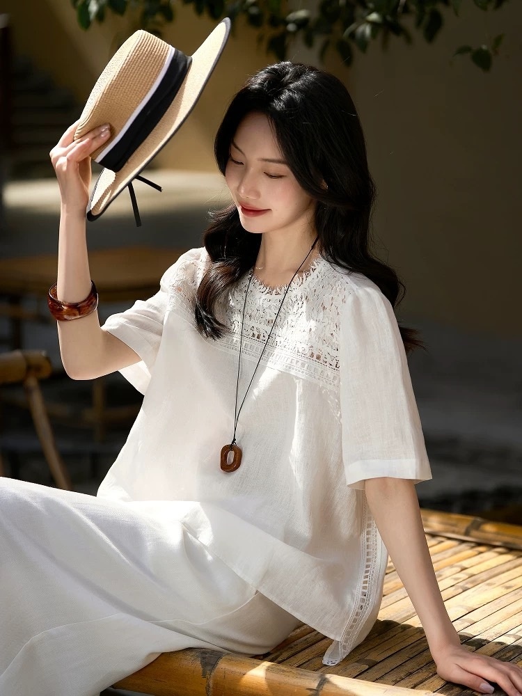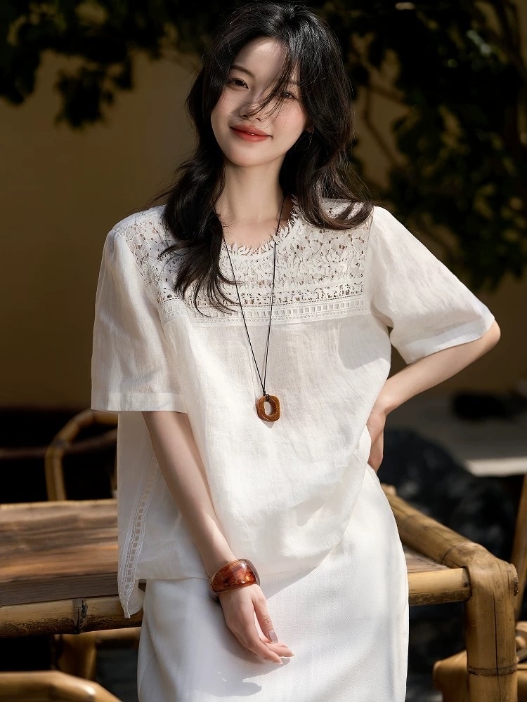✨【cosAcosB蕾丝亚麻半袖衬衫】老钱风天hua板!55%亚麻 45%棉,手感舒适柔软,坚韧耐用,天然抑菌,防紫外线