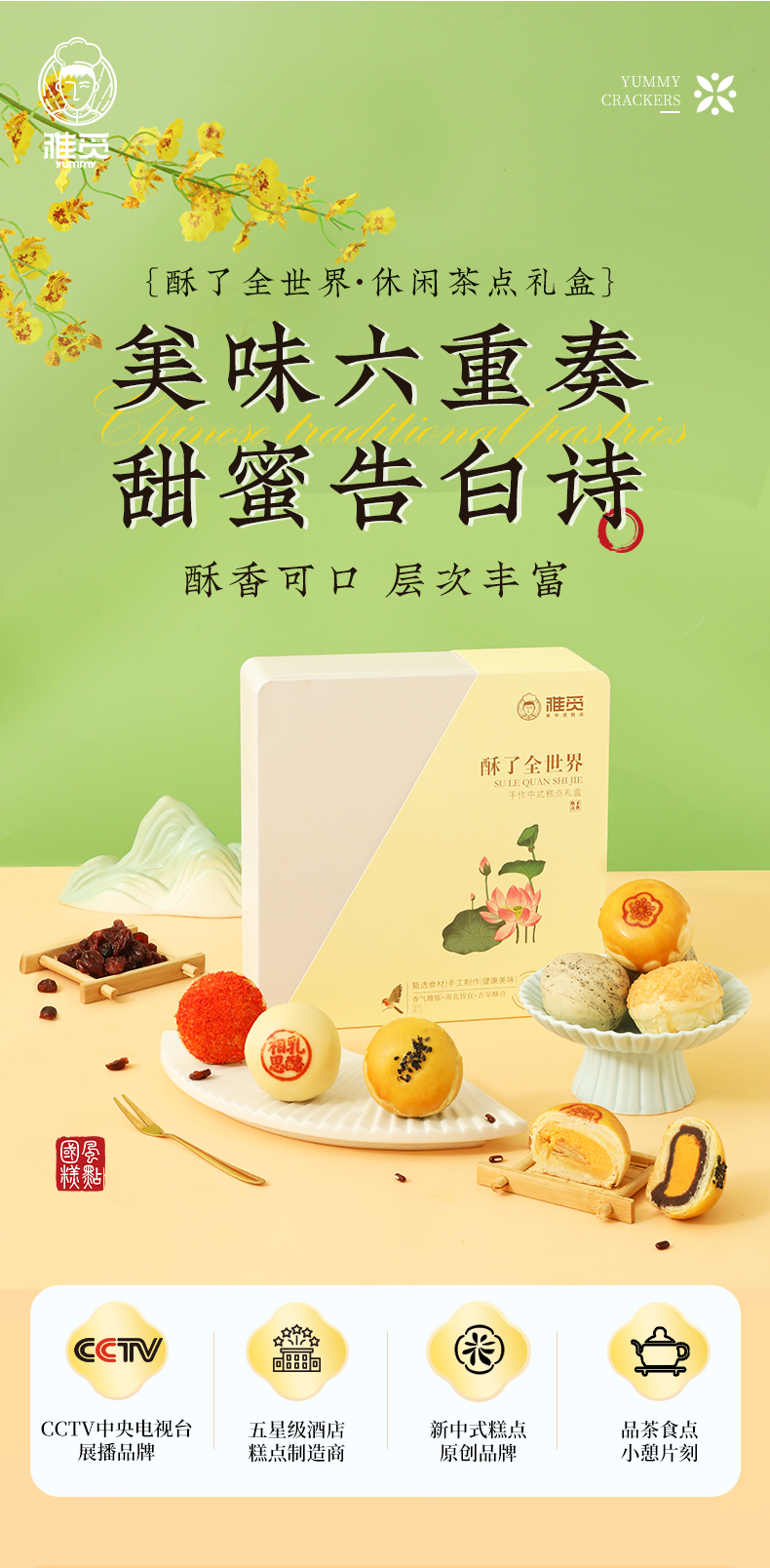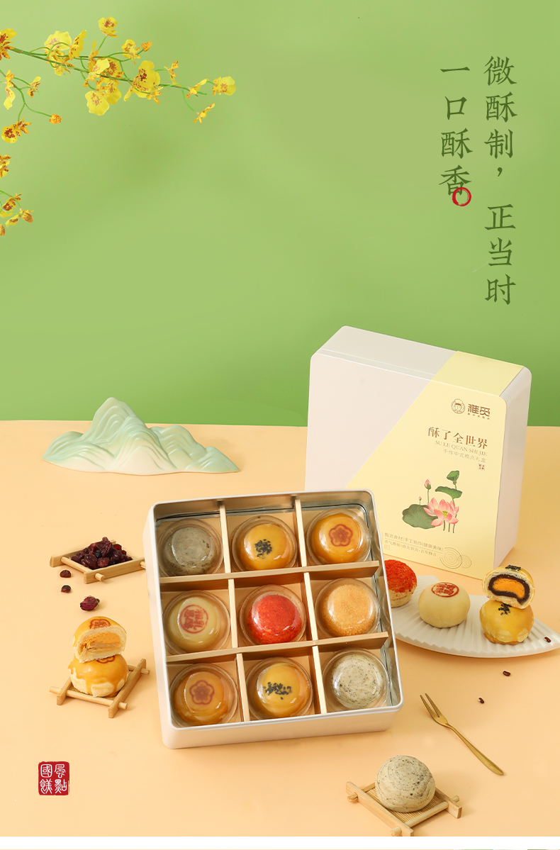 雅觅 酥了全世界糕点点心礼盒 蛋黄酥黑糖酥乳酪酥传统糕点大礼包540g 9枚办公室休闲零食早餐点心独立包装