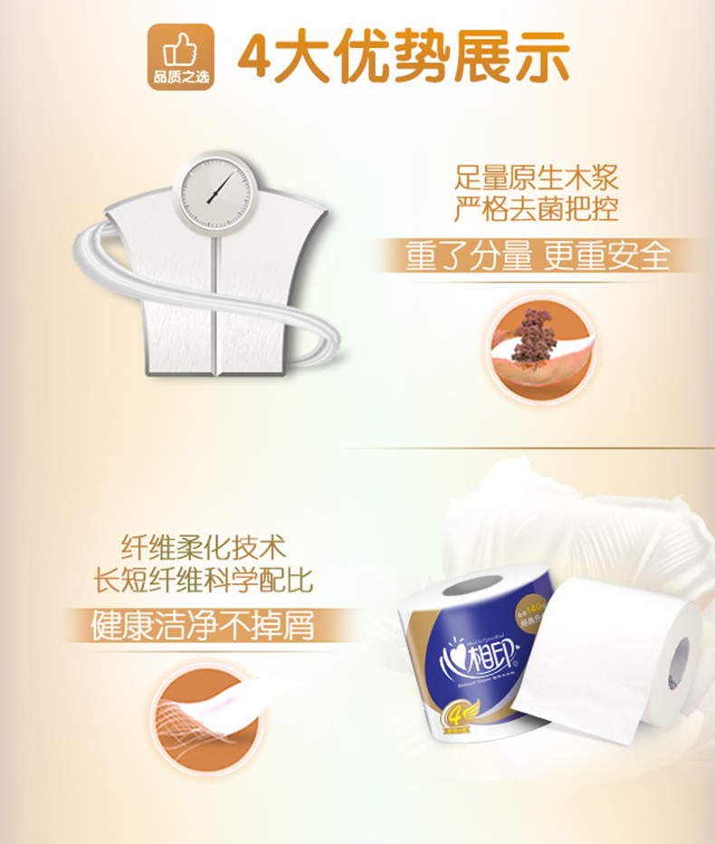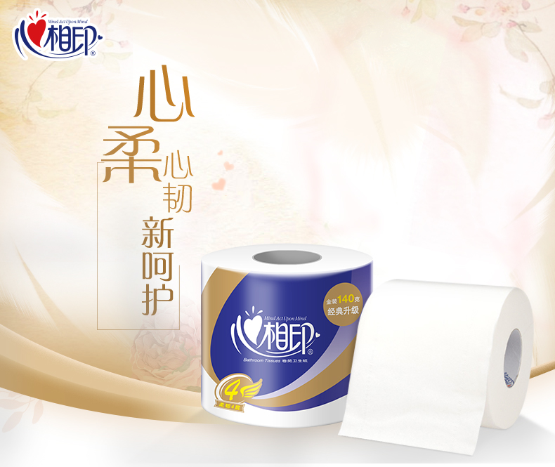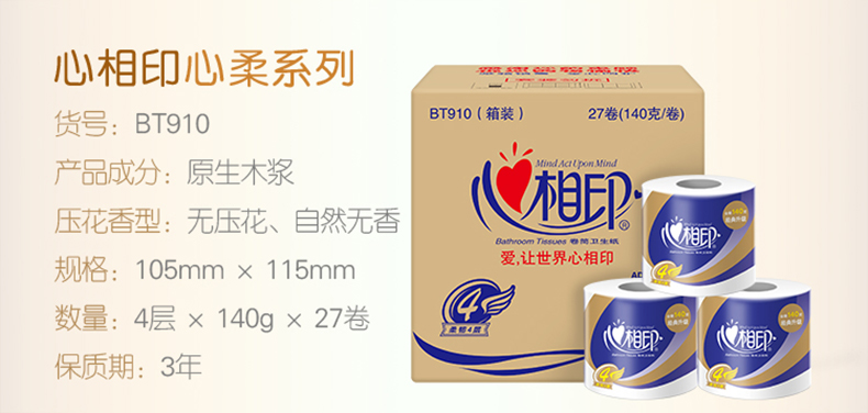 BT910(箱装)心相印140克27粒装四层卷筒卫生纸(四层)