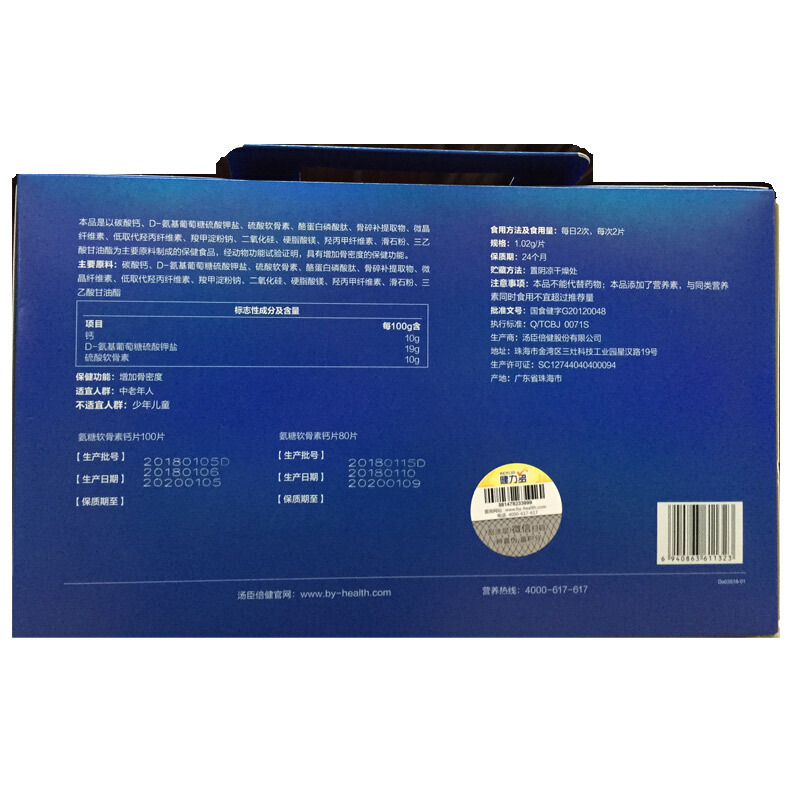 汤臣倍健 健力多氨糖硫酸软骨素钙片 1.02g/片(80片+100片*2瓶) 中老年补钙