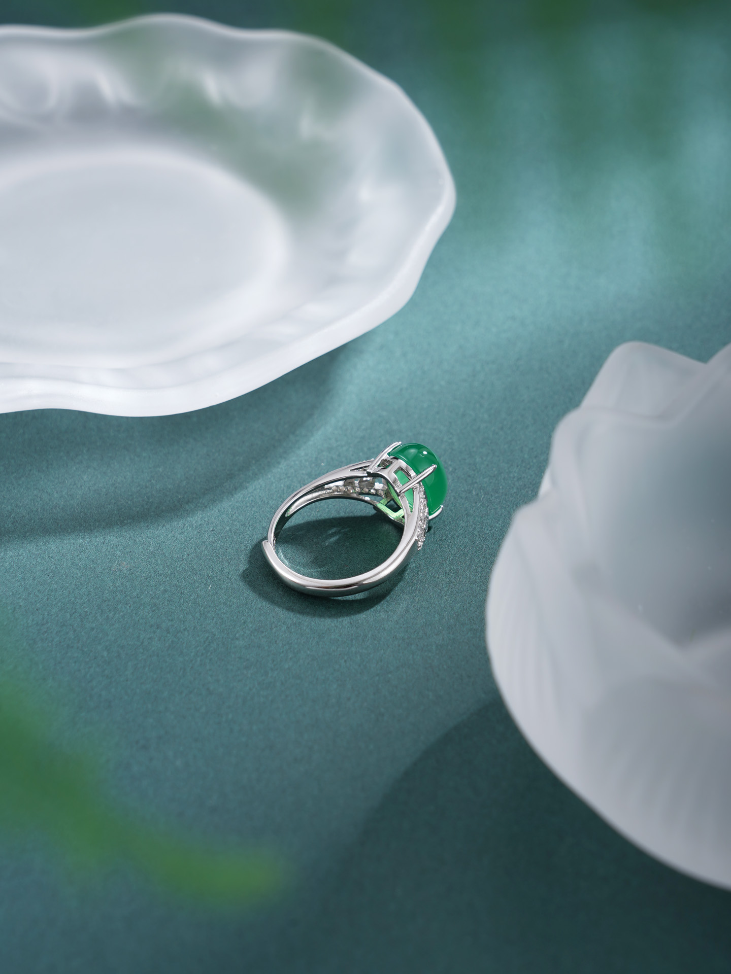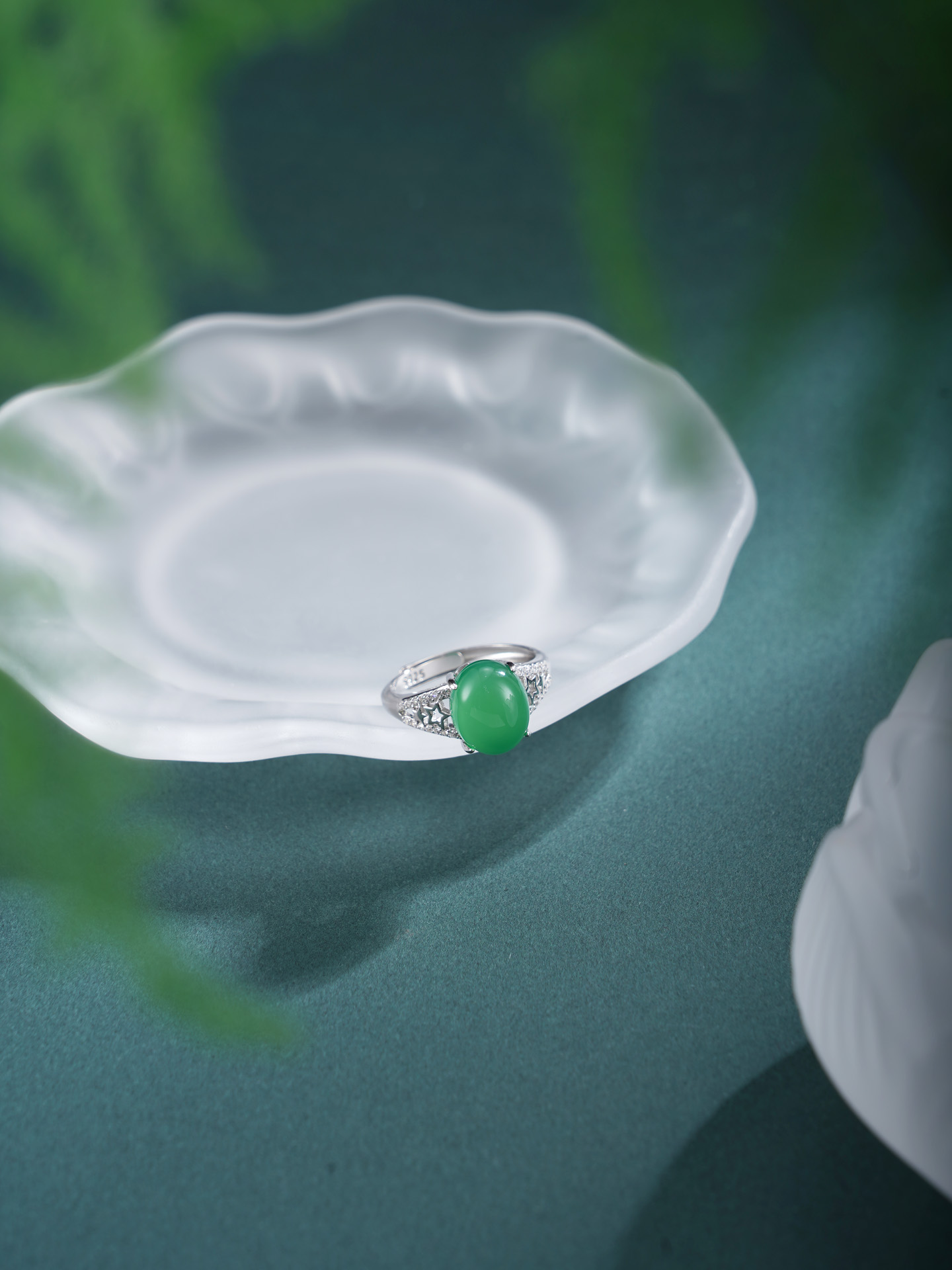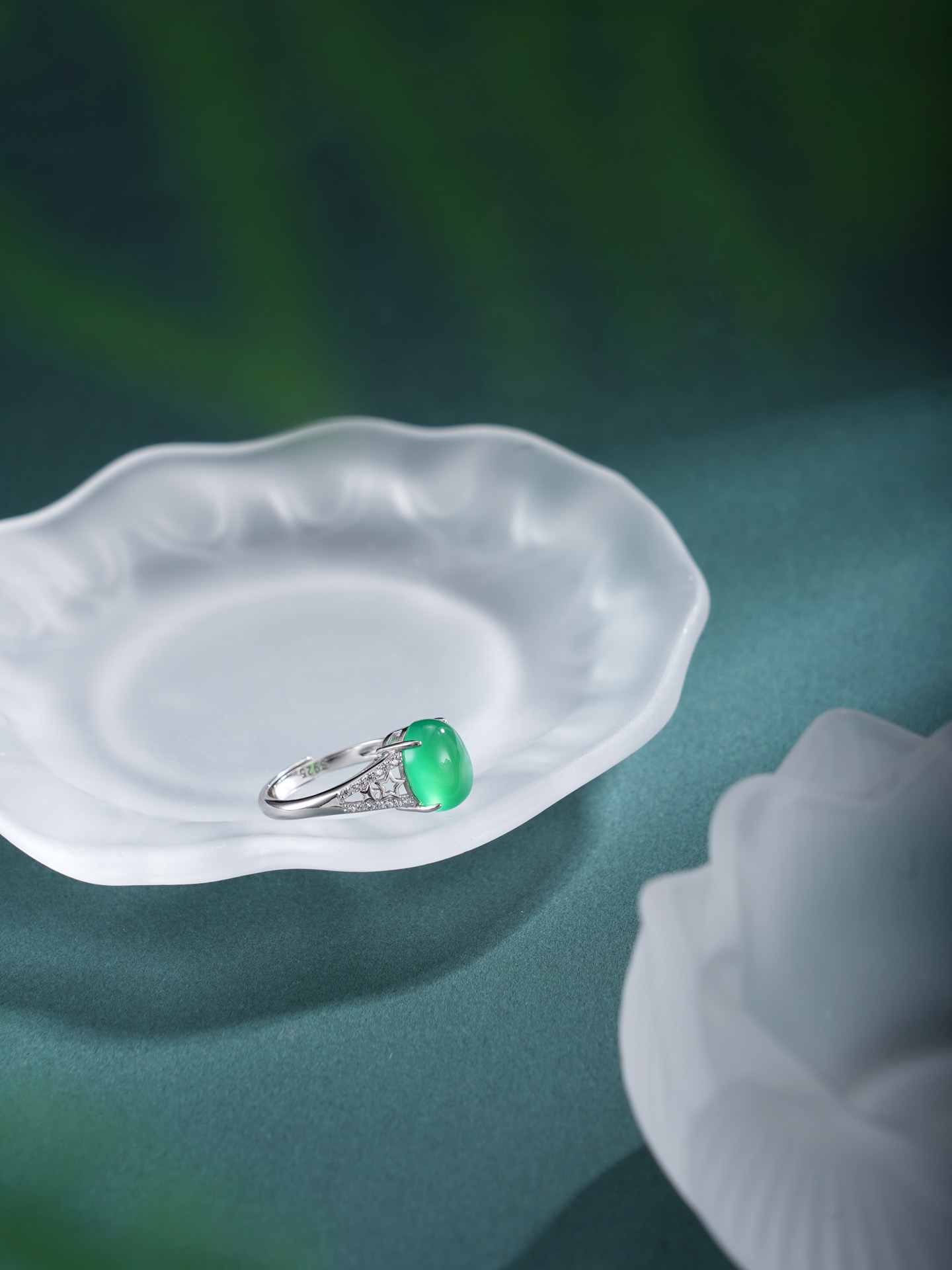 【寓意】:纯银戒托精铸镂空星星纹样,镶嵌蛋面绿玉髓,取“绿漪星辰”之名,寓意人生如星,璀璨不息,亦似清漪,澄澈常新。