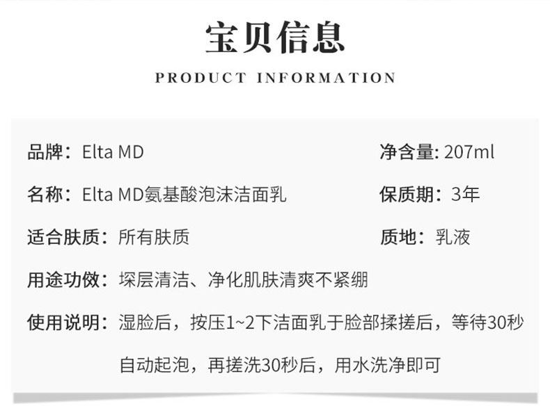 Elta MD氨基酸泡沫洗面奶 深层清洁收缩毛孔