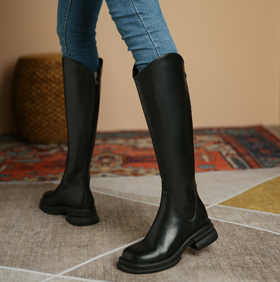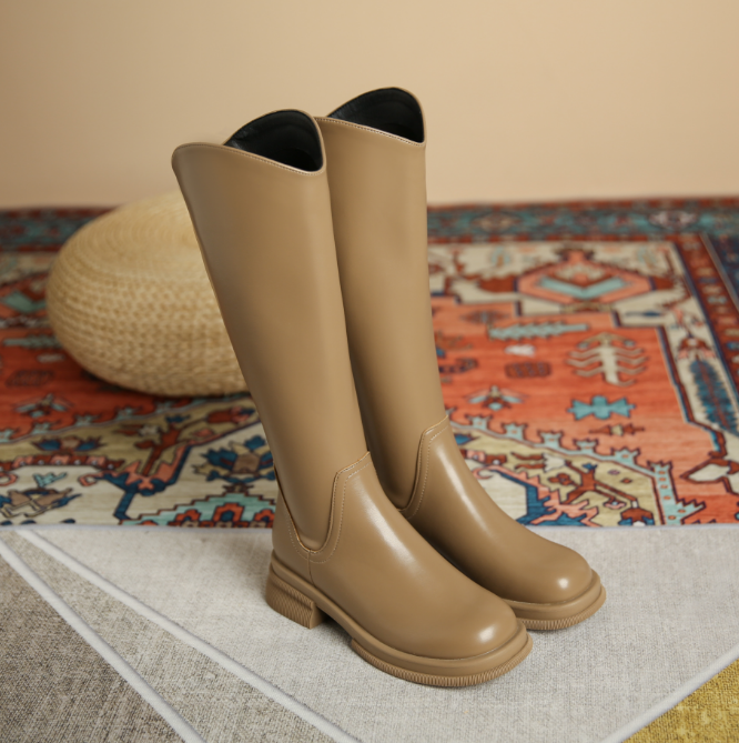 陈00 踩屎感! 软到爆 !厚底增高 圆头骑士靴女 显瘦弹力不过膝 长靴高筒靴1985-9