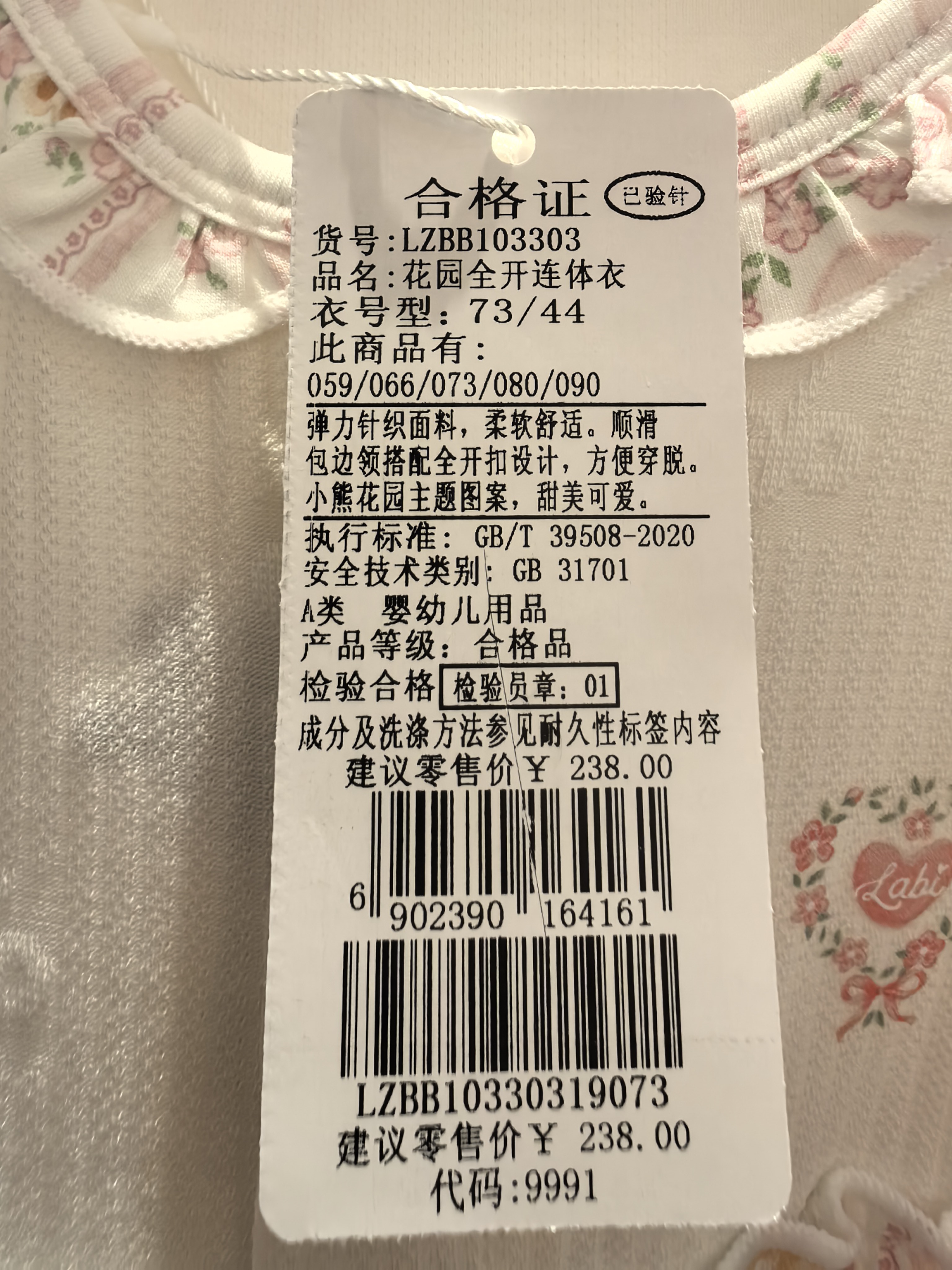 拉比童衣夏花园全开连体衣粉红j6LZBB103303