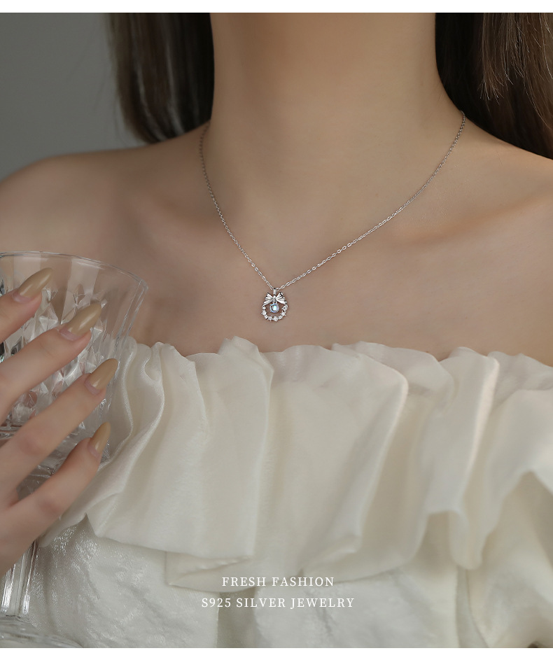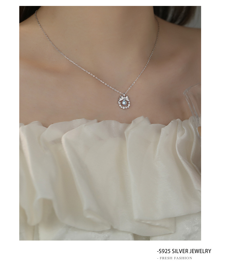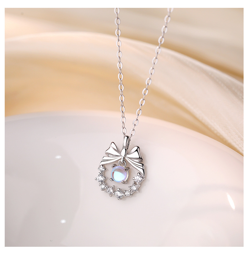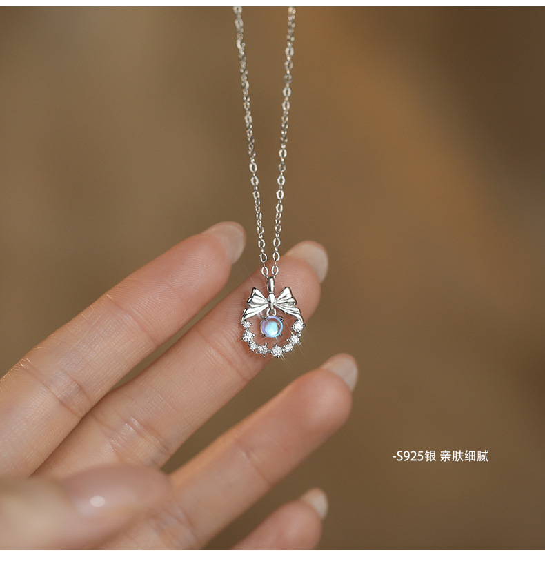 【月光蝴蝶】S925纯银炫彩月光石灵动蝴蝶结项链【YXS- YA0545】