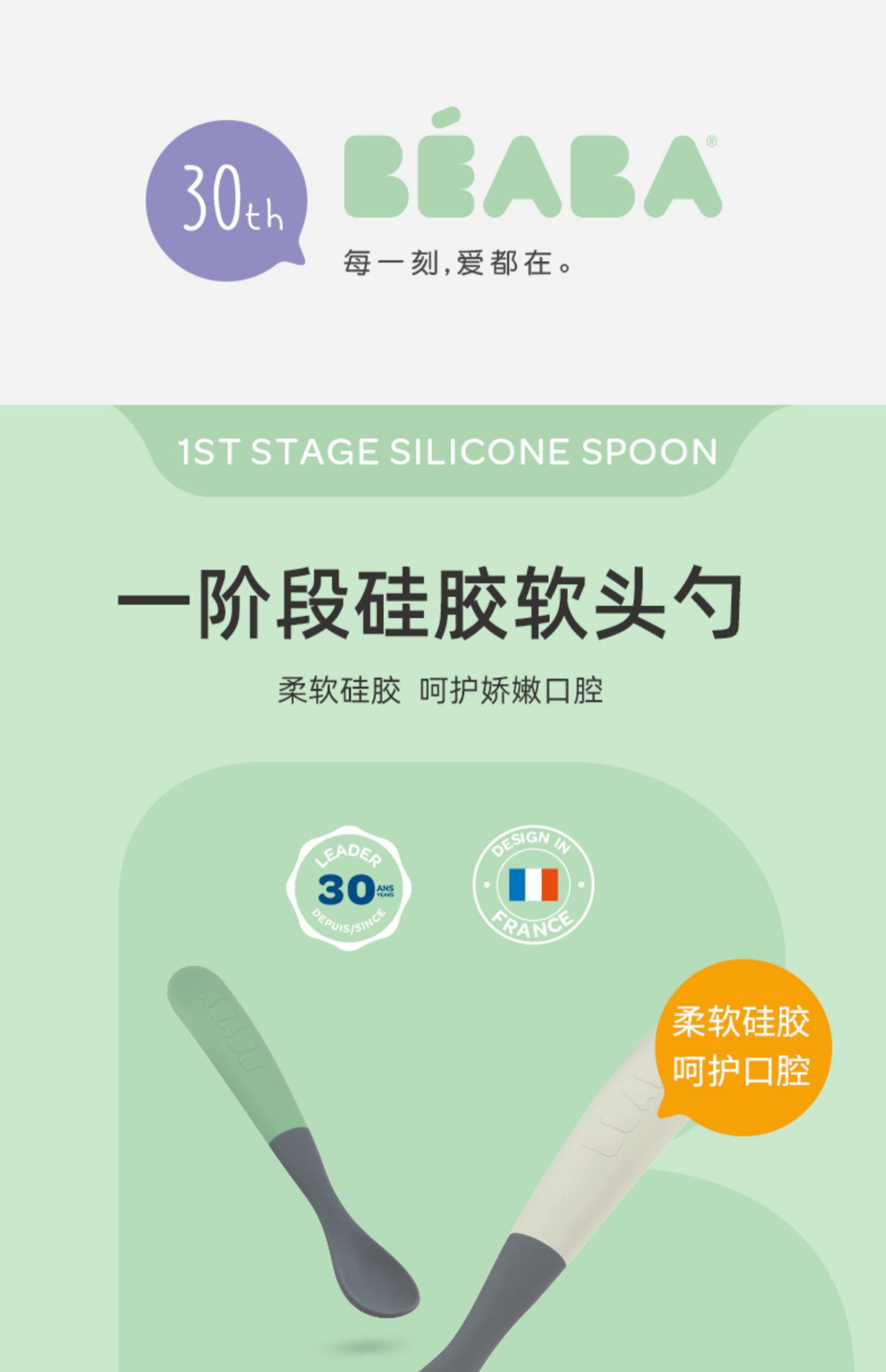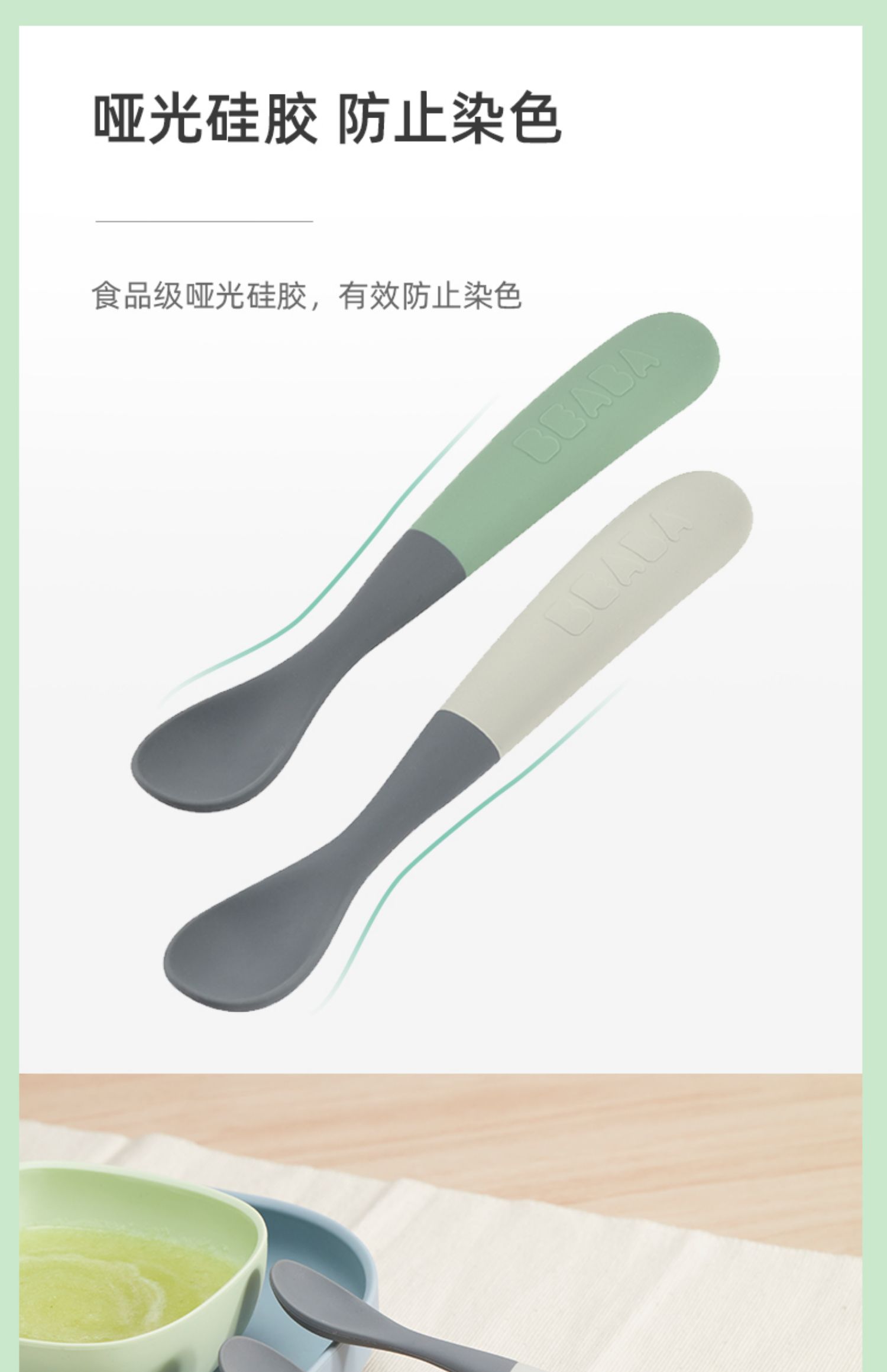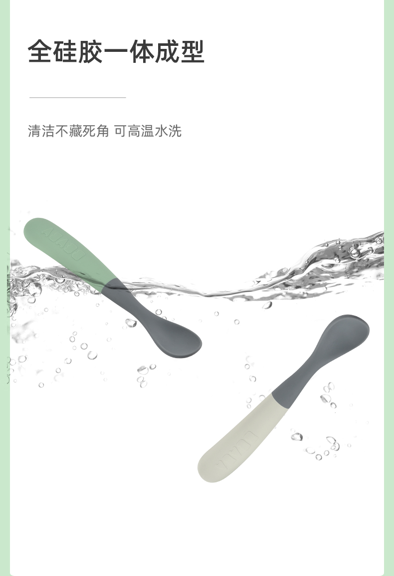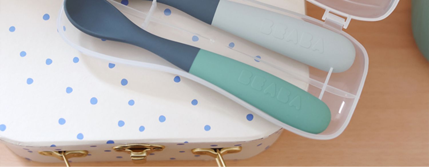 Beaba 一阶段双色硅胶软勺 辅食勺便携装2件套装 4月+
