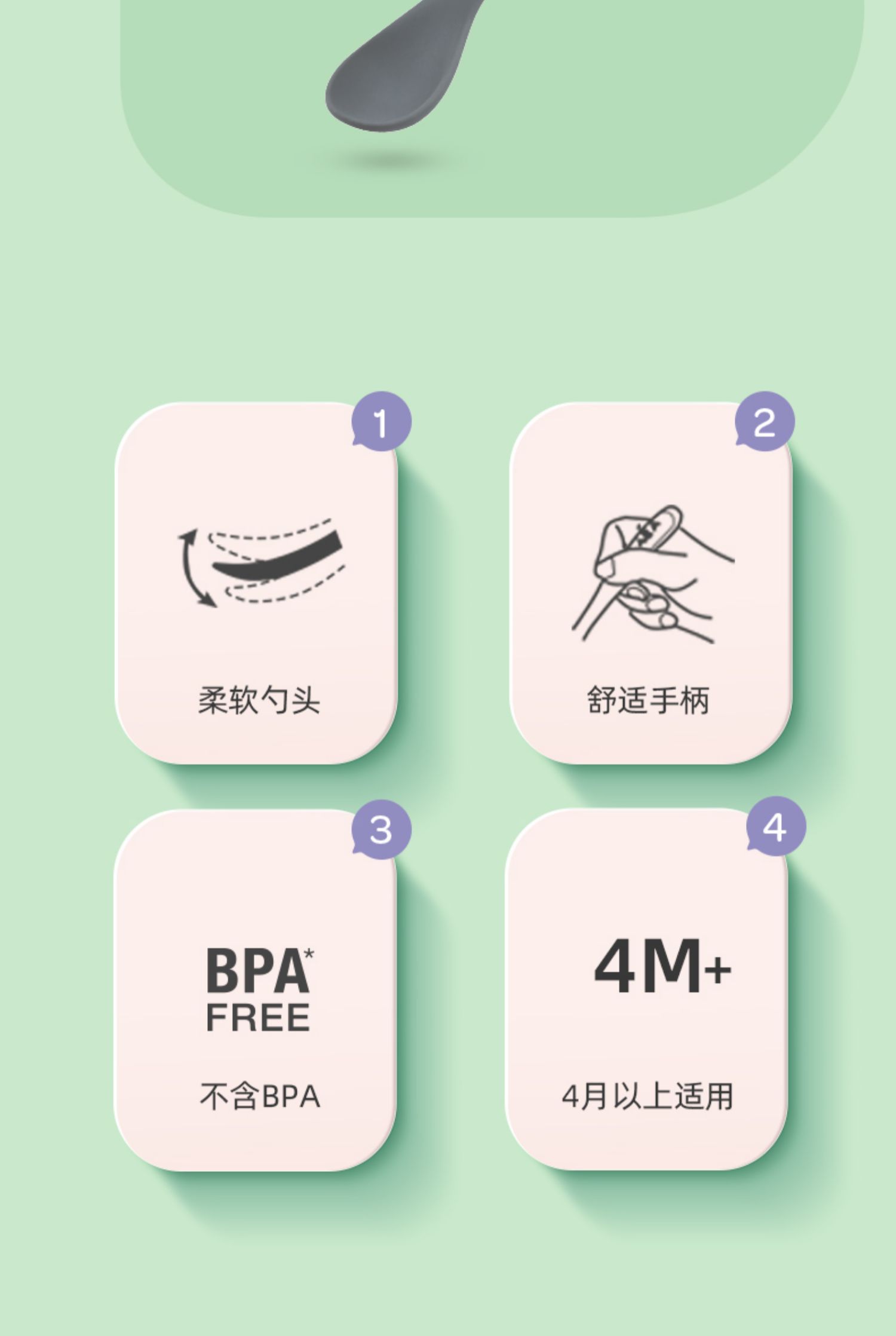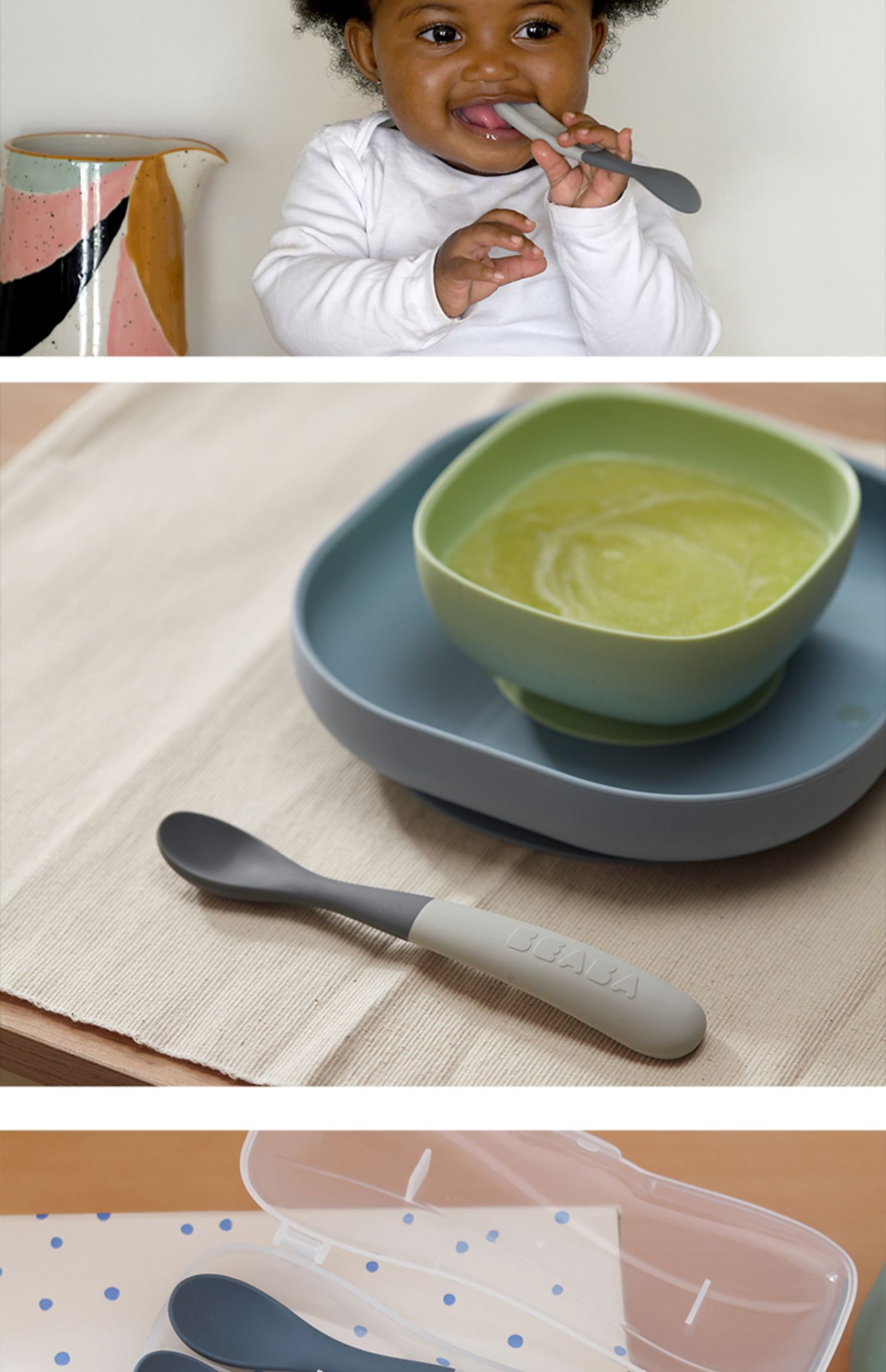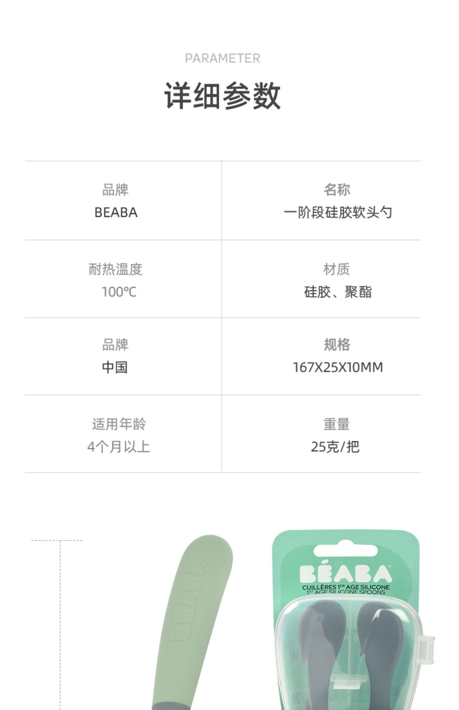 Beaba 一阶段双色硅胶软勺 辅食勺便携装2件套装 4月+