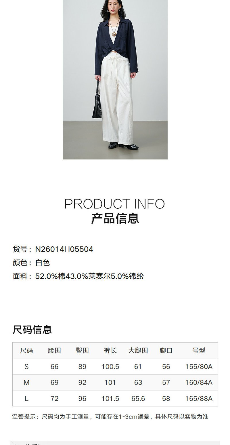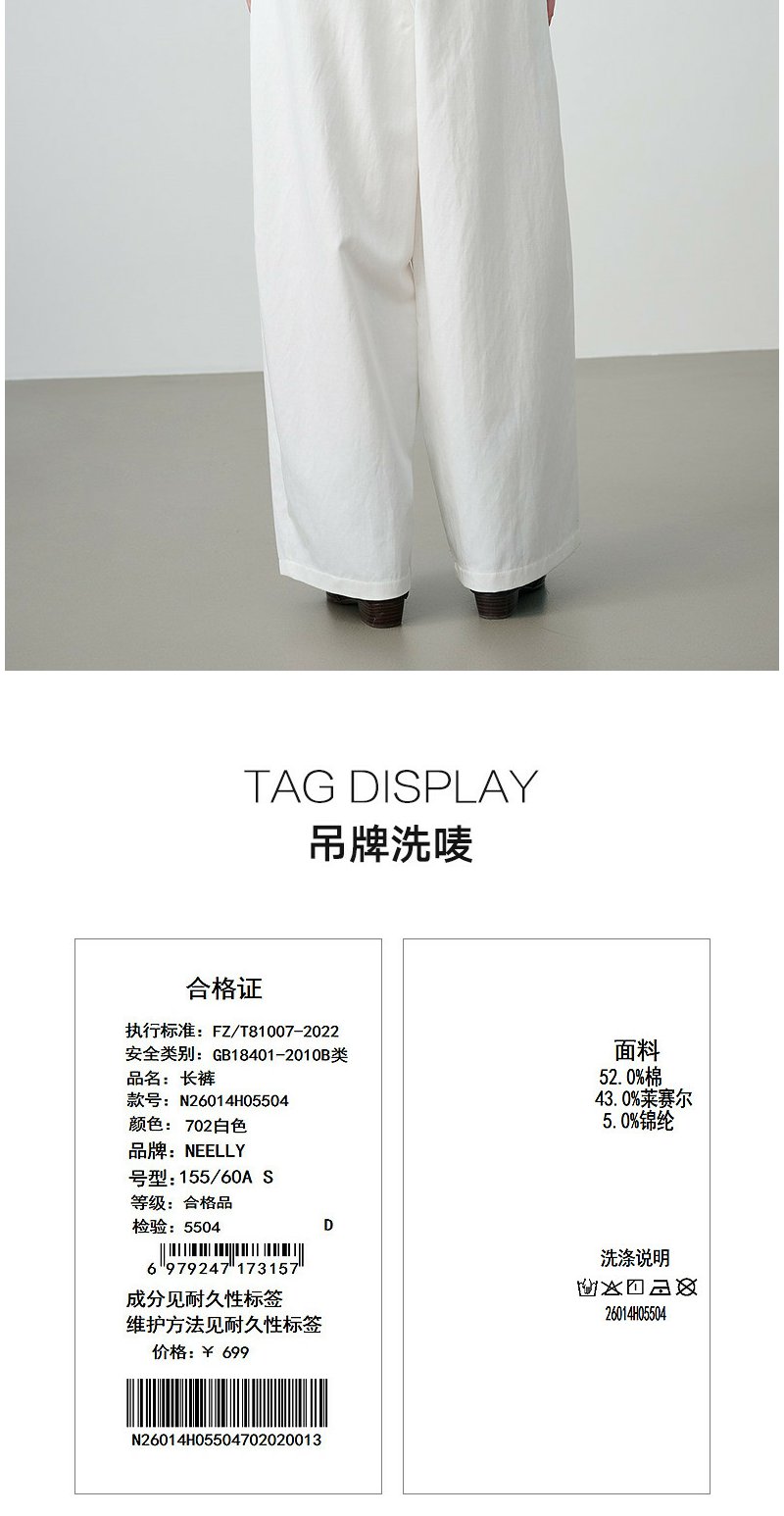 NEELLY纳俪商场同款春新款经典百搭白色休闲直筒裤女舒适户外长裤N26014H05504