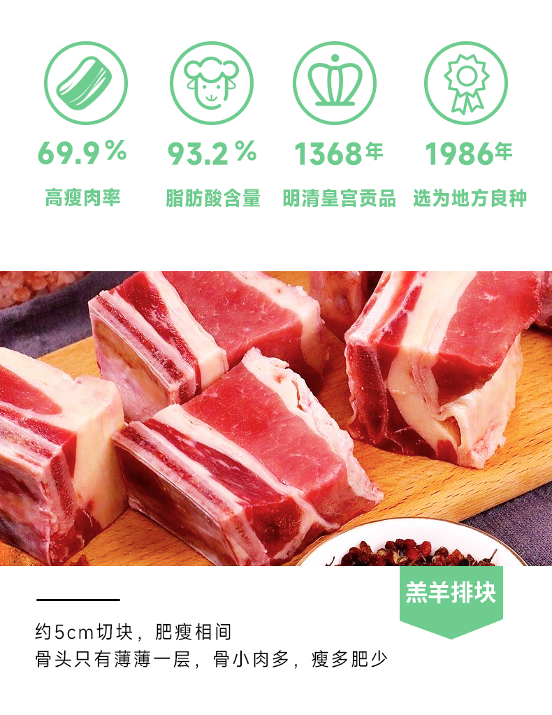 【骨头只有薄薄一层 鲜嫩不膻】牧北鲜锡盟6月龄苏尼特有机羔羊肉-有机羔羊排块羊寸排500g*3袋