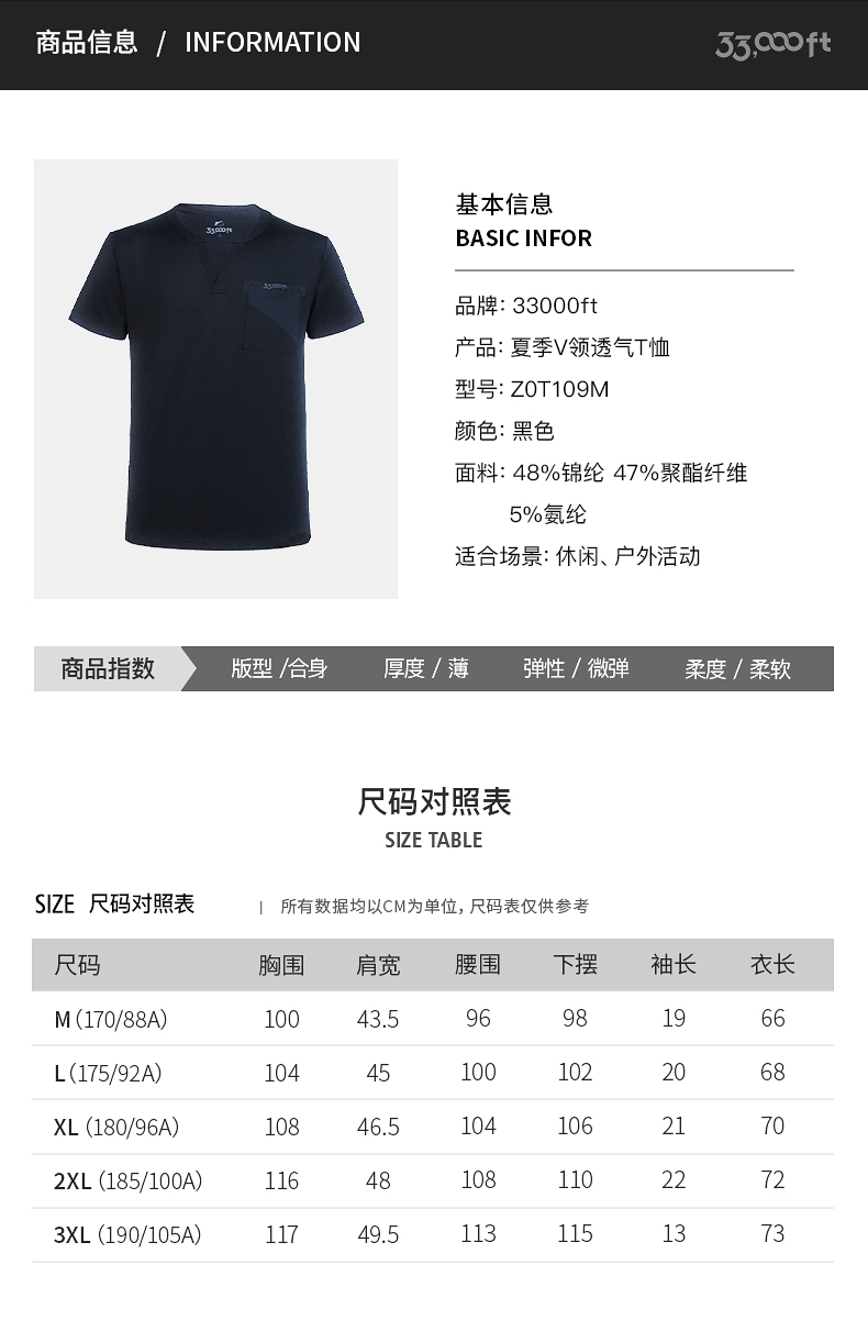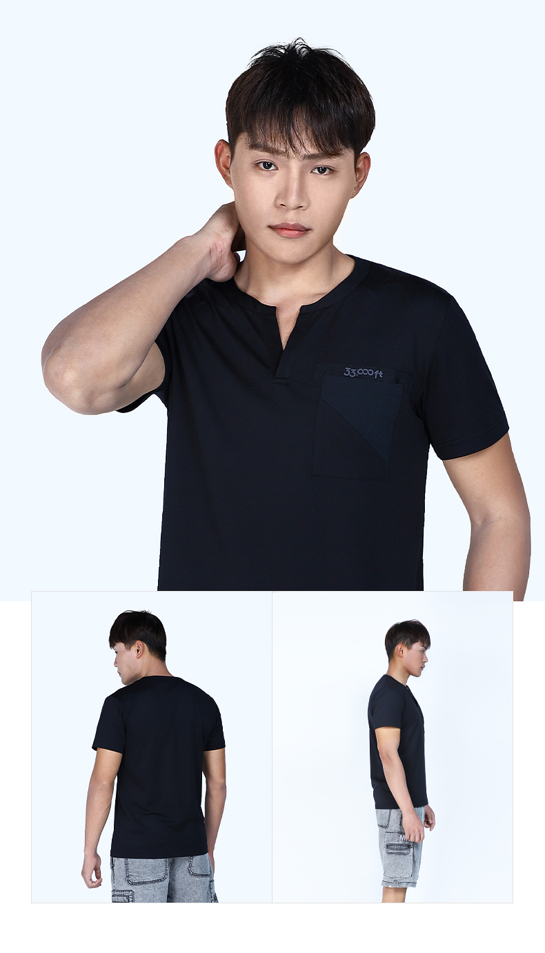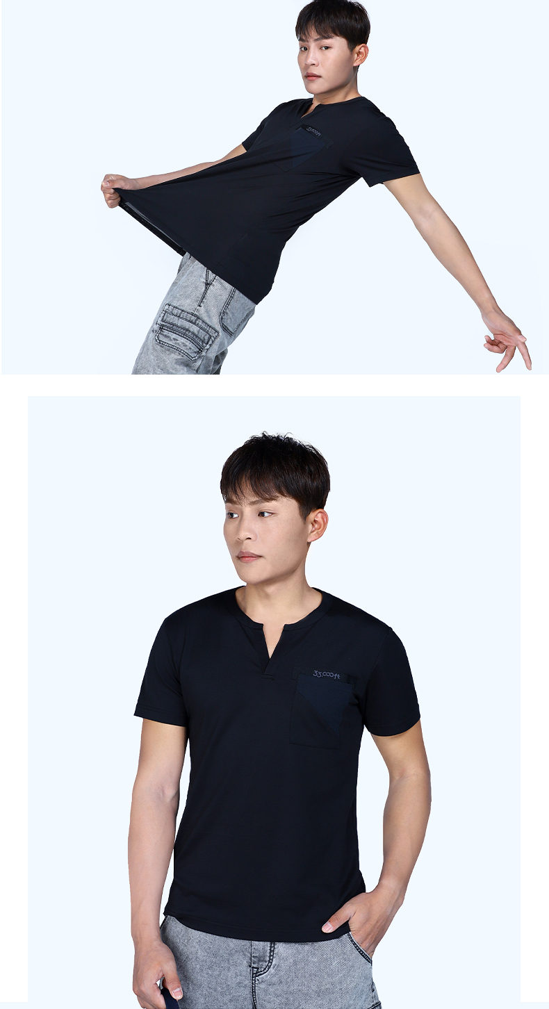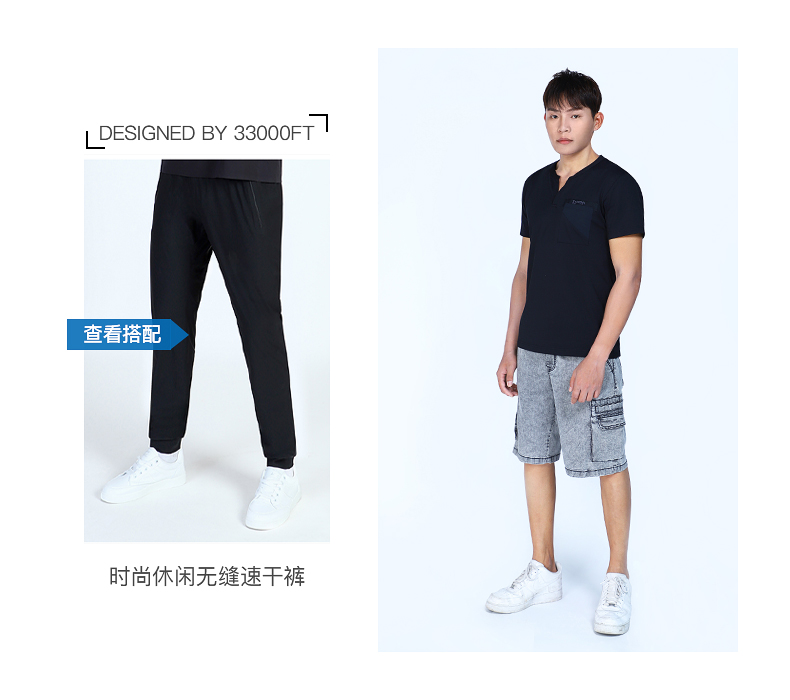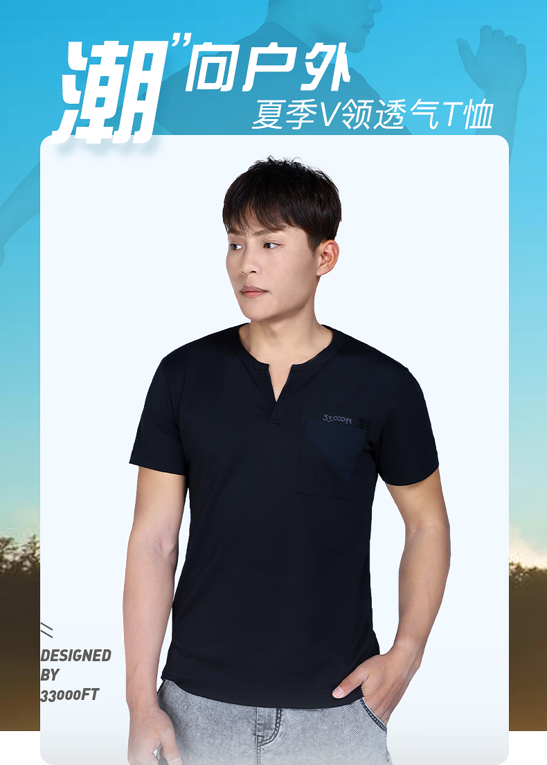 33000FT男士速干t恤夏季v领短袖户外运动跑步透气轻薄速干T恤