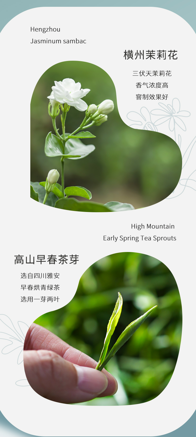 【产品配料】 烘青绿茶、横县茉莉花
