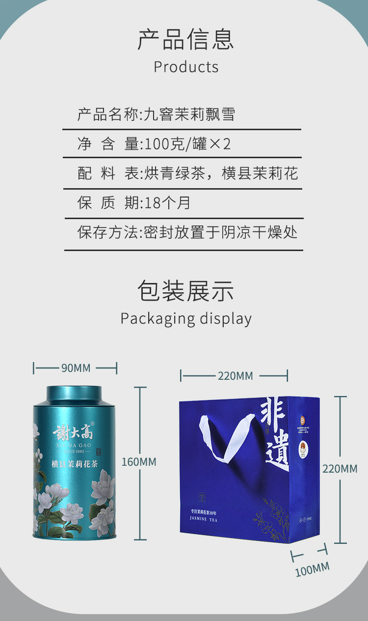 3、九窨飘雪(九窨一提)(100g*1罐,100g*2罐)赠精美手提袋