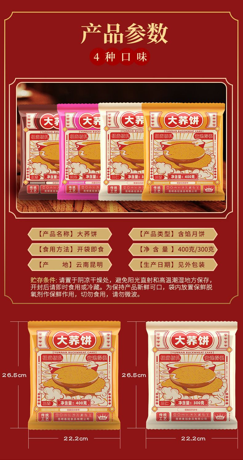 香冠农科院云南大荞饼云腿白饼红饼荞麦三香红枣荞粑粑五仁大月饼