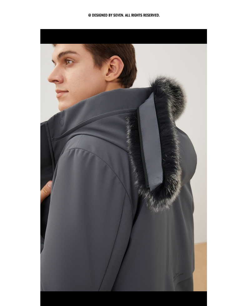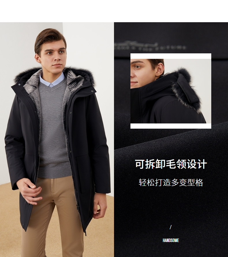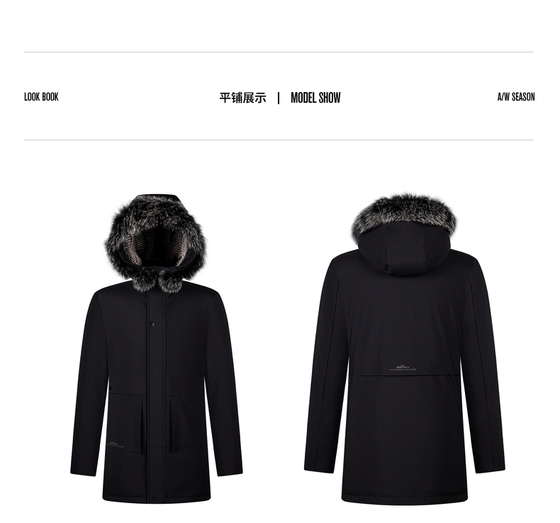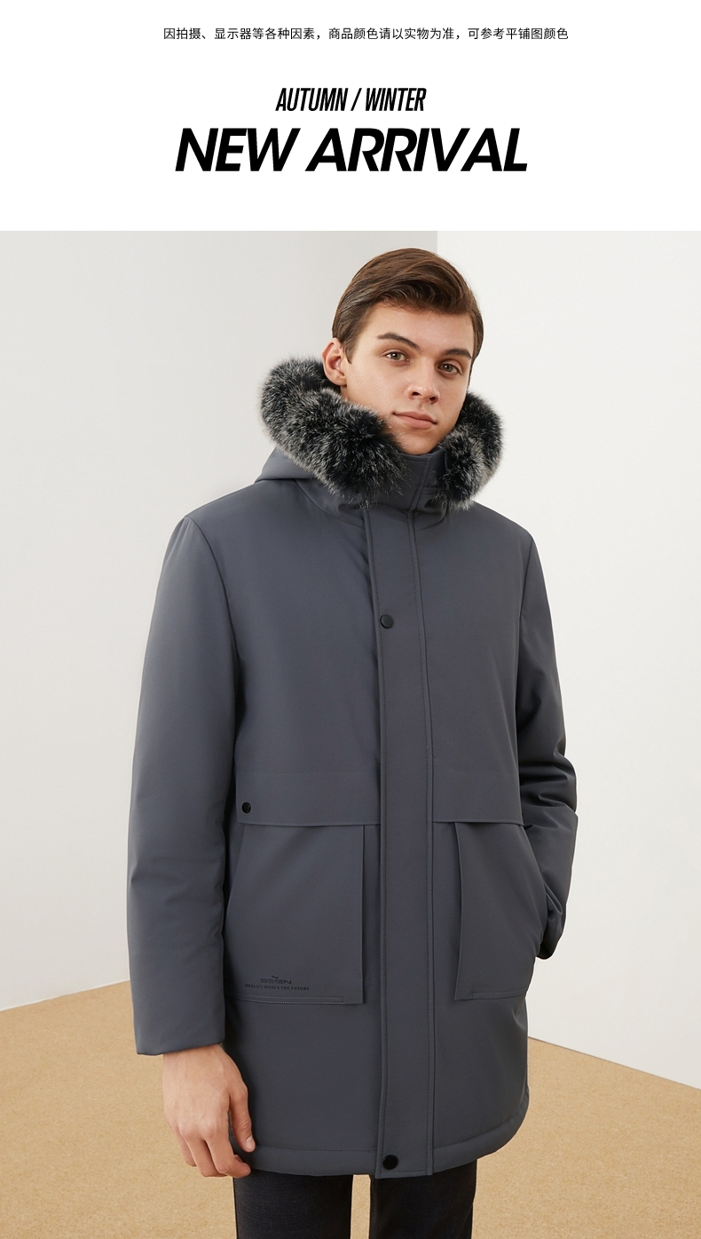【特价】柒牌羽绒服男款狐狸毛领连帽商务休闲防风保暖中长款羽绒衣厚外套 121E70420