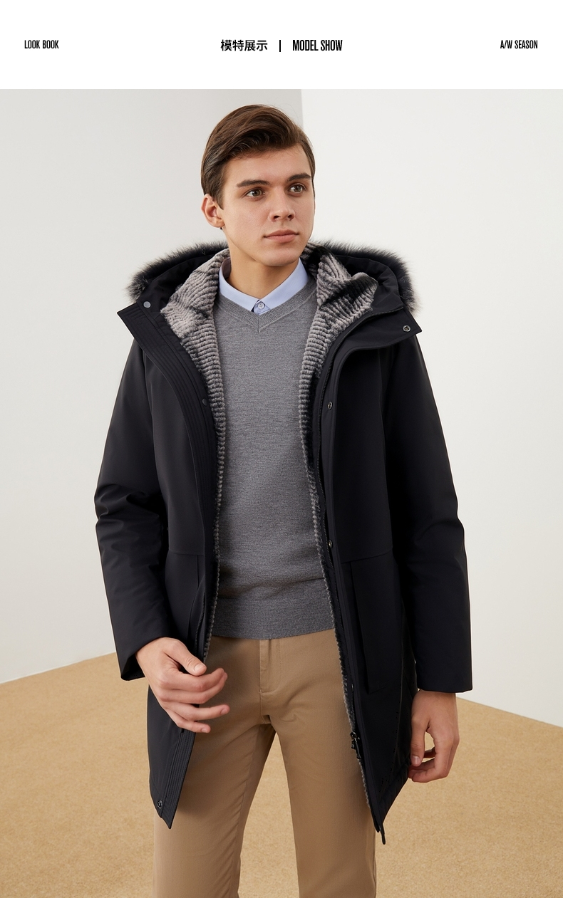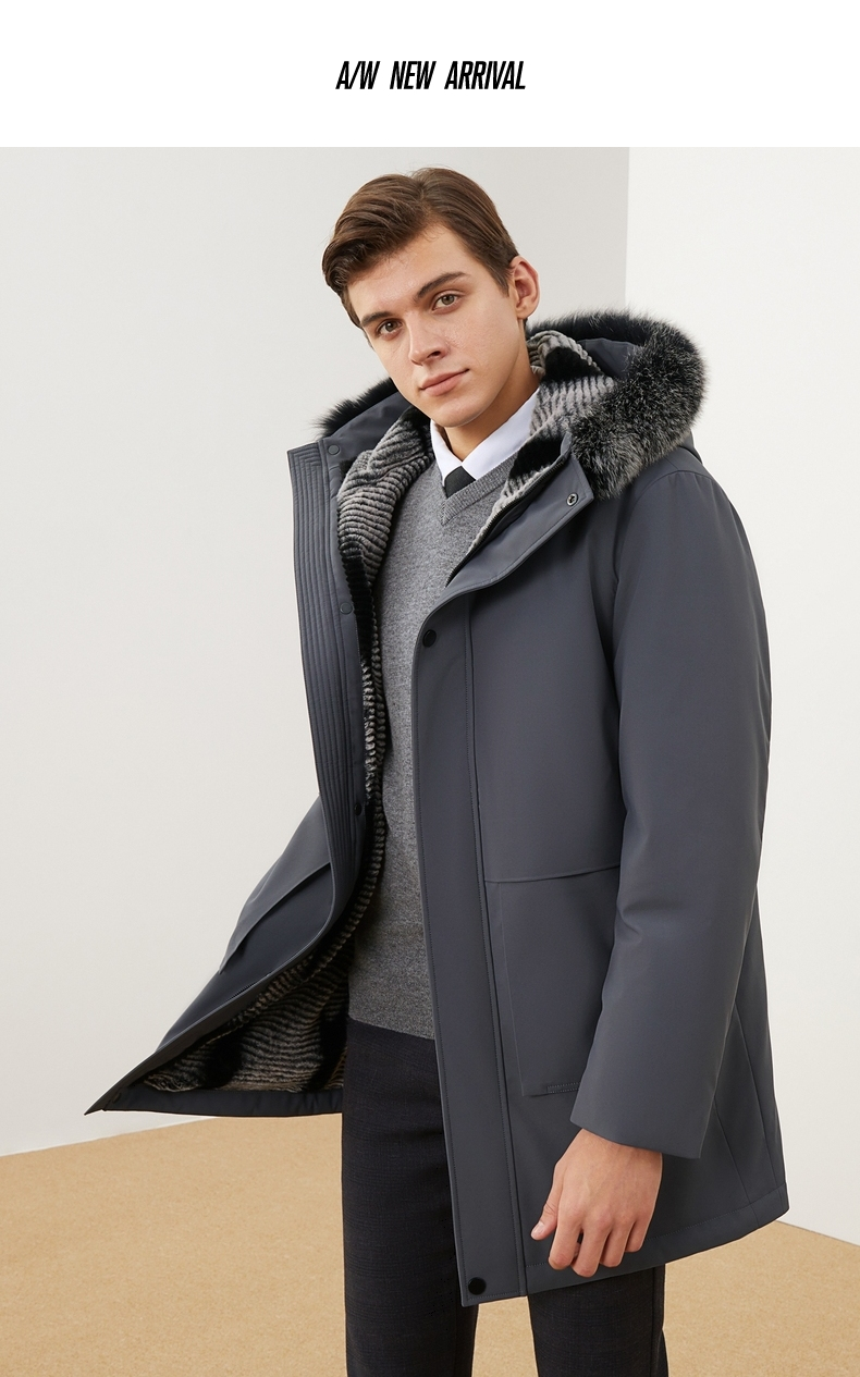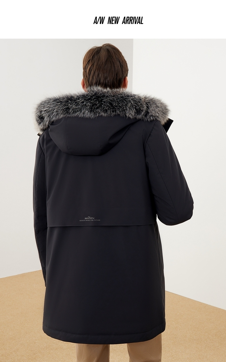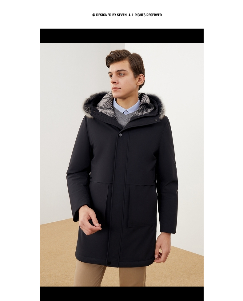 【特价】柒牌羽绒服男款狐狸毛领连帽商务休闲防风保暖中长款羽绒衣厚外套 121E70420