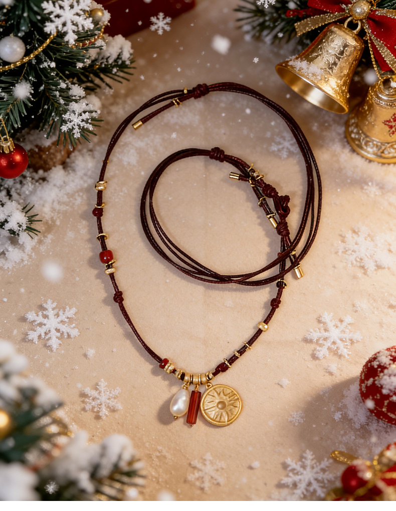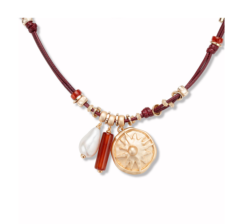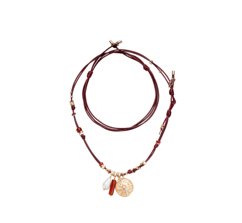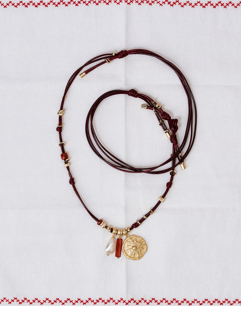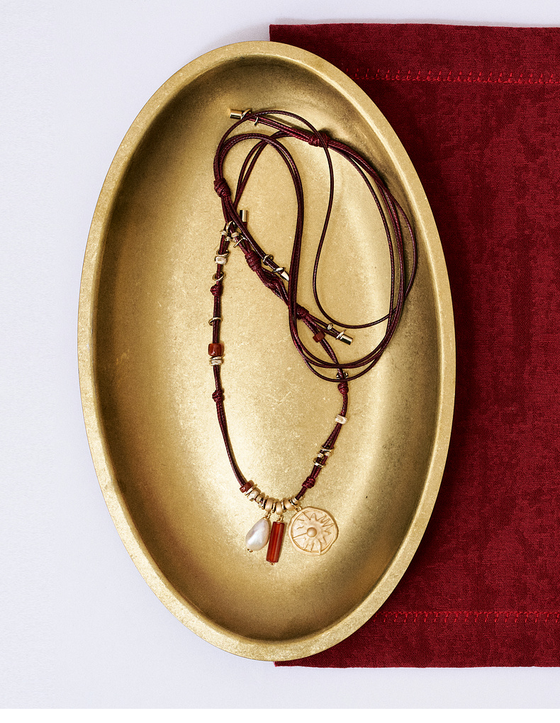 lost in echo2026春夏新款好运红玛瑙珍珠可调节长皮绳组合项链女
