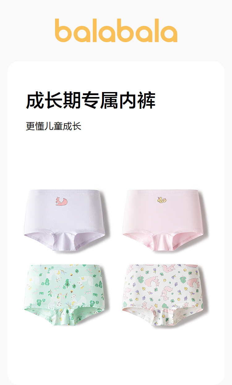 【balaOne】巴拉巴拉儿童内裤平角四角短裤女童防走光宝宝四条装