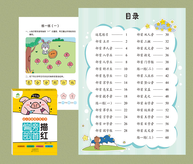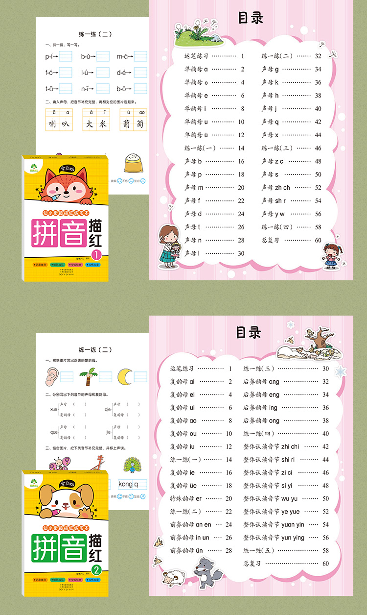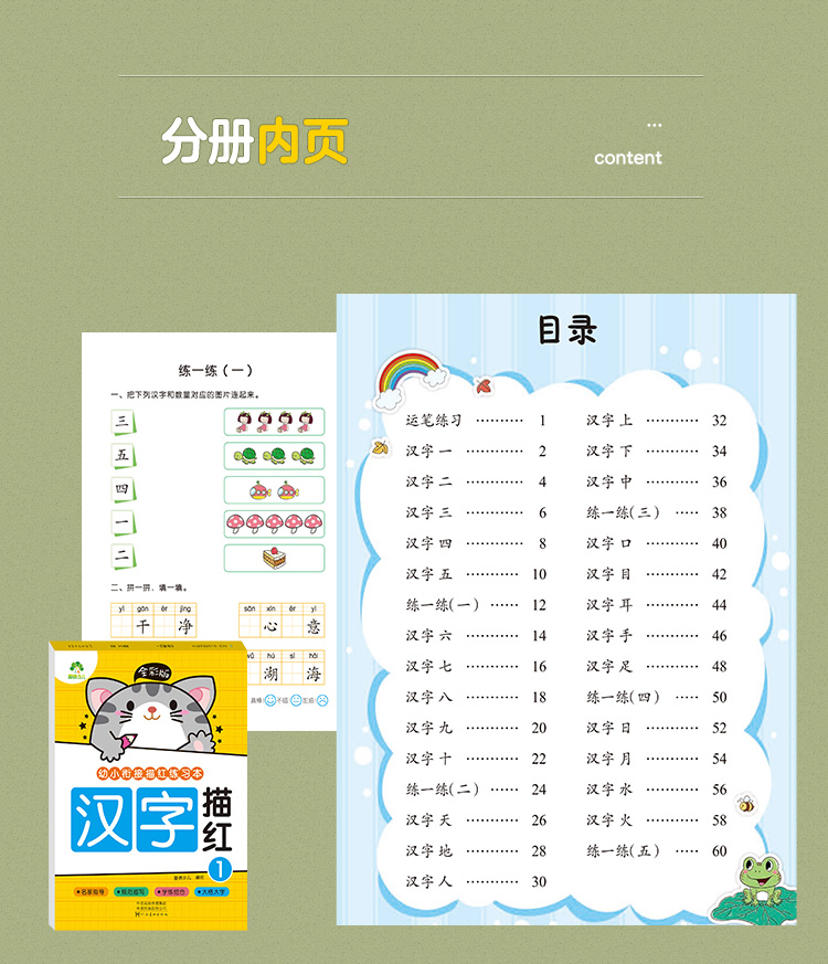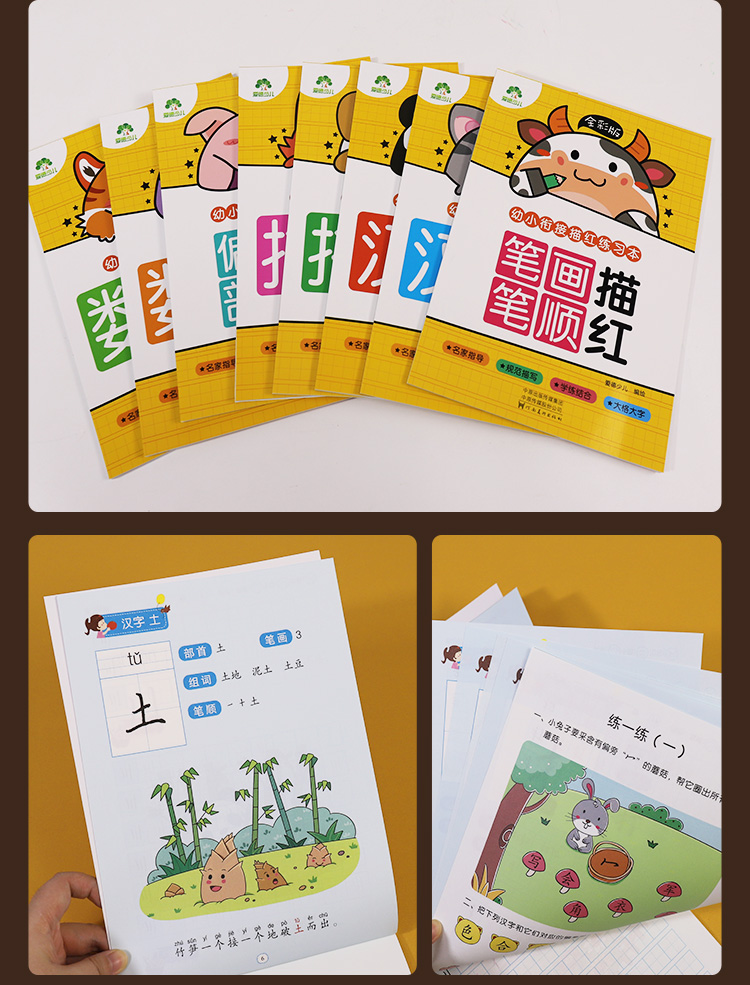 爱德少儿 全彩版幼小衔接描红练习本 幼儿园练字帖汉字描红拼音描红笔画描红