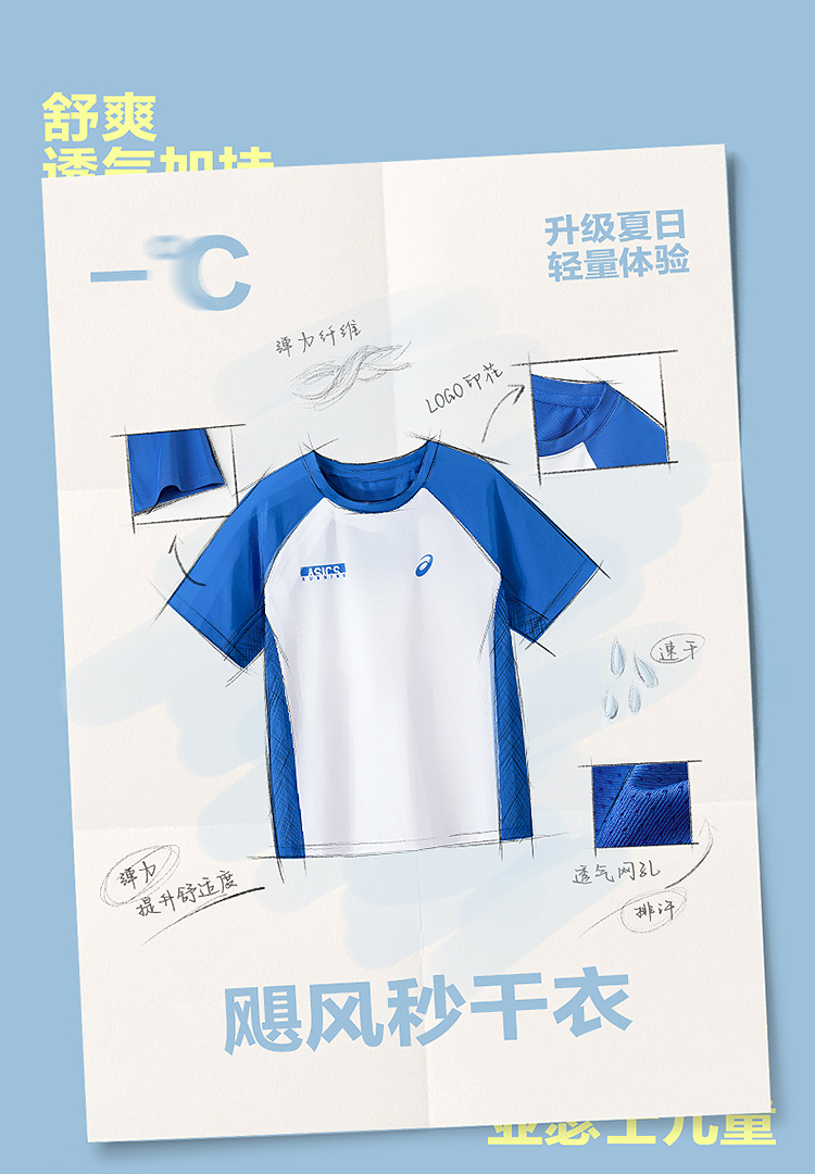 ASICS/亚瑟士童装25年夏季新款男女童运动TEE吸湿速干短袖透气T恤
