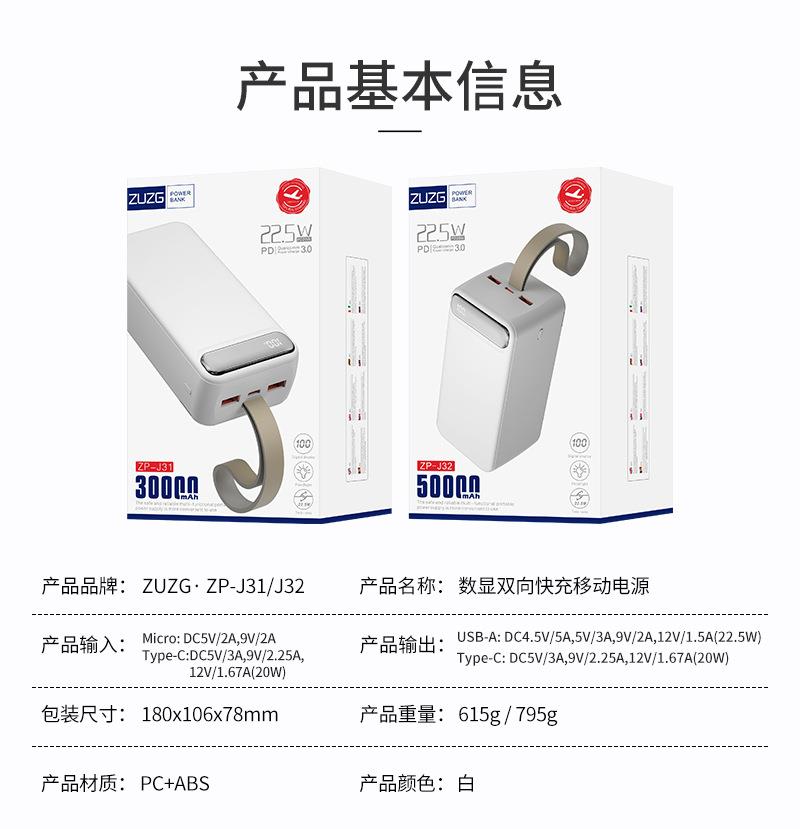 30000毫安挂绳LED灯移动电源大容量便携式超级快充手机充电宝