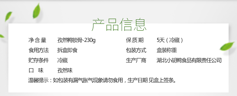 【现做锁鲜】230g孜然味鸭锁骨盒装卤味零食(保质期较短,限湖北省购买)