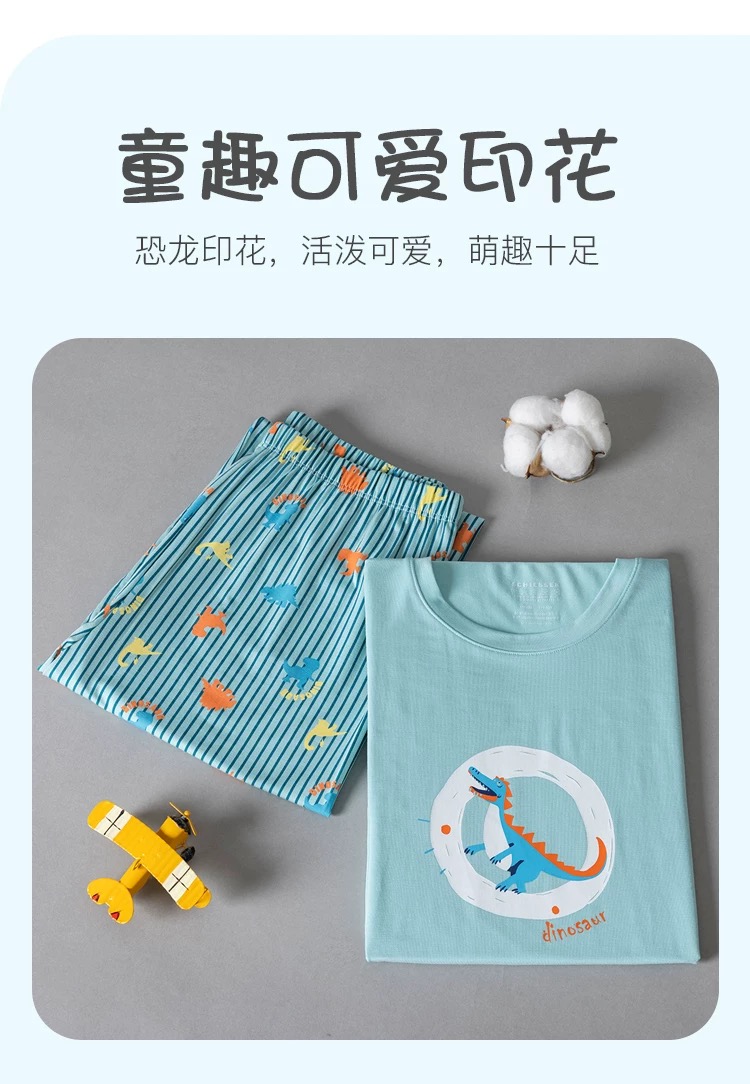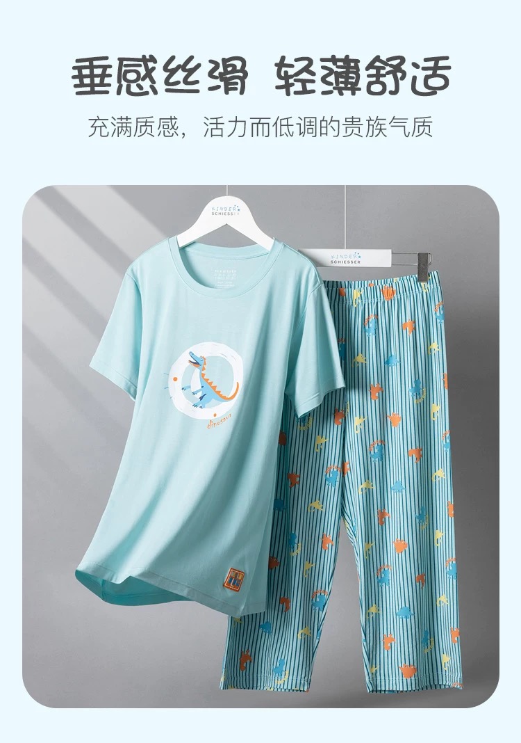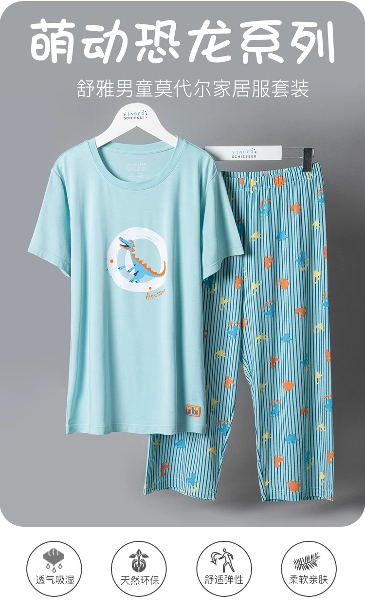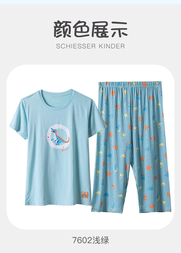 【萌动恐龙莫代尔】SCHIESSER德国舒雅儿童睡衣春夏新款莫代尔七分裤男童家居服3B/24354H
