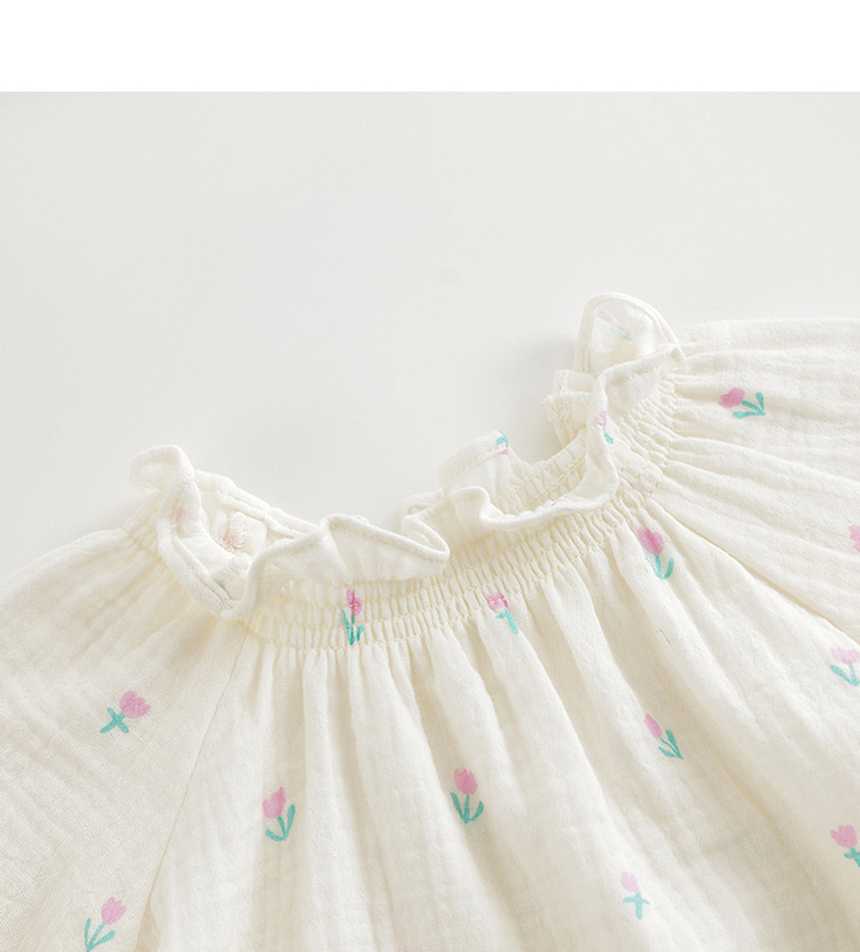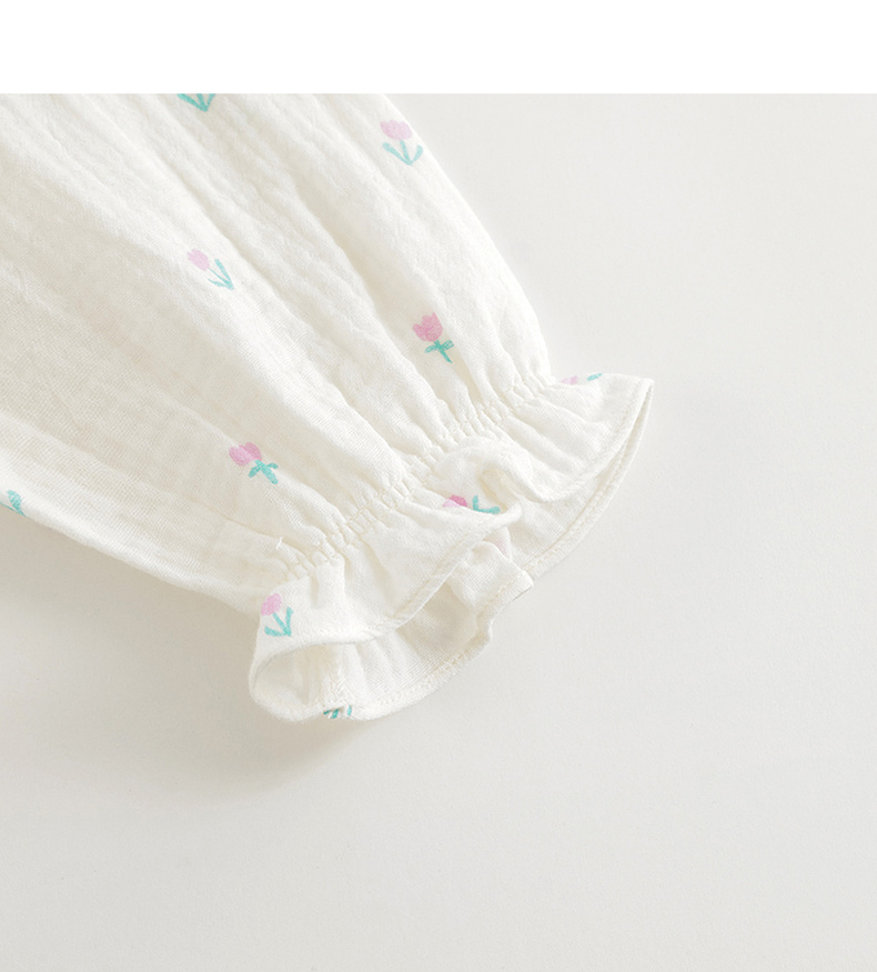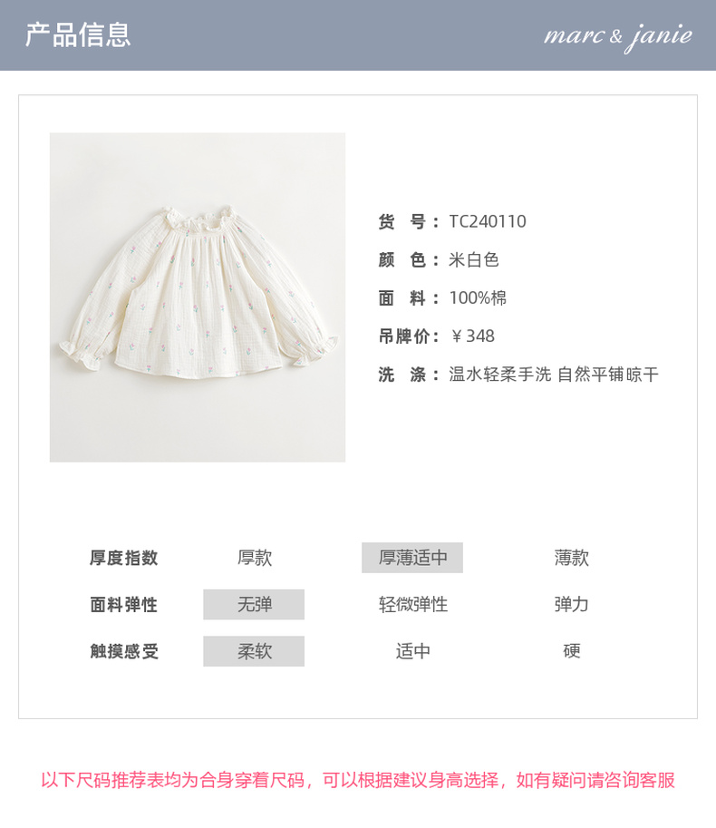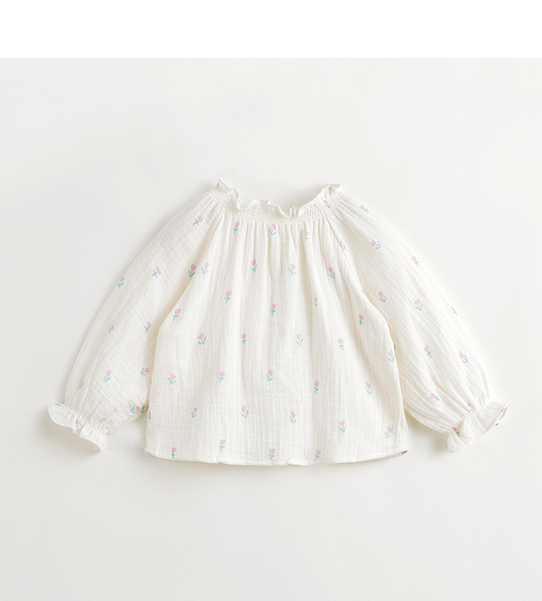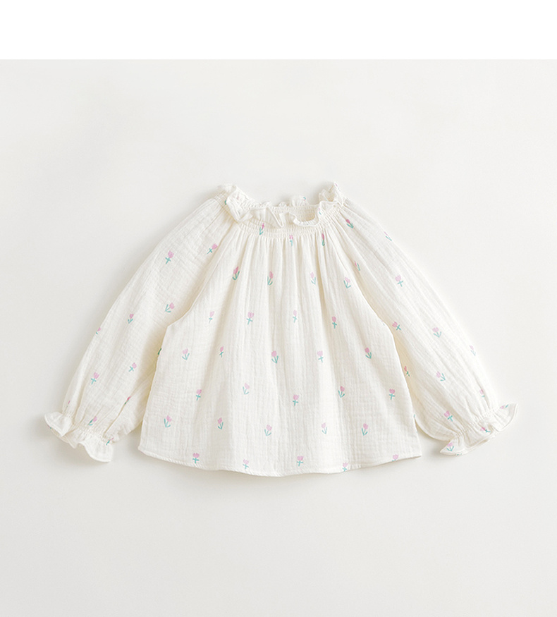 马克珍妮女童碎花满印花边立领衬衫儿童纯棉衬衣春装新款240110