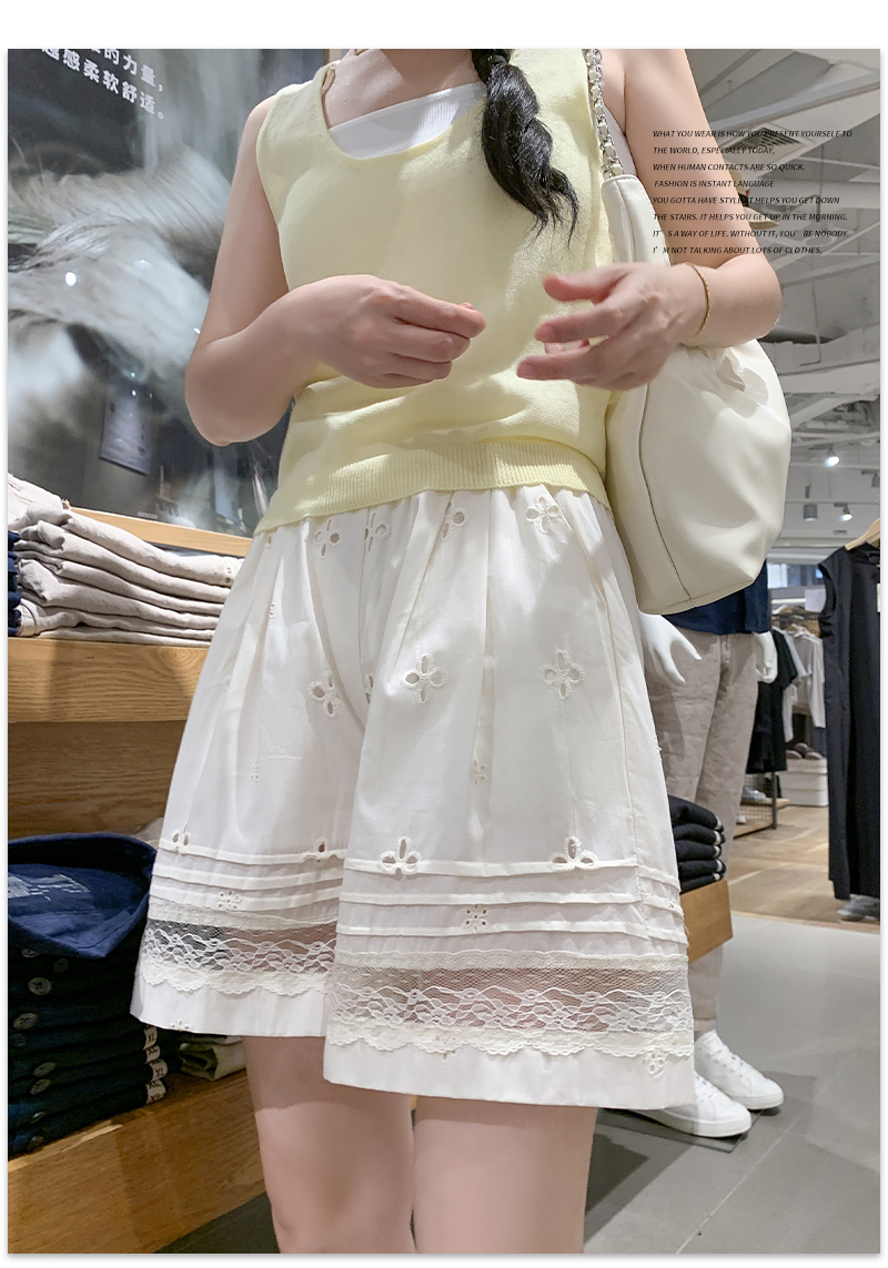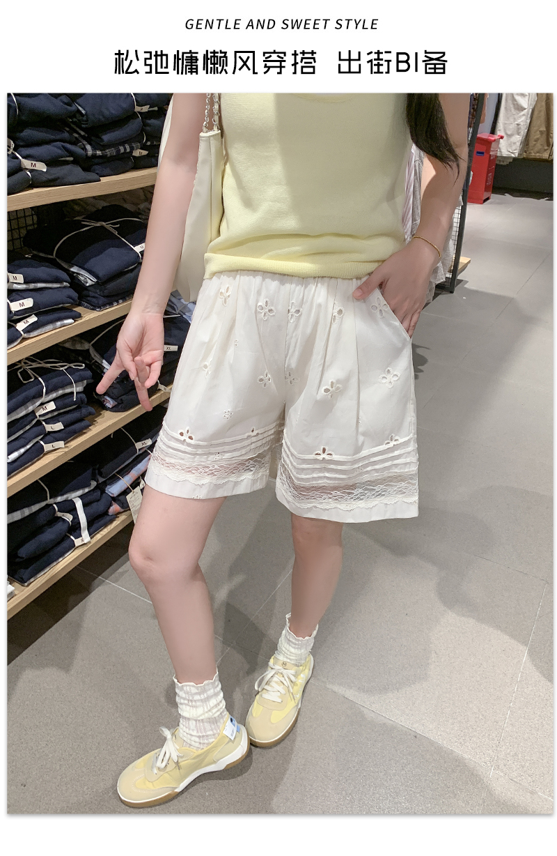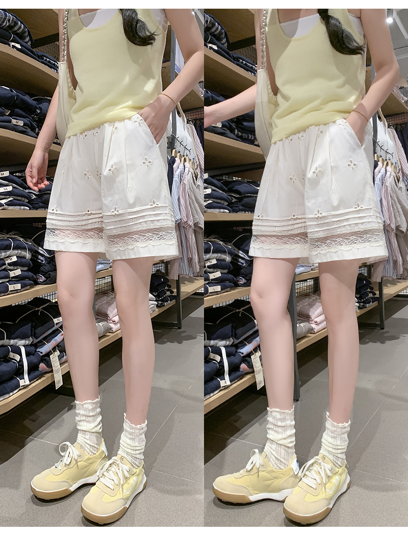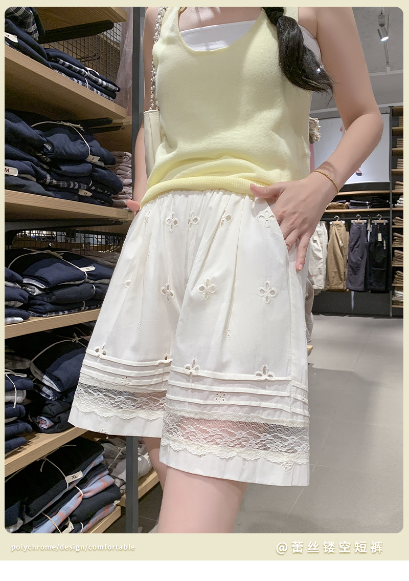 【YW】无忧购韩系休闲慵懒松弛感蕾丝拼接遛弯五分短裤H-1806(截单后7天发货)
