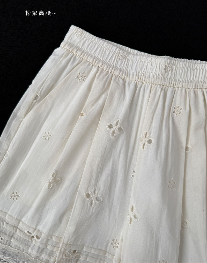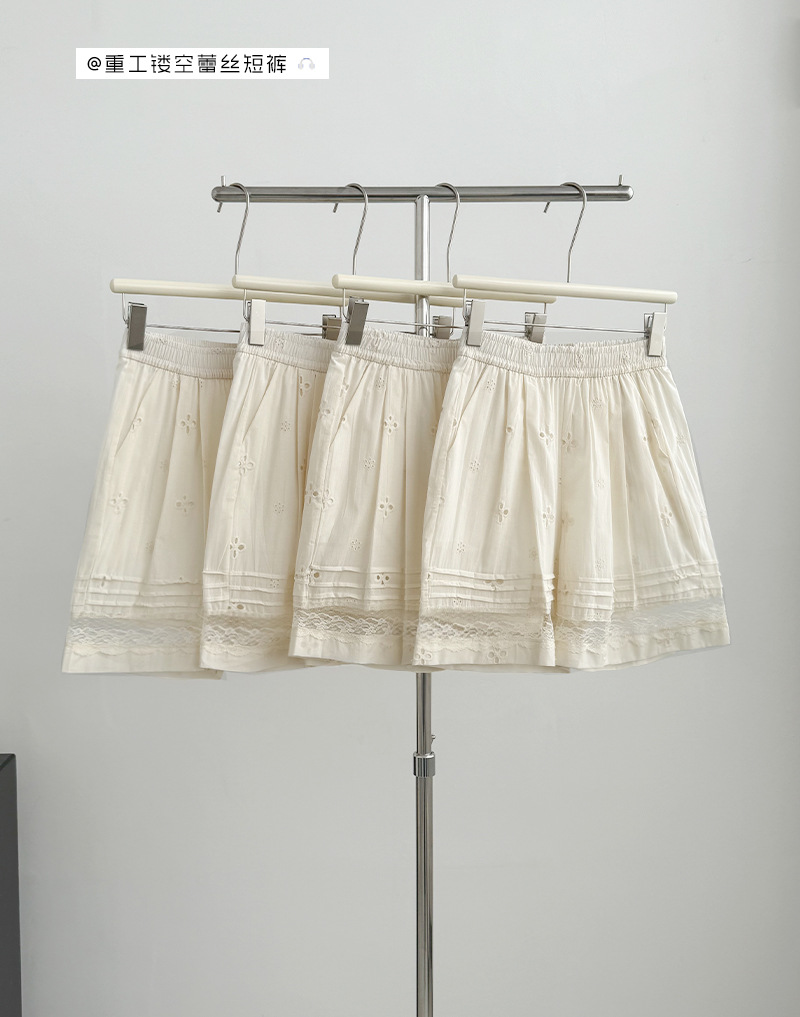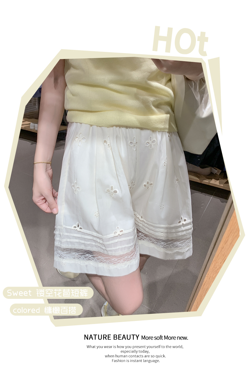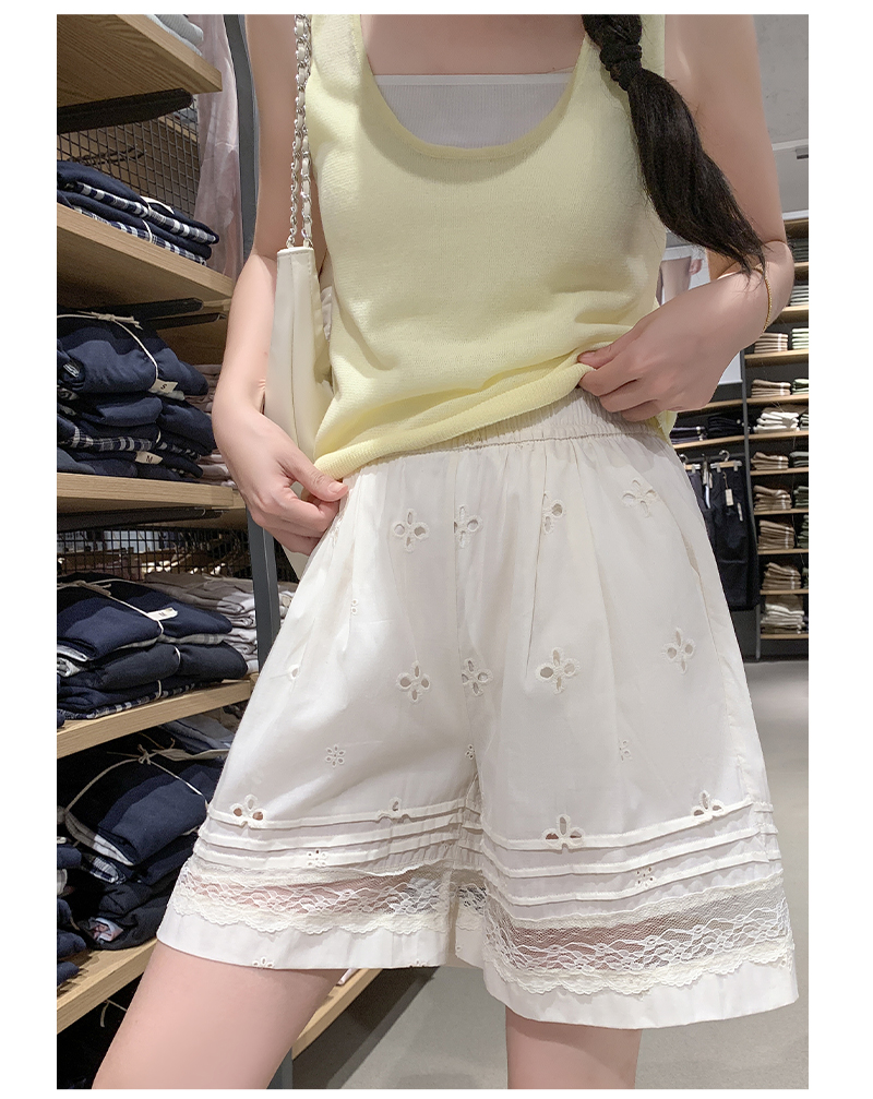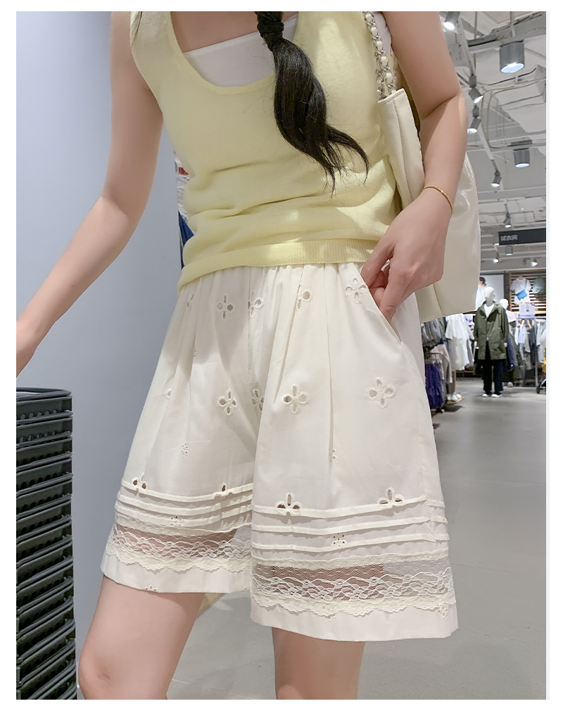【YW】无忧购韩系休闲慵懒松弛感蕾丝拼接遛弯五分短裤H-1806(截单后7天发货)