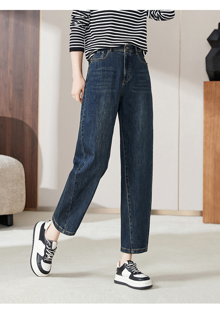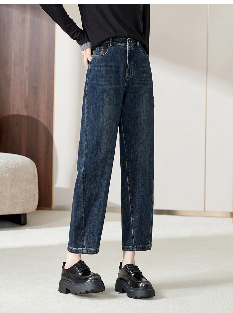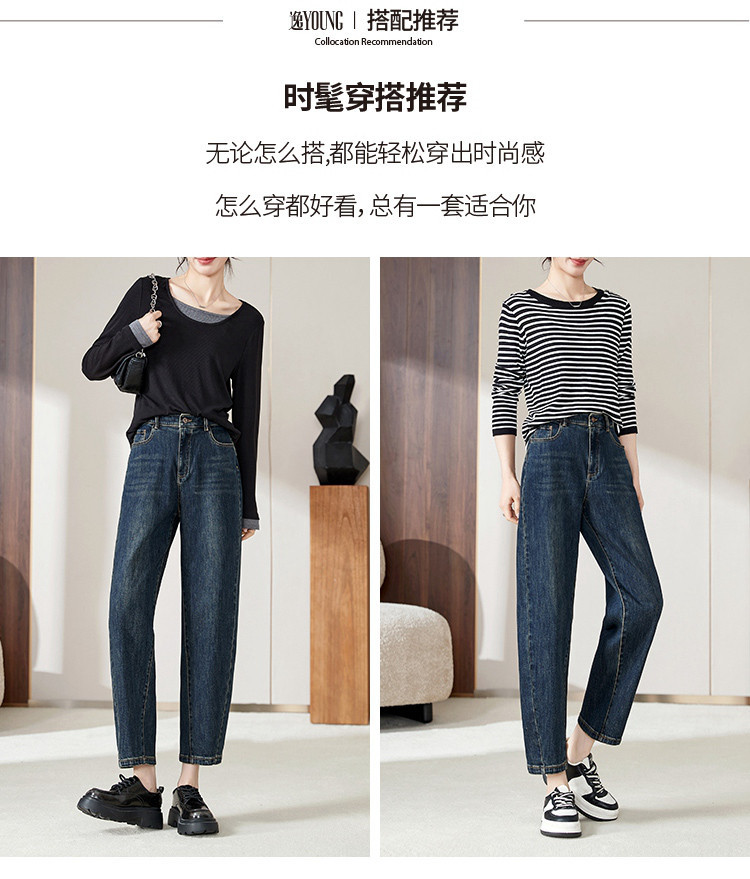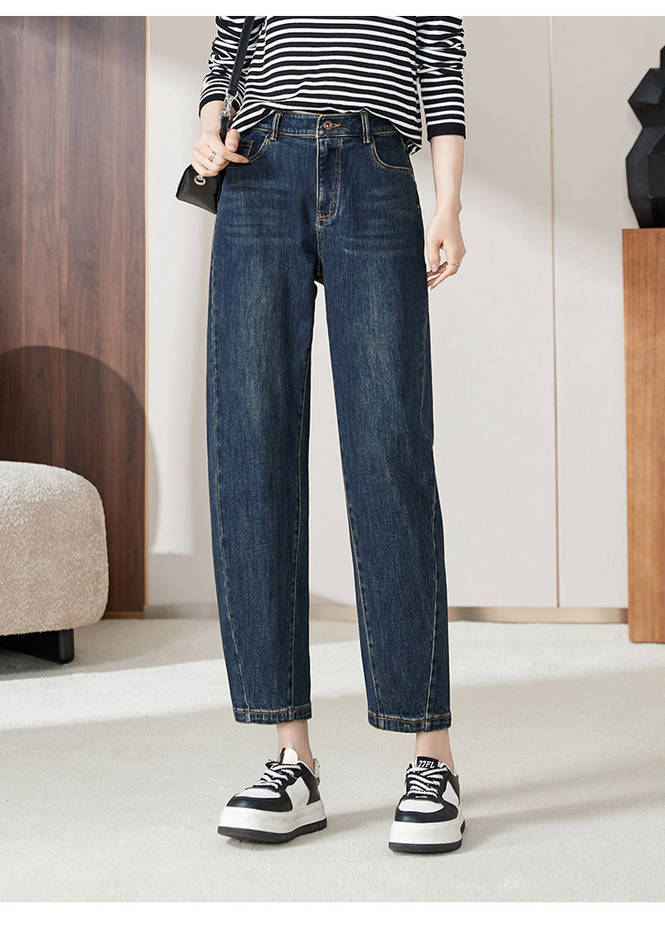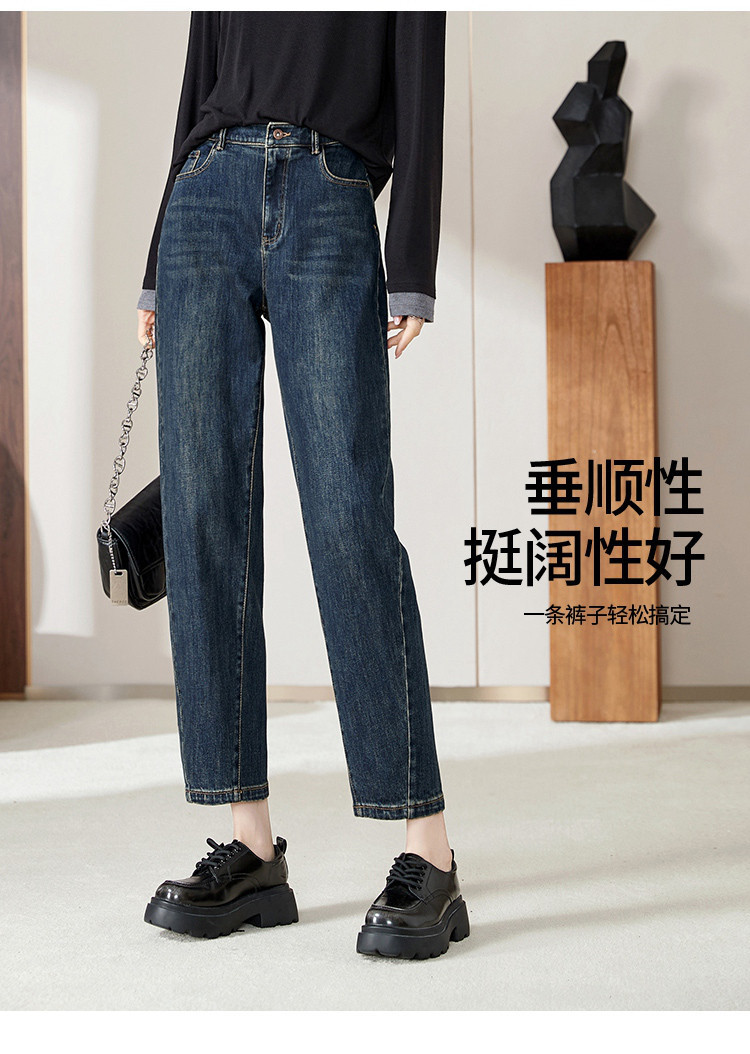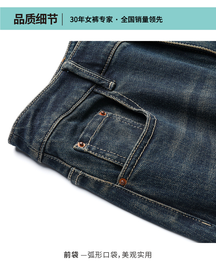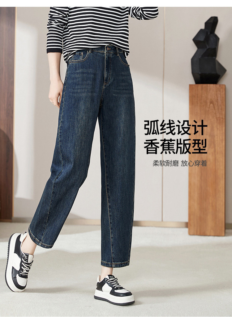 【棉弹香蕉裤】逸阳秋新品显瘦侧缝前移九分镰刀牛仔裤0885