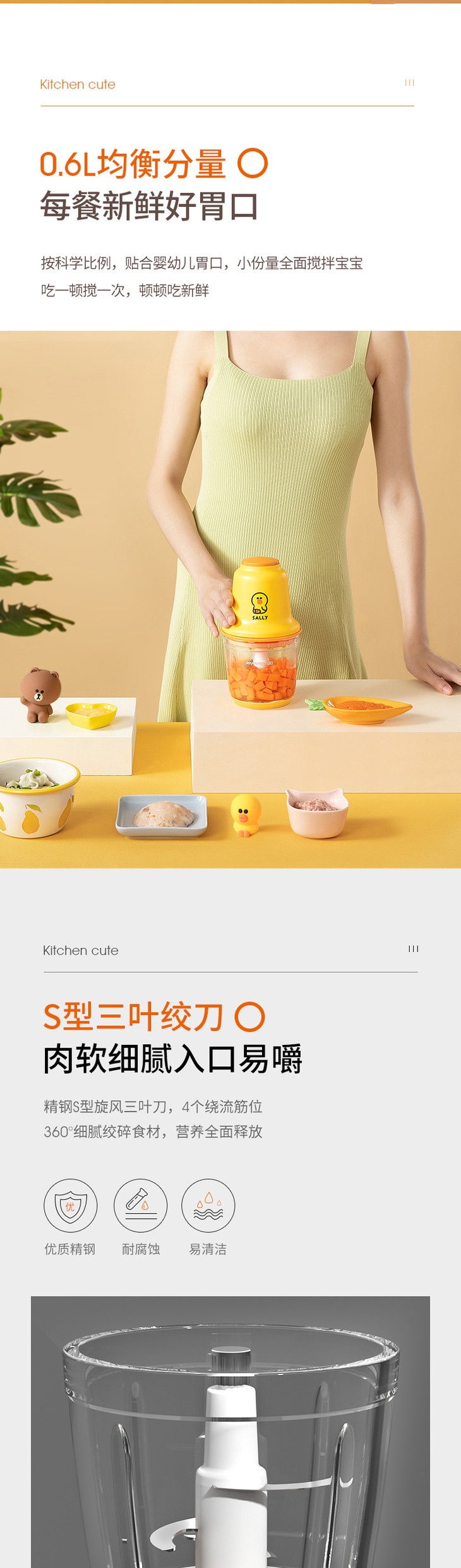 九阳(509584 )(Joyoung)绞肉机S6-LA520XL(SALLY)莎莉鸡小型不锈钢家用多功能料理机莎莉鸡绞肉机